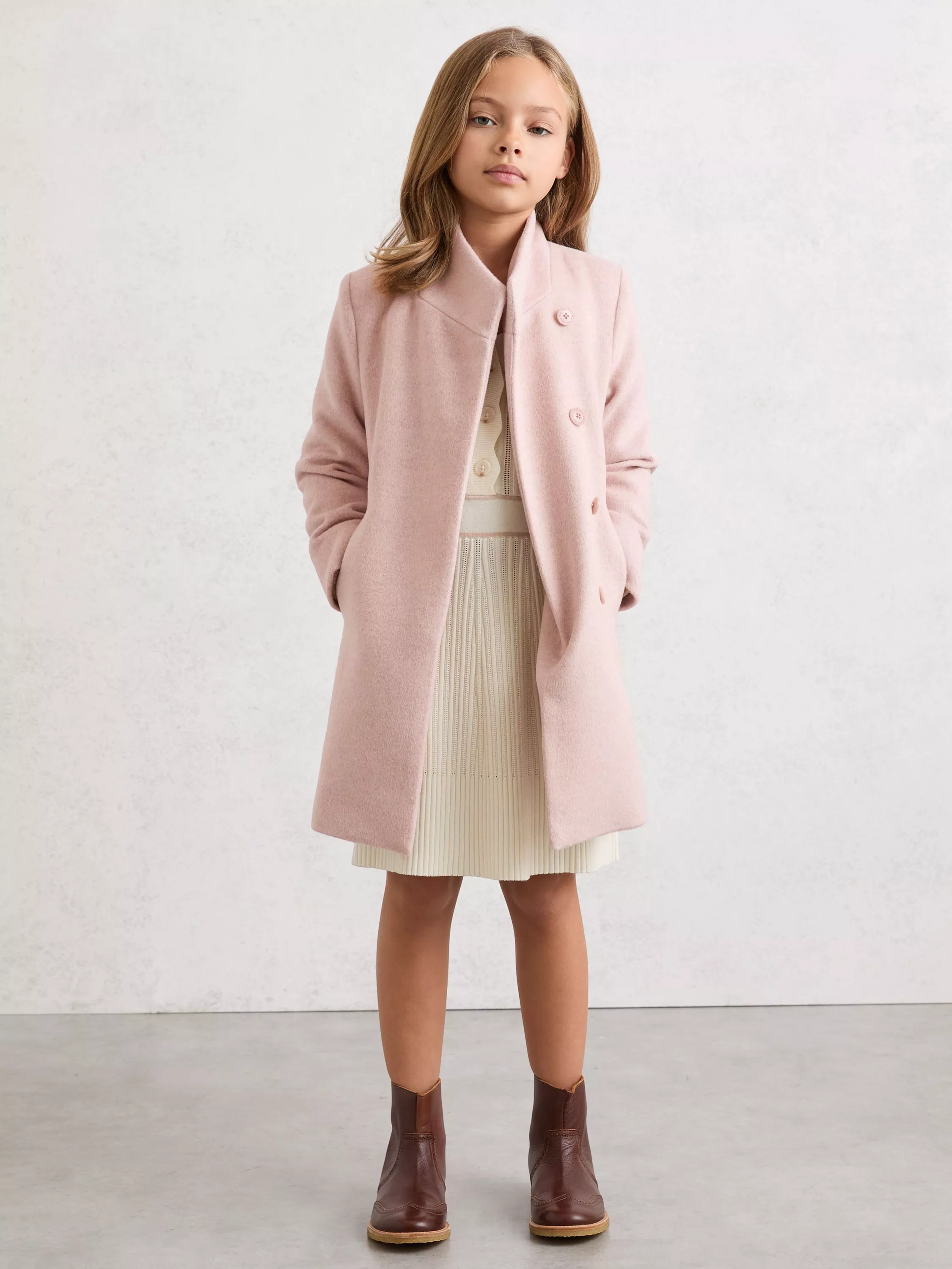 ReissKids' Wool Blend Funnel Neck Coat, Pink