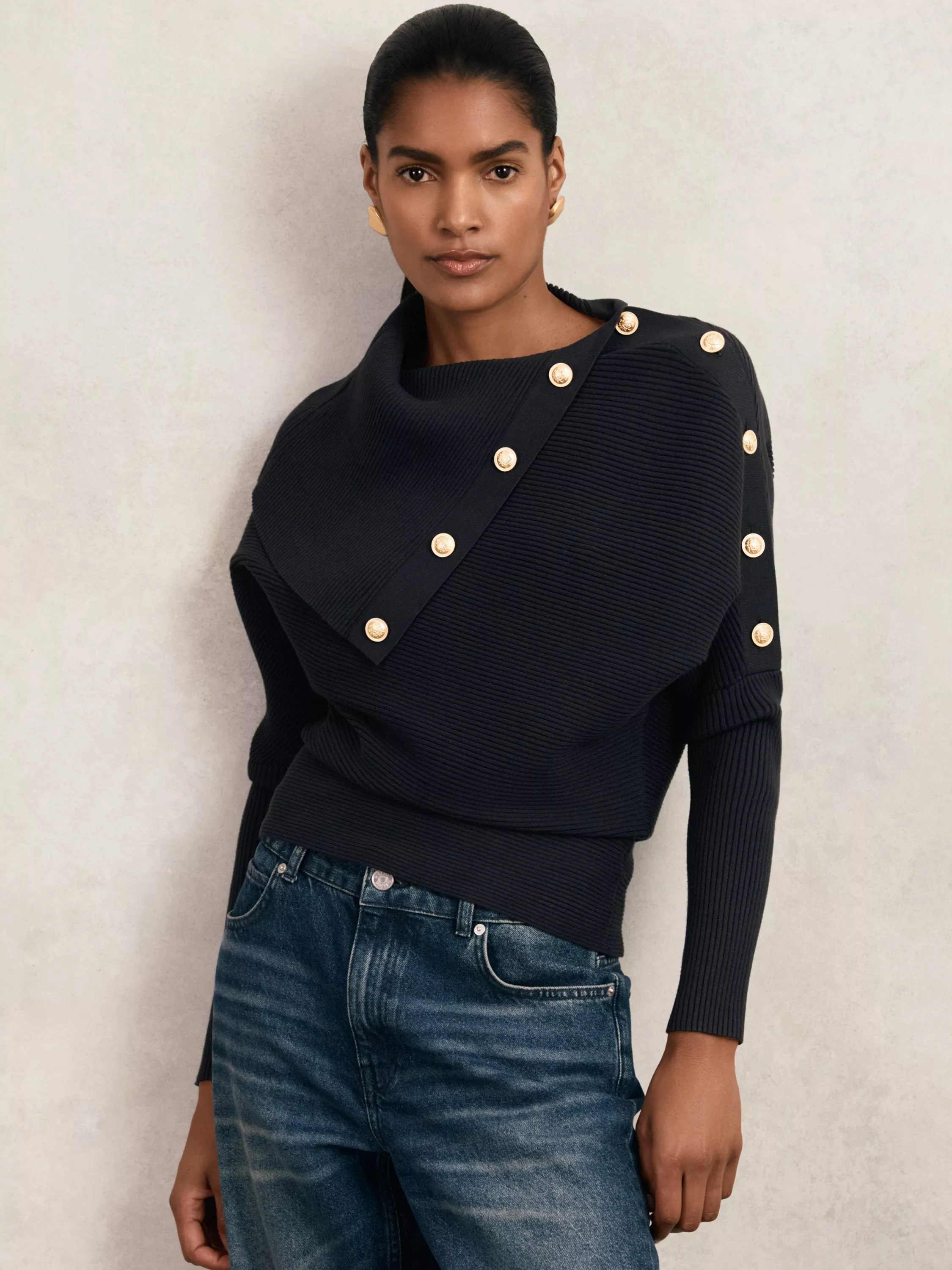 ReissLexi Button Detail Jumper, Navy