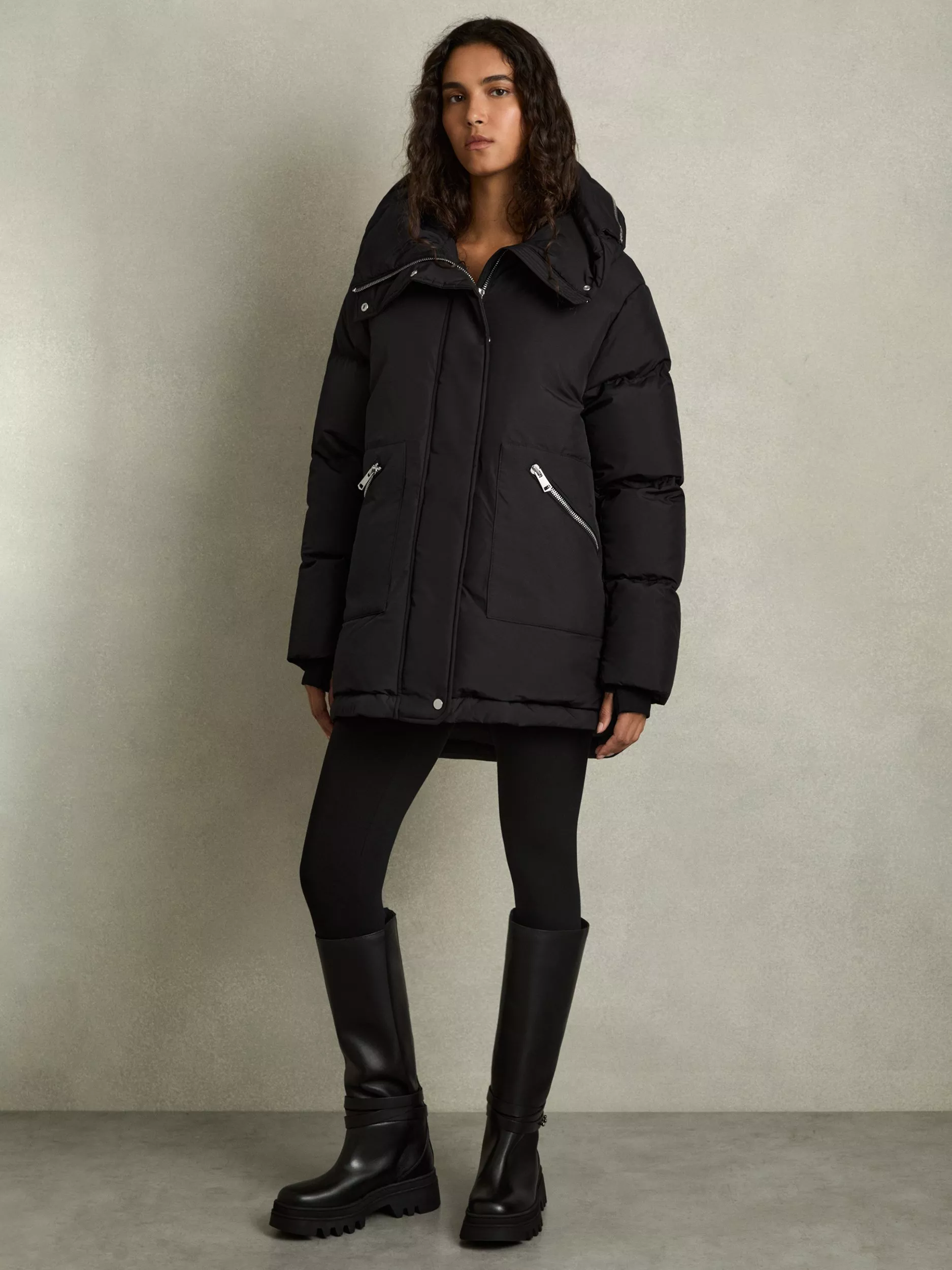 A staple for wintery days, this puffer jacket from Reiss falls to a regular length. Designed for practicality with a built-in hood, it is fashioned from long-lasting fabric that will see away the cold.
