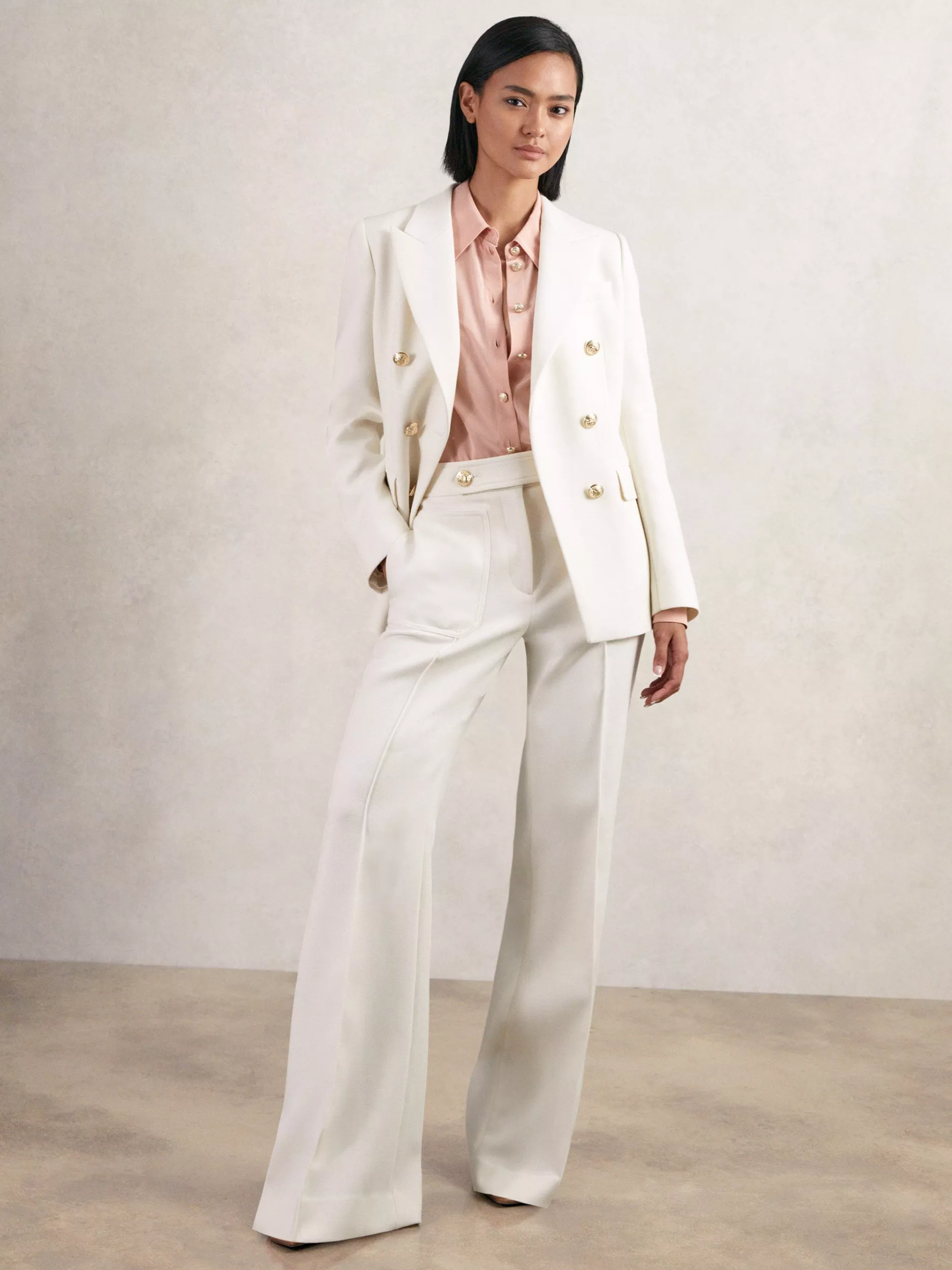 This petite double-breasted blazer elevates your look from day to evening. Its wool blend and tailored fit offer comfort and confidence, while precise detailing keeps you feeling sharp and ready for anything your agenda brings.