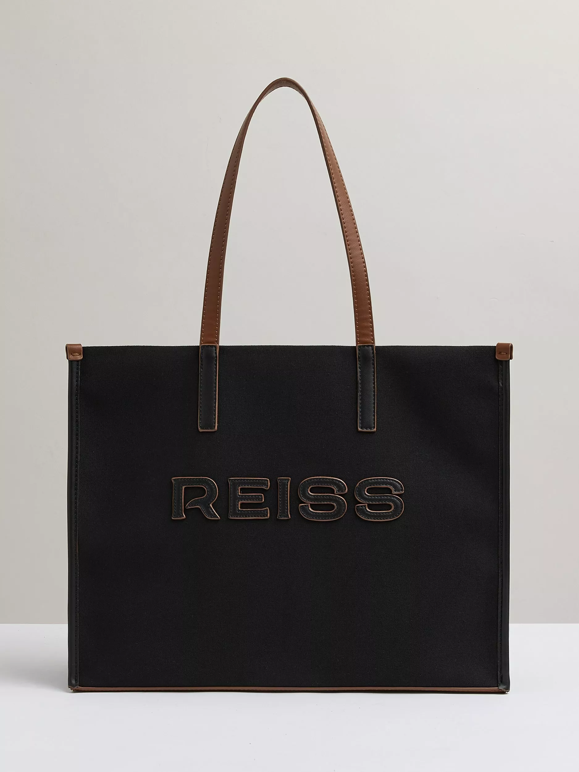 Reinforced with a contrasting base, corners and carry straps, the Reiss logo is depicted with cut-out lettering on the front.