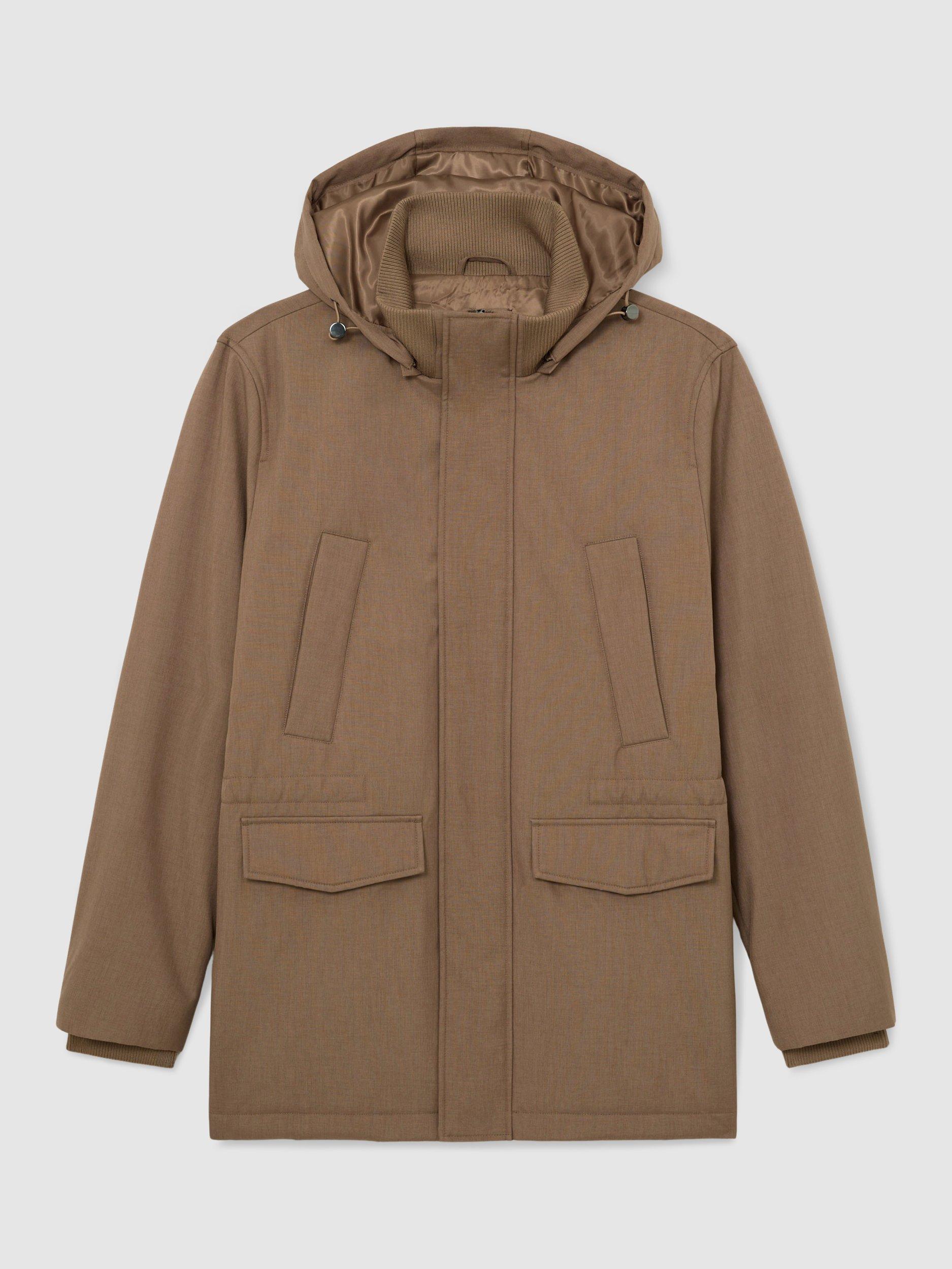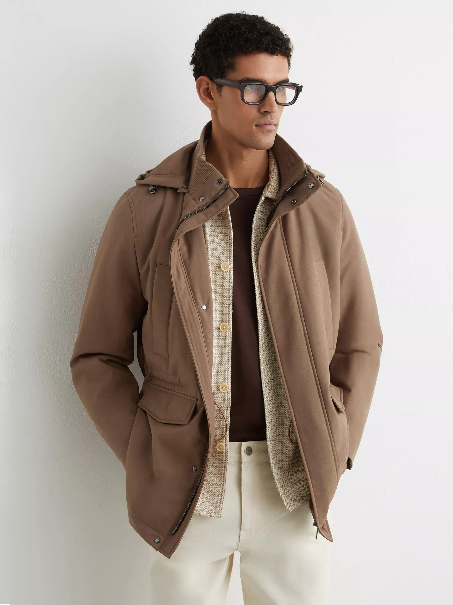 Stay prepared for any weather with this versatile raincoat puffer. The regular fit and plain design keep things smart while practical details help you handle unexpected showers in comfort and style.