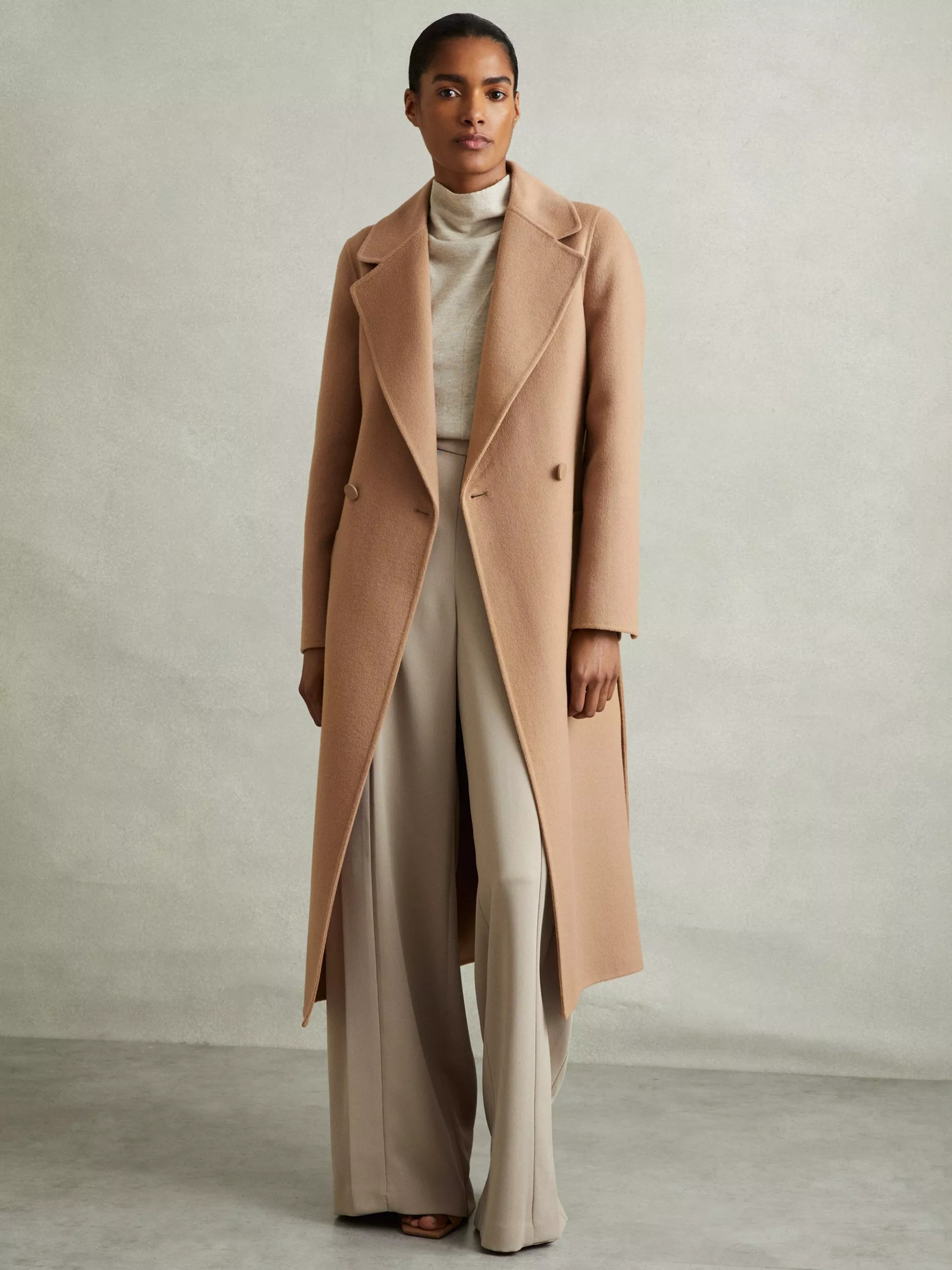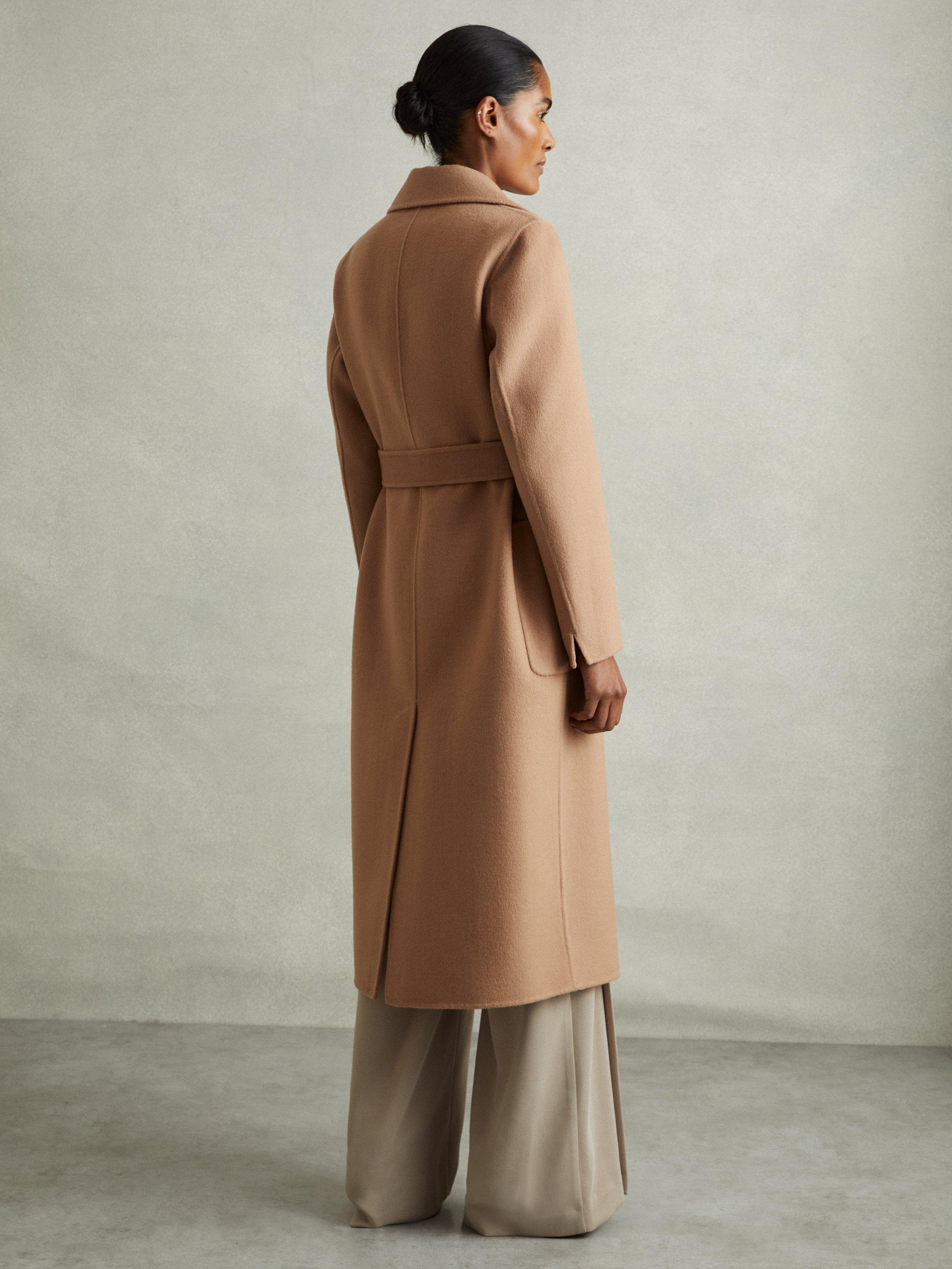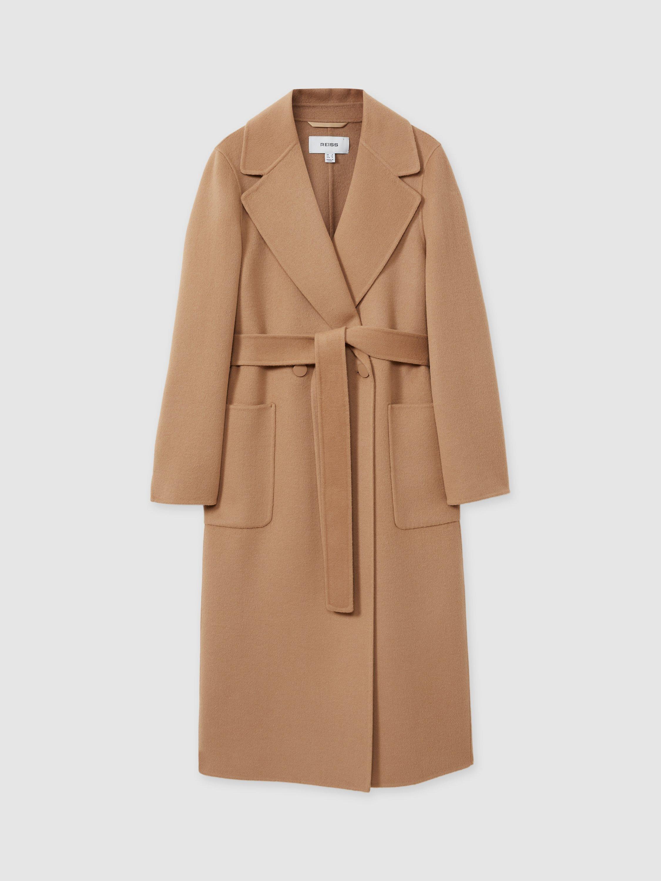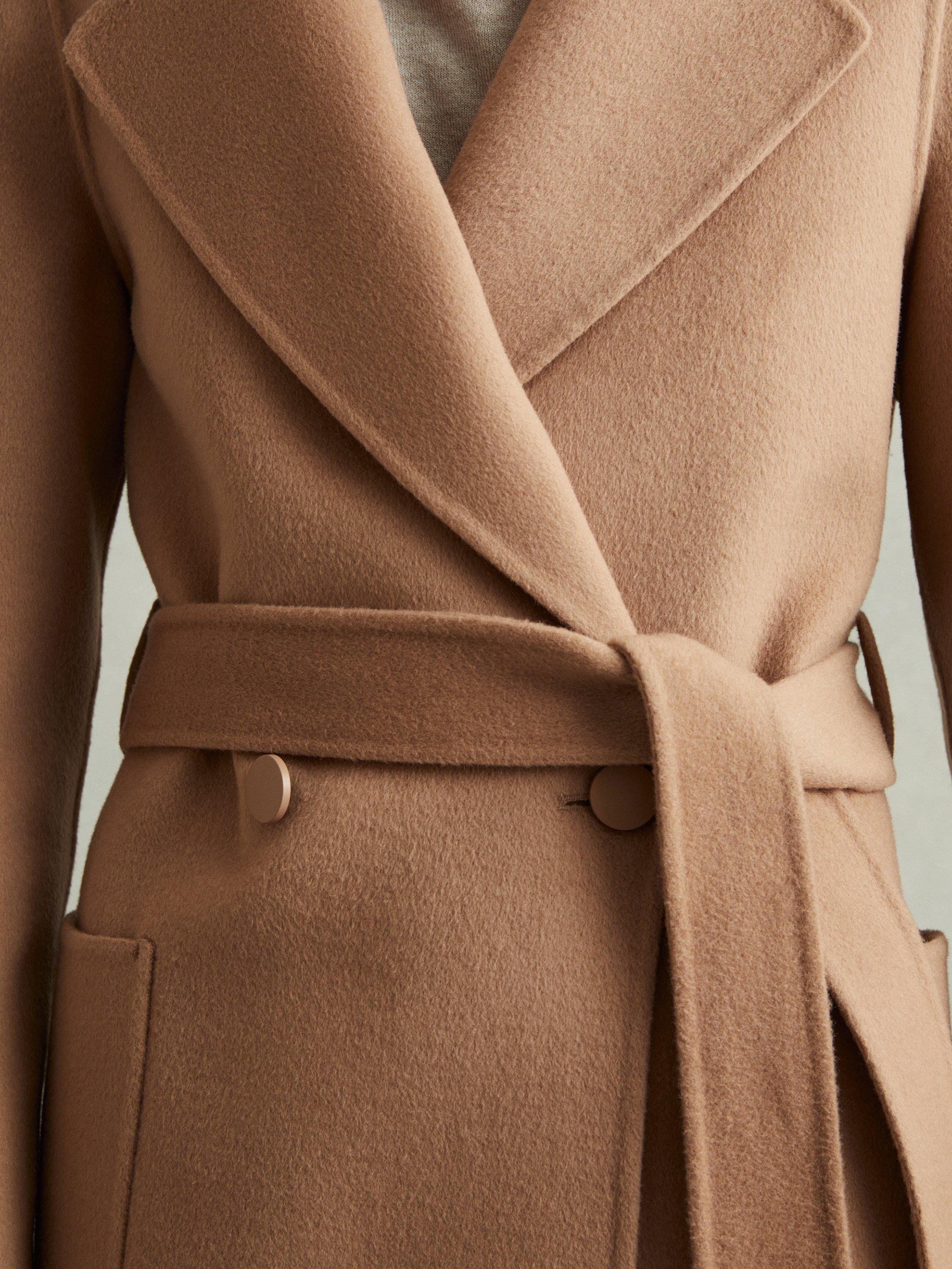 Detailed with oversized lapels and a self-tie fabric waist belt, it is made using a rich wool blend for a warming fit.