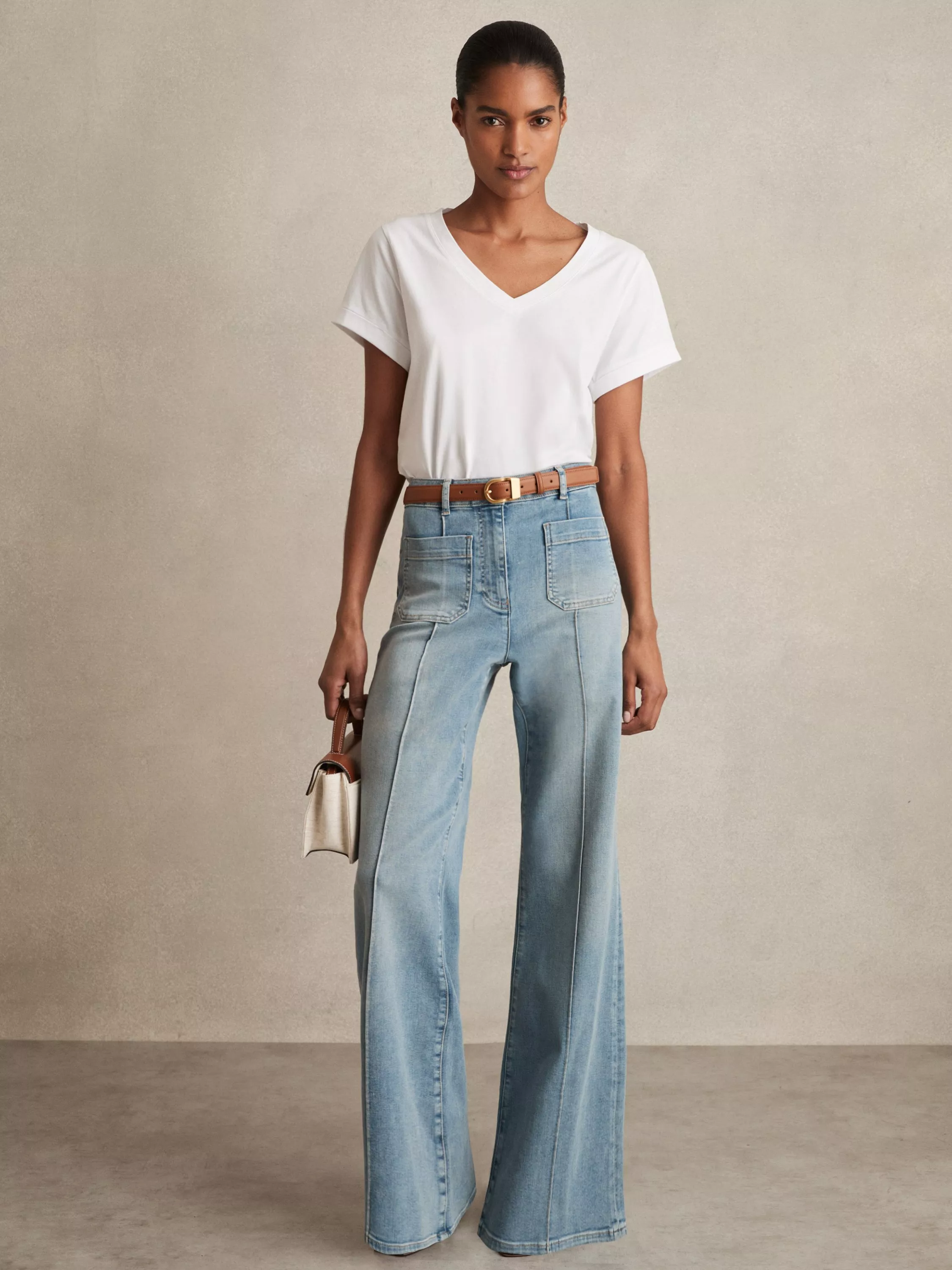 A soft cotton t-shirt from Reiss framed with a classic v-neckline and short sleeves. The base of all your spring/summer looks.