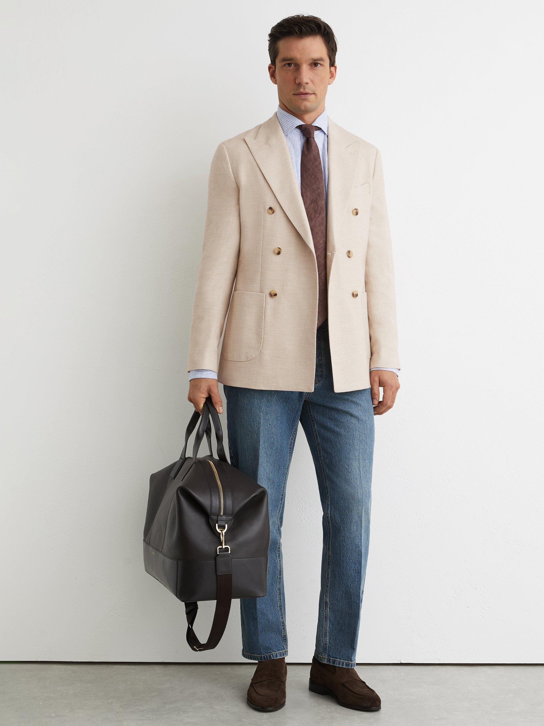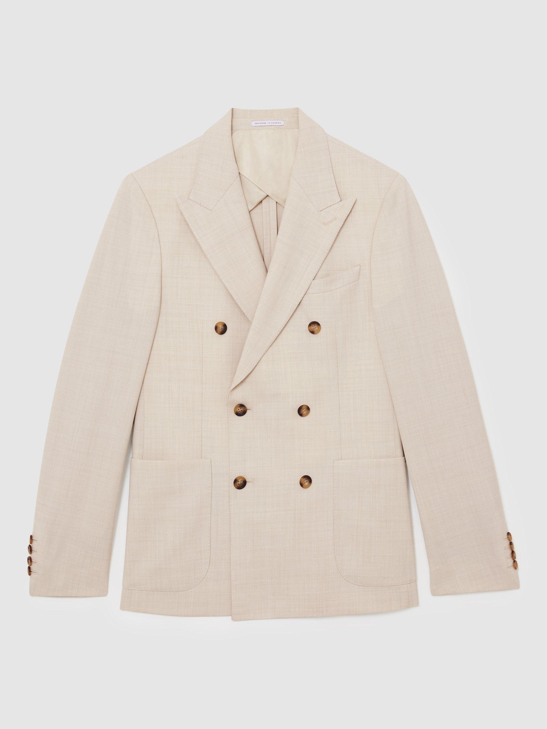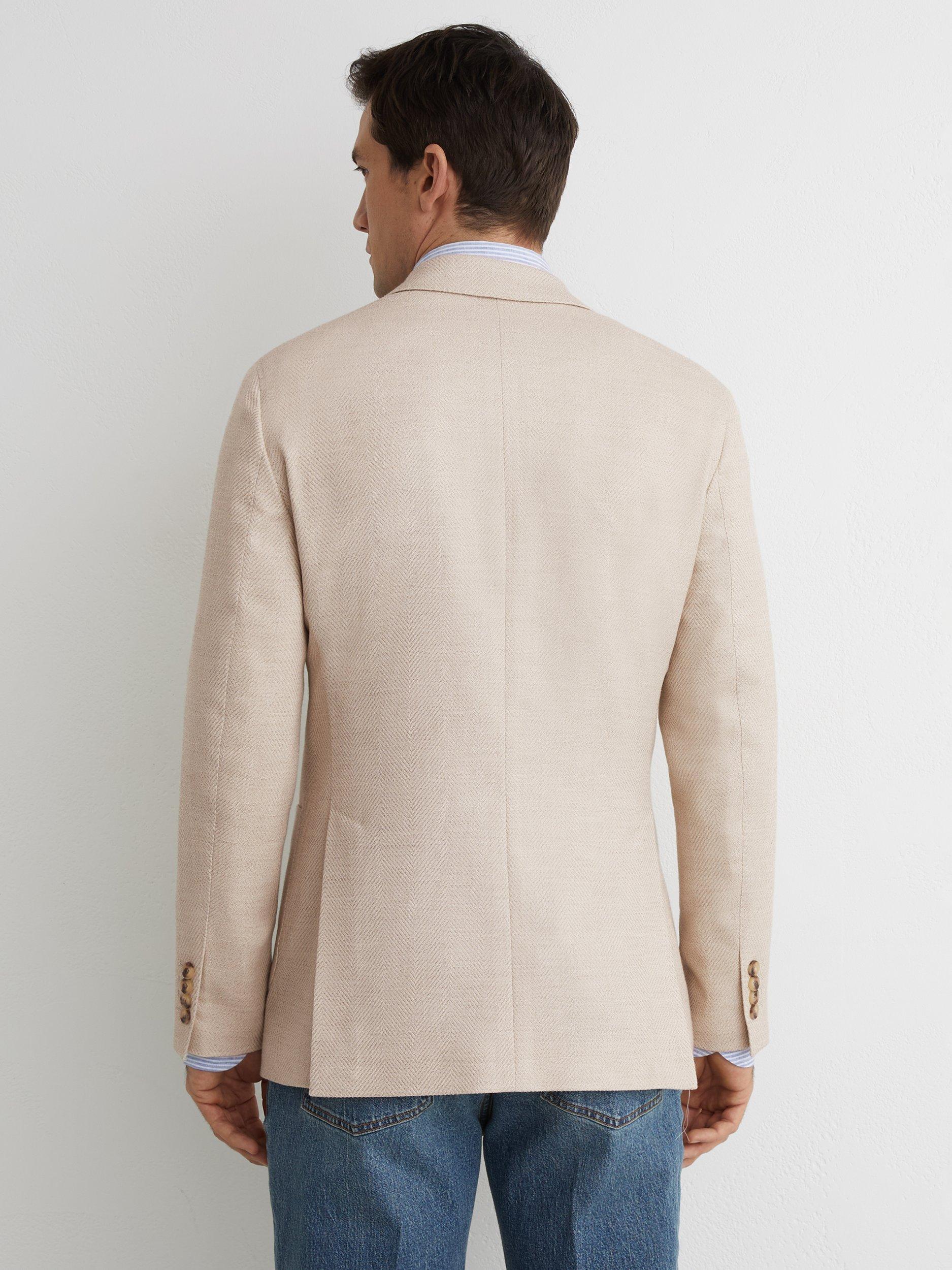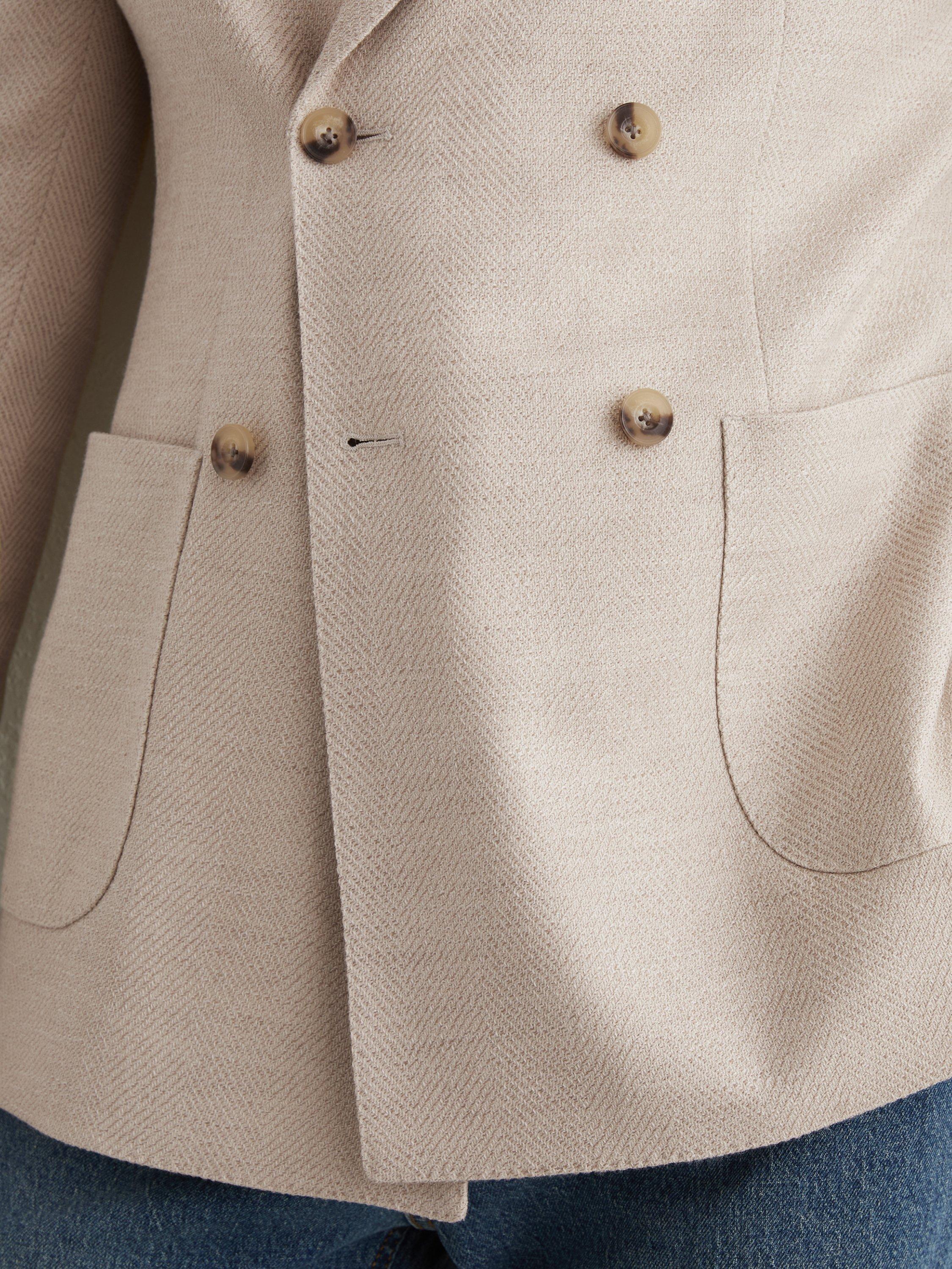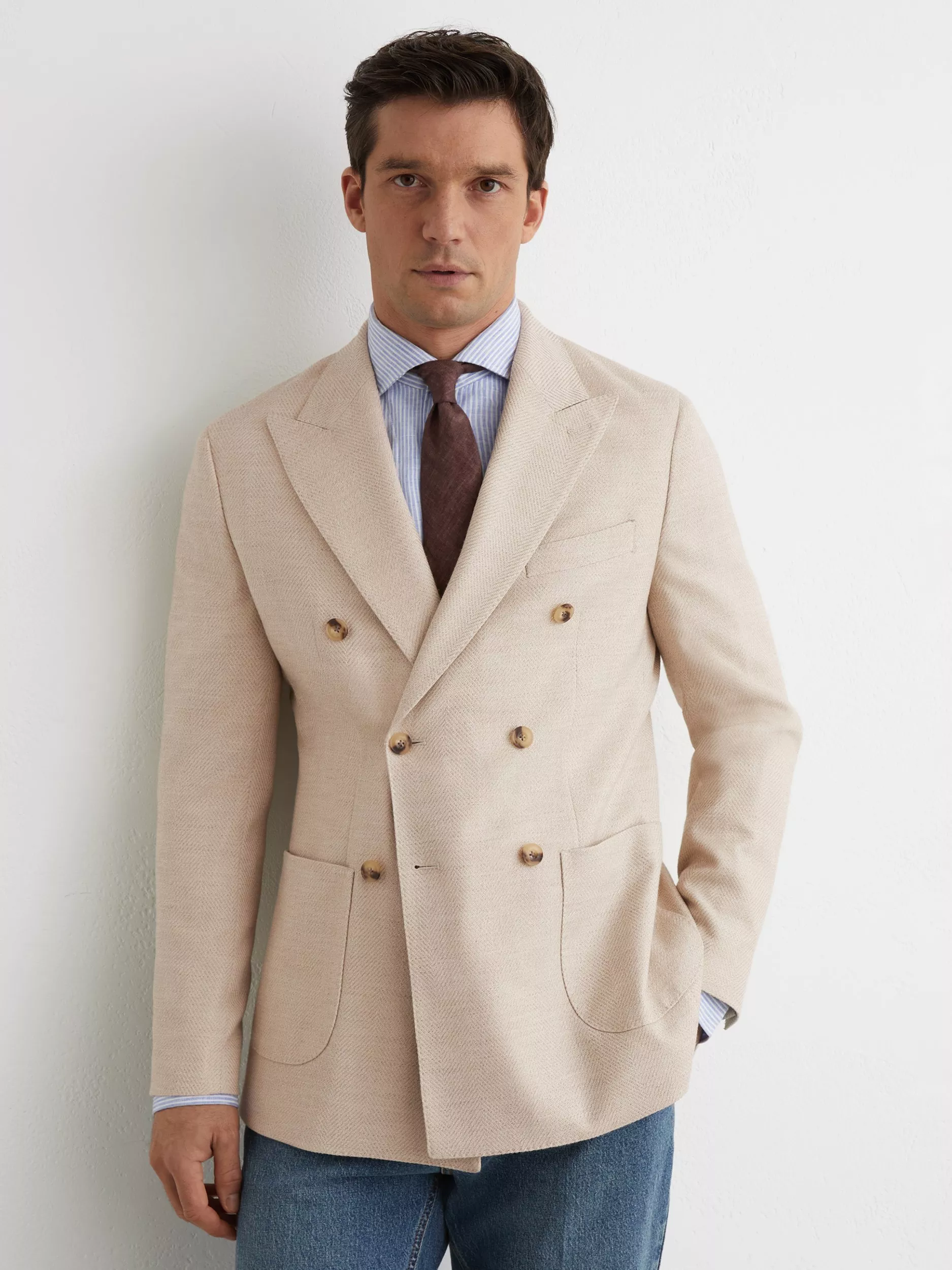 ReissManci Double Breasted Tailored Fit Herringbone Blazer, Stone