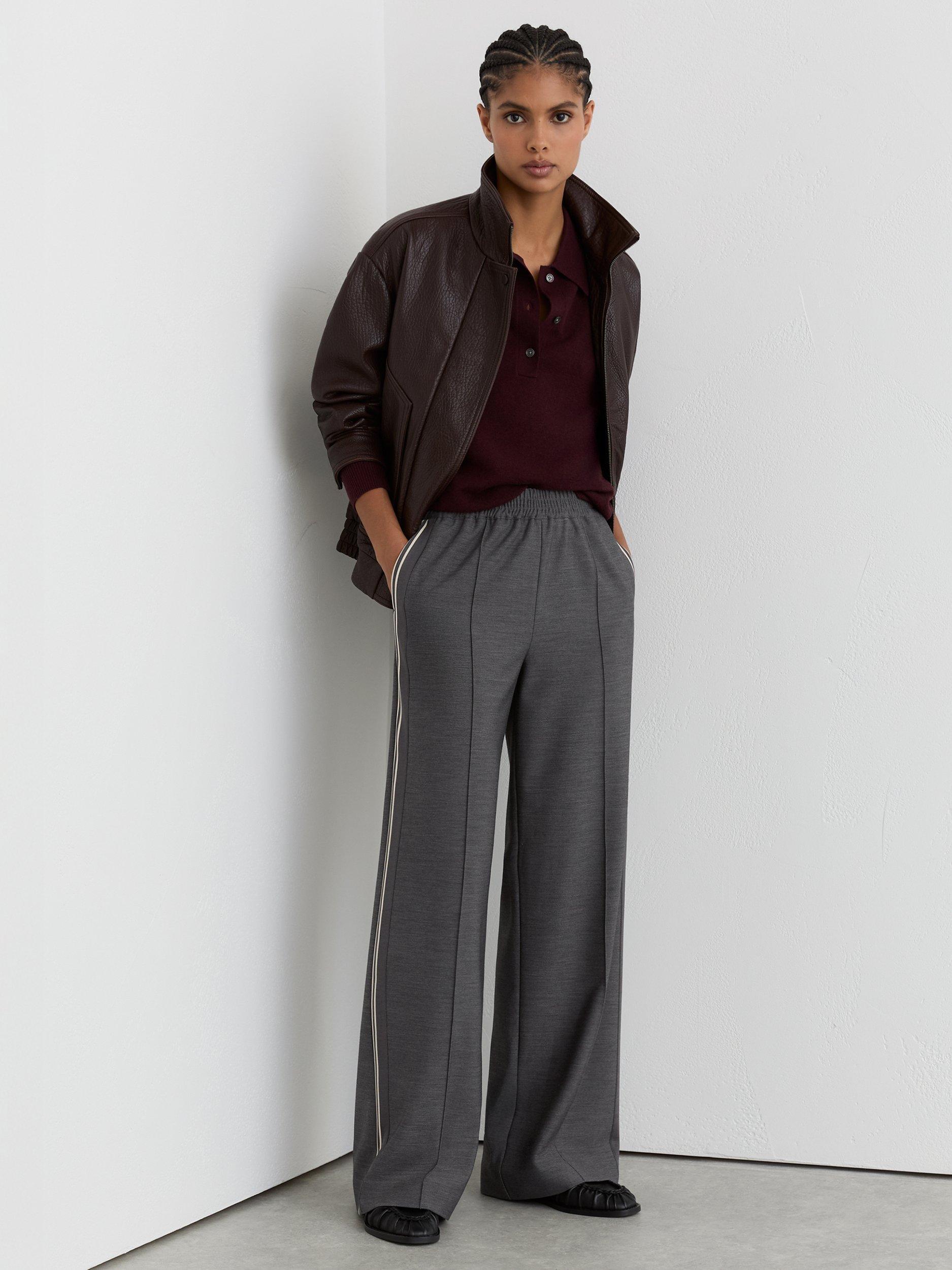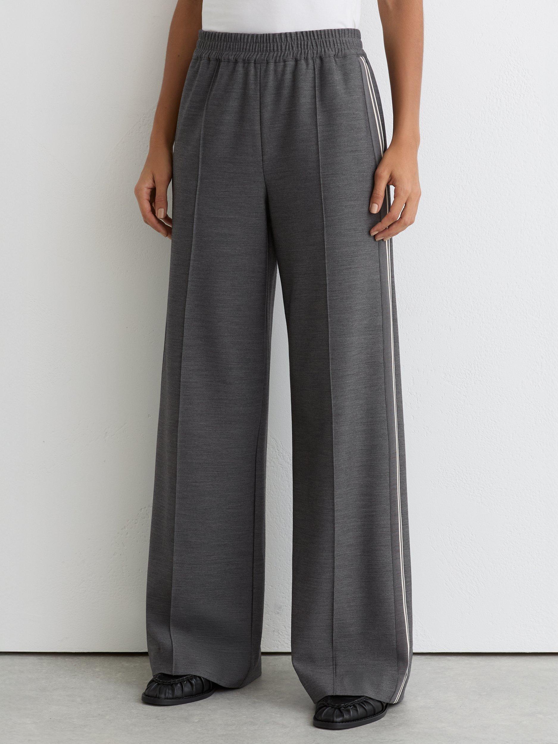 A pair of perfectly oversized, perfectly nonchalant wide-leg trousers from Reiss. They sit mid rise with an elasticated waist and regular length hems.