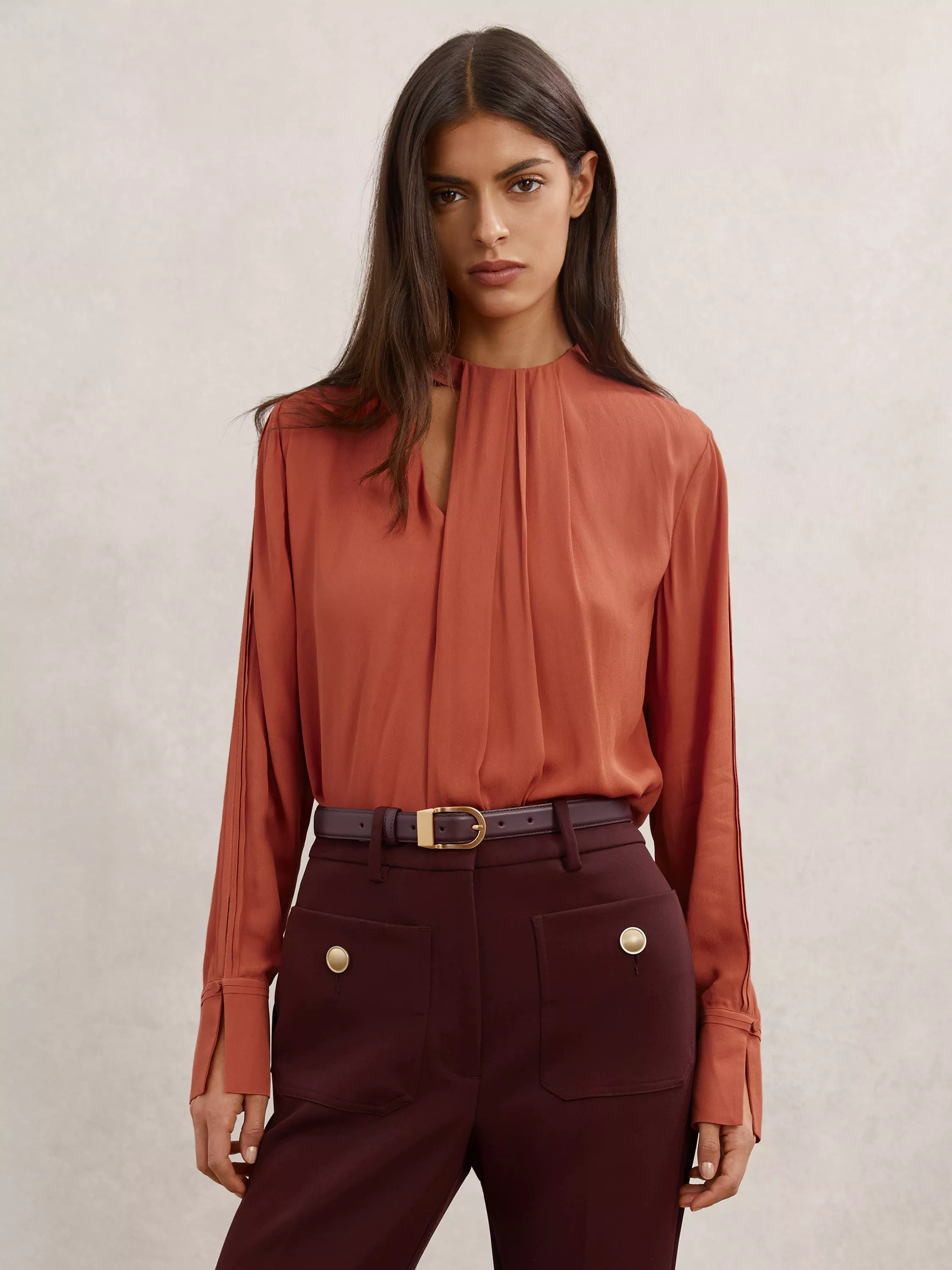 An effortless drape detailed blouse from Reiss, made from light viscose. Featuring a crew neck and long sleeves, its plain colour design goes with everything. Everyday ease with a stylish twist.
