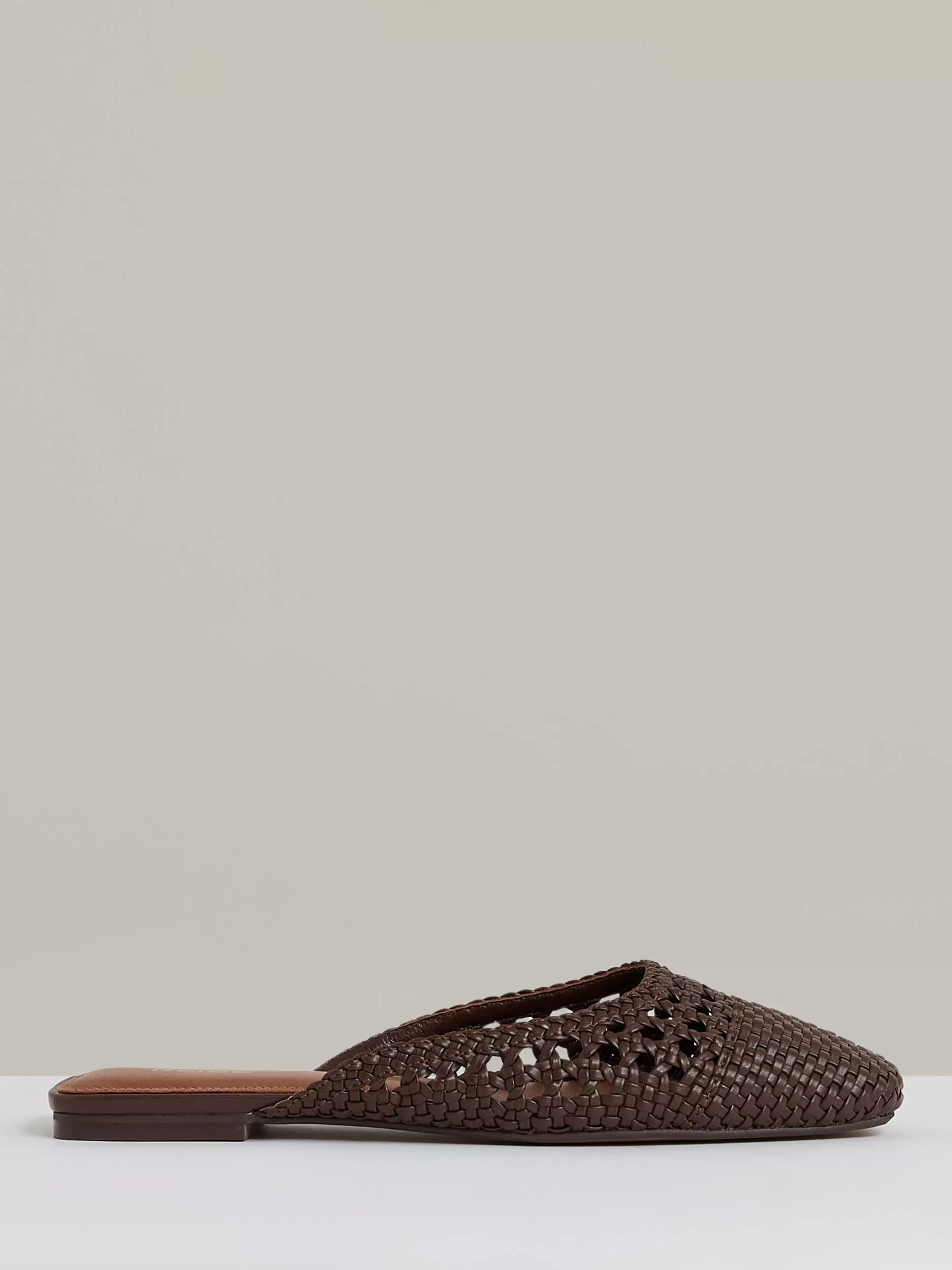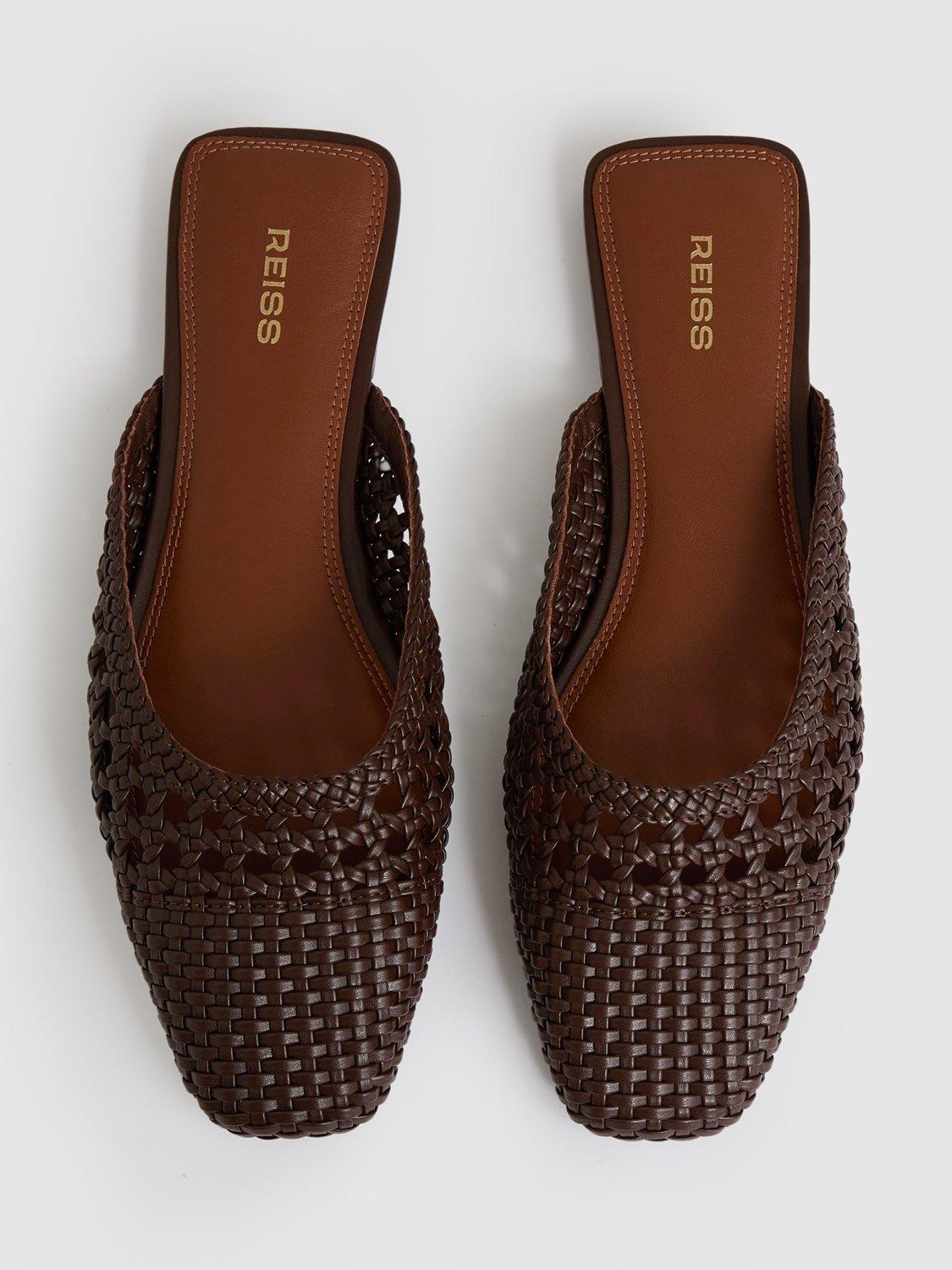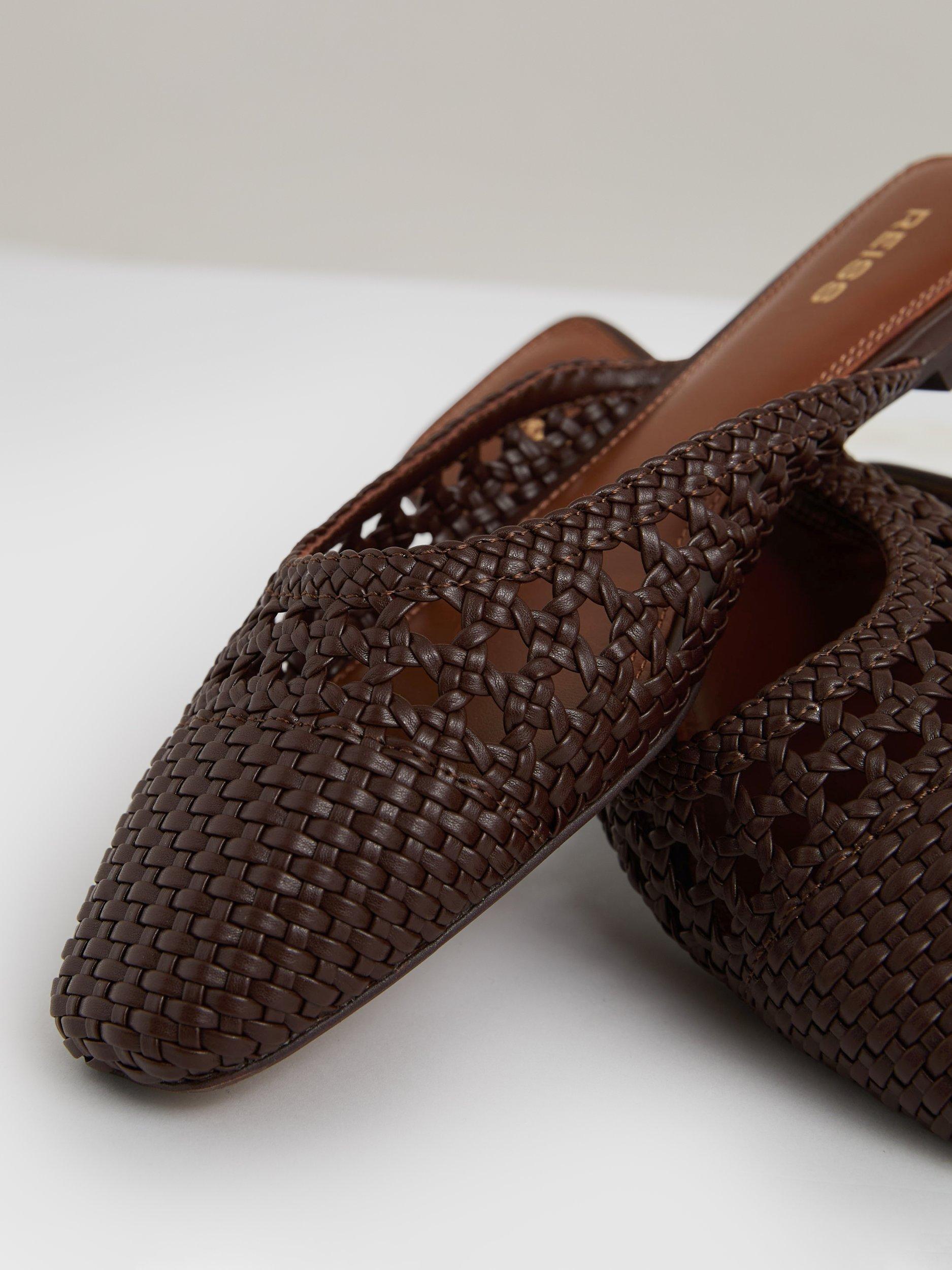 In the season's favoured backless silhouette, this pair of mules from Reiss offers long-lasting, comfortable wear with their woven faux leather uppers. Set on a flat heel, they are structured with square-shaped toes that are rounded off for a contemporary finish.