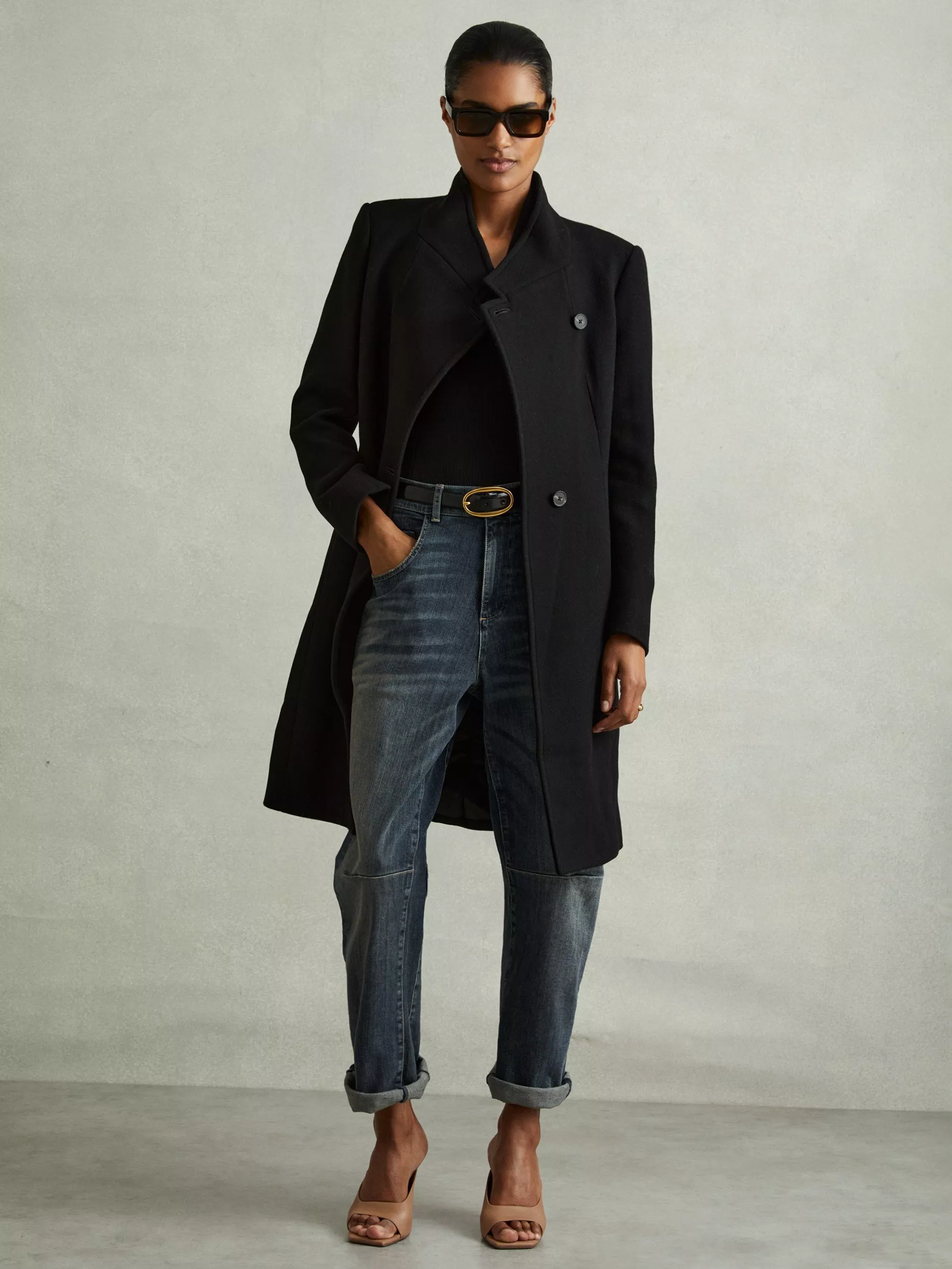 Celebrating minimalist silhouettes, this coat from Reiss elongates your profile with its longline cut.