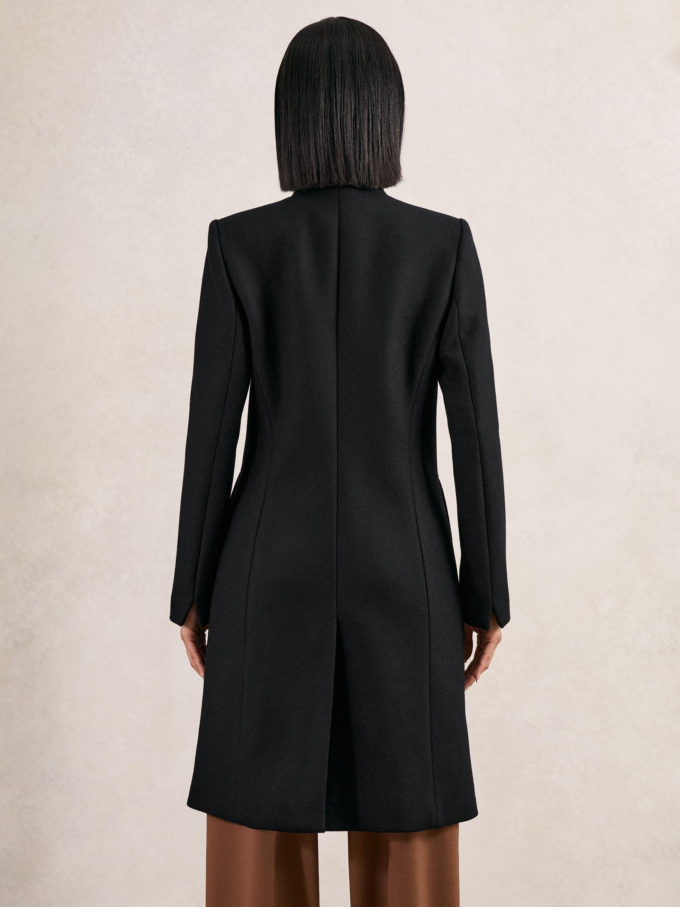 Step out with confidence in this petite longline overcoat, designed to keep you sharp and comfortable from morning to evening. Its high neck offers warmth and flair, while the classic silhouette fits right into your day-to-day adventures.