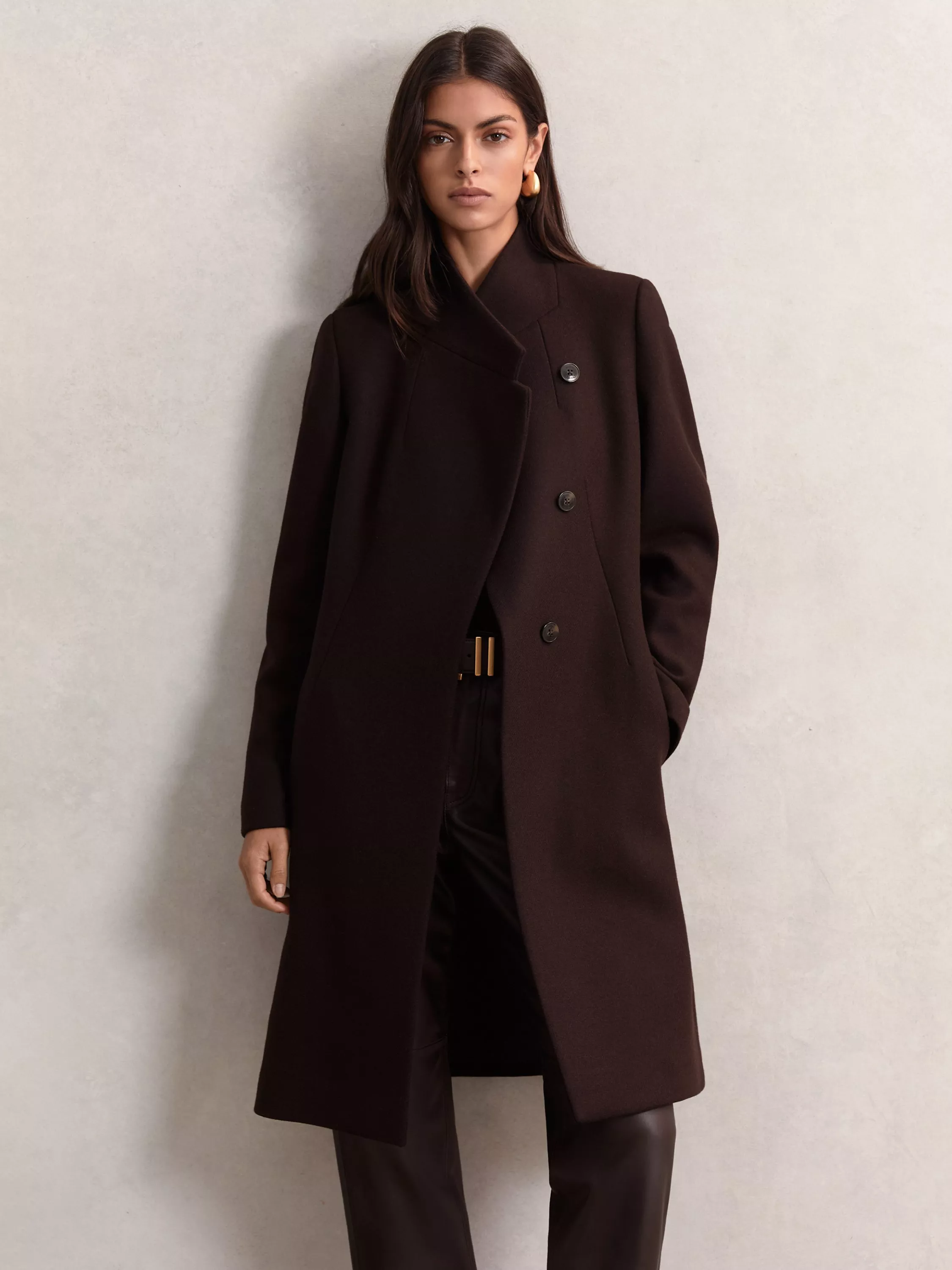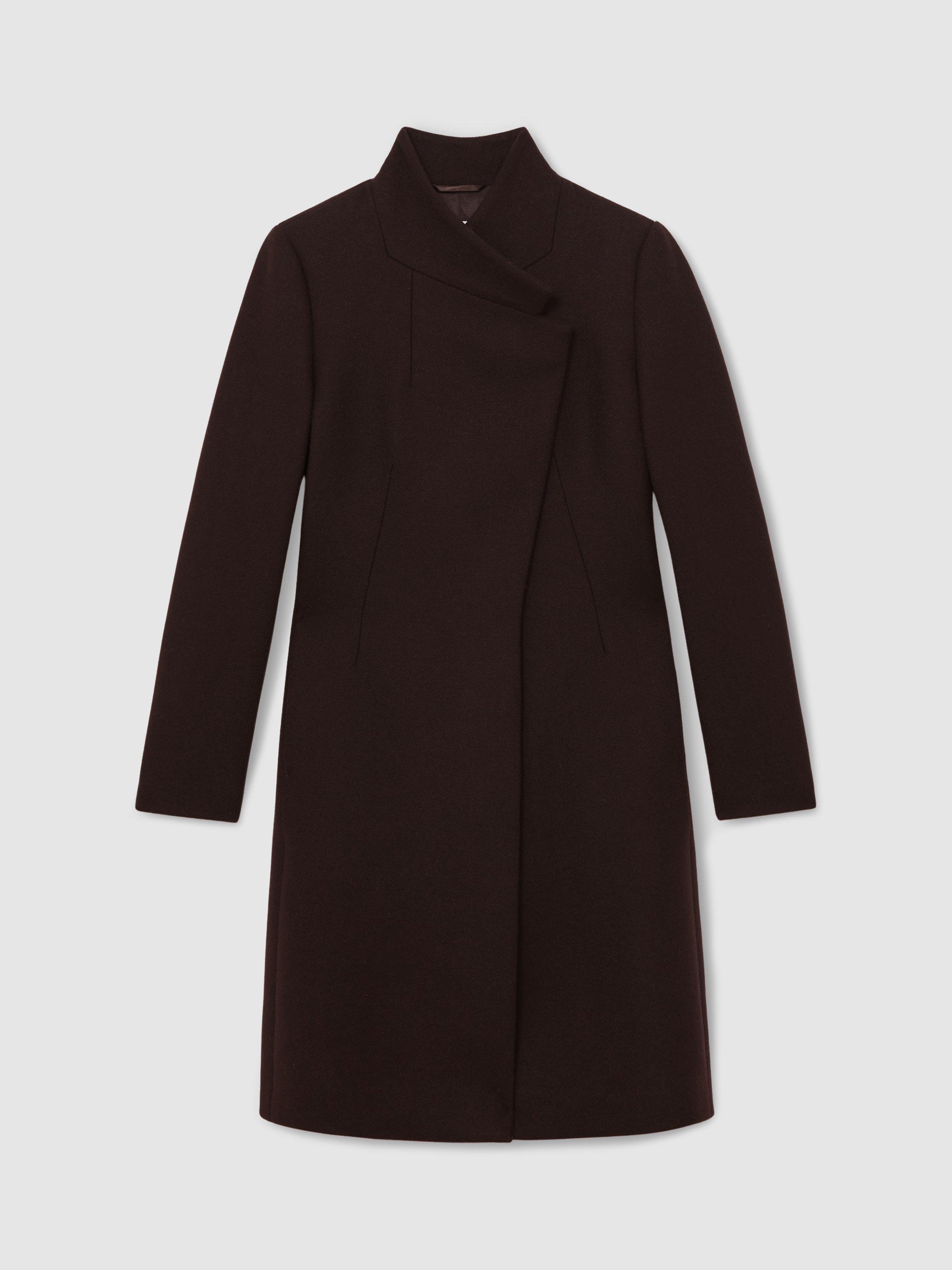 Command attention in this longline overcoat. Its wrap over neck and regular cut offer comfort with striking style, while the button fastening keeps things practical.