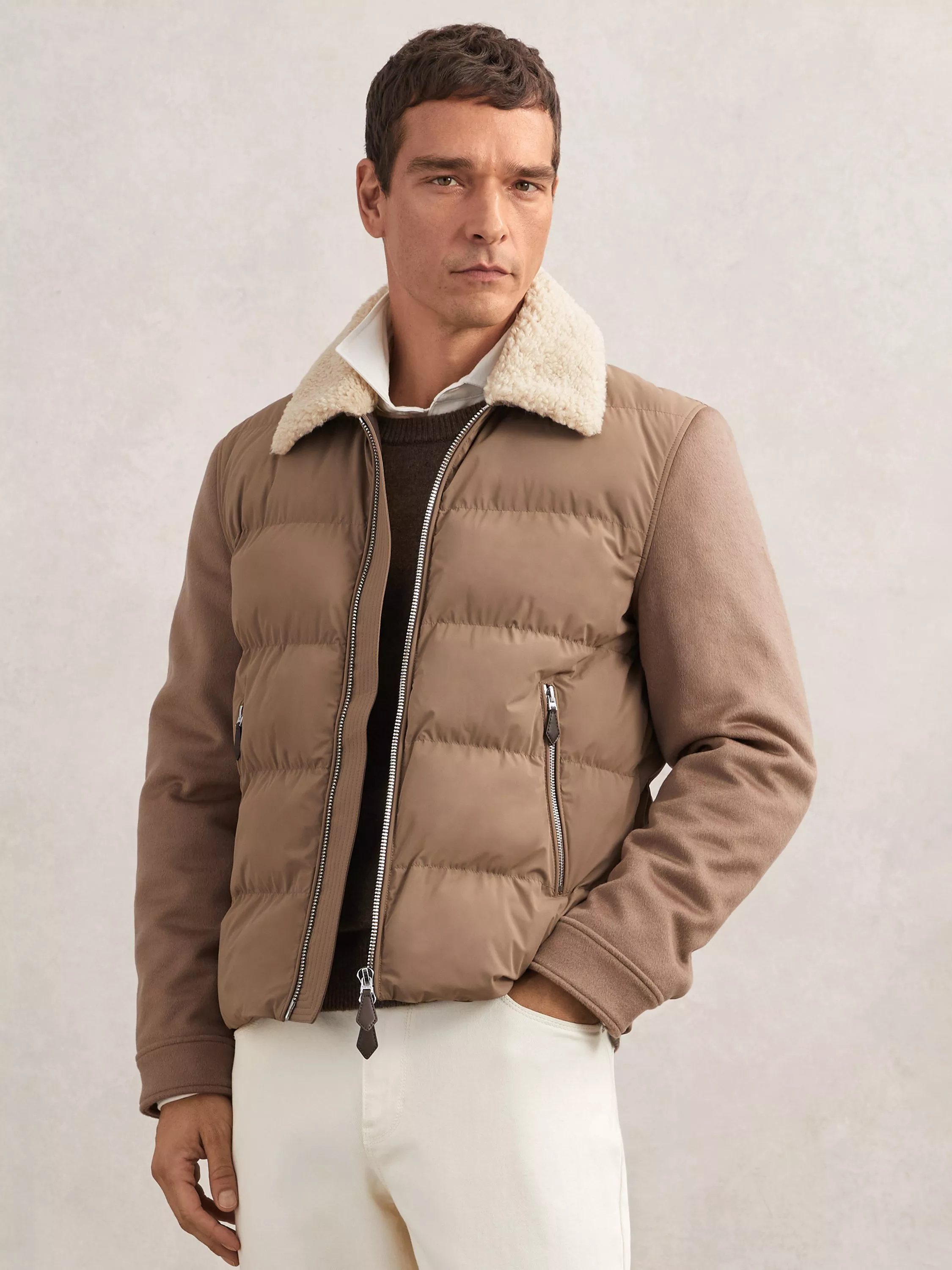 A quilted puffer jacket from Reiss. Its regular fit and zip fastening give you comfort, while the clever design offers warmth and flexibility for everyday wear.