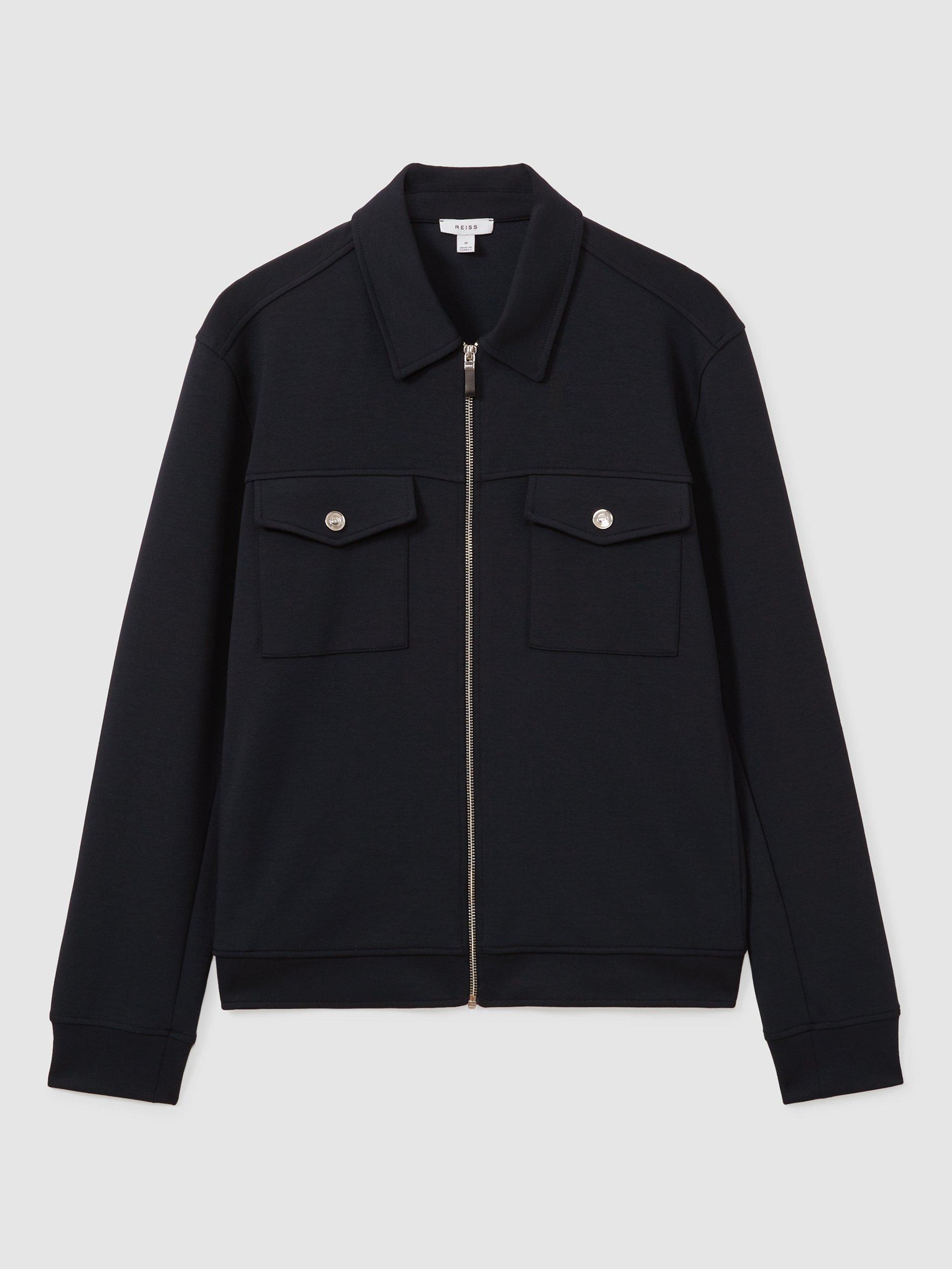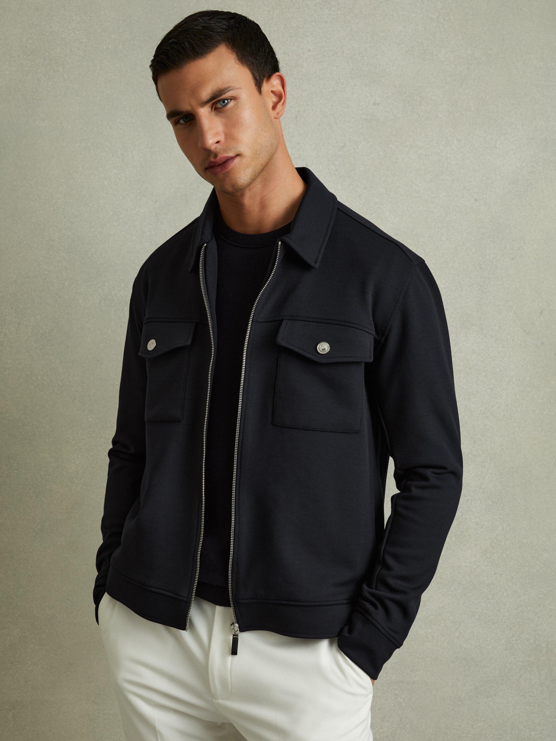 Taking its fashion cues from vintage style, stay effortlessly cool with this jacket by Reiss. Made with a fabric blend that's sure to stand the test of time, it is cropped at the hem and fastens with a zip.