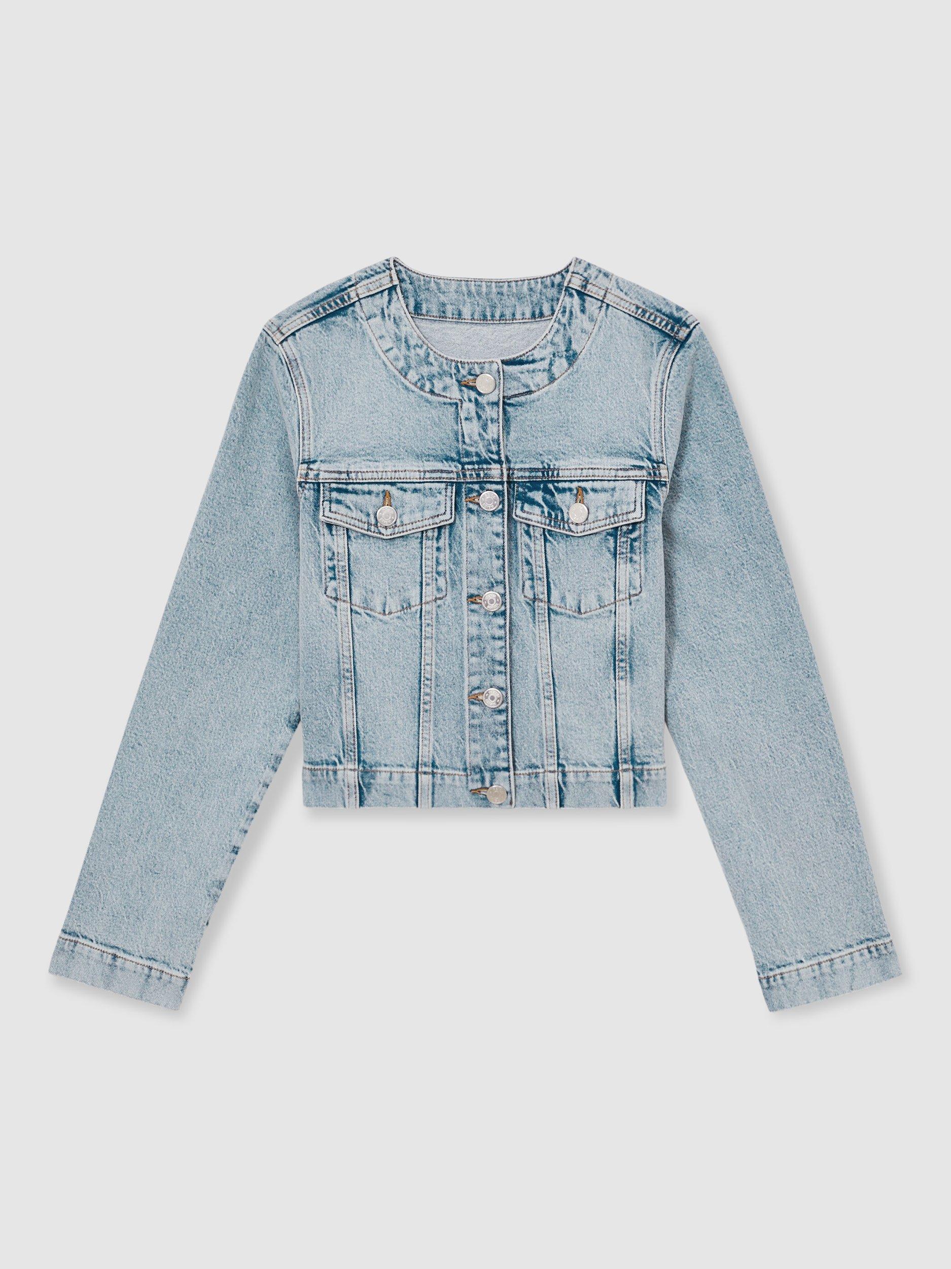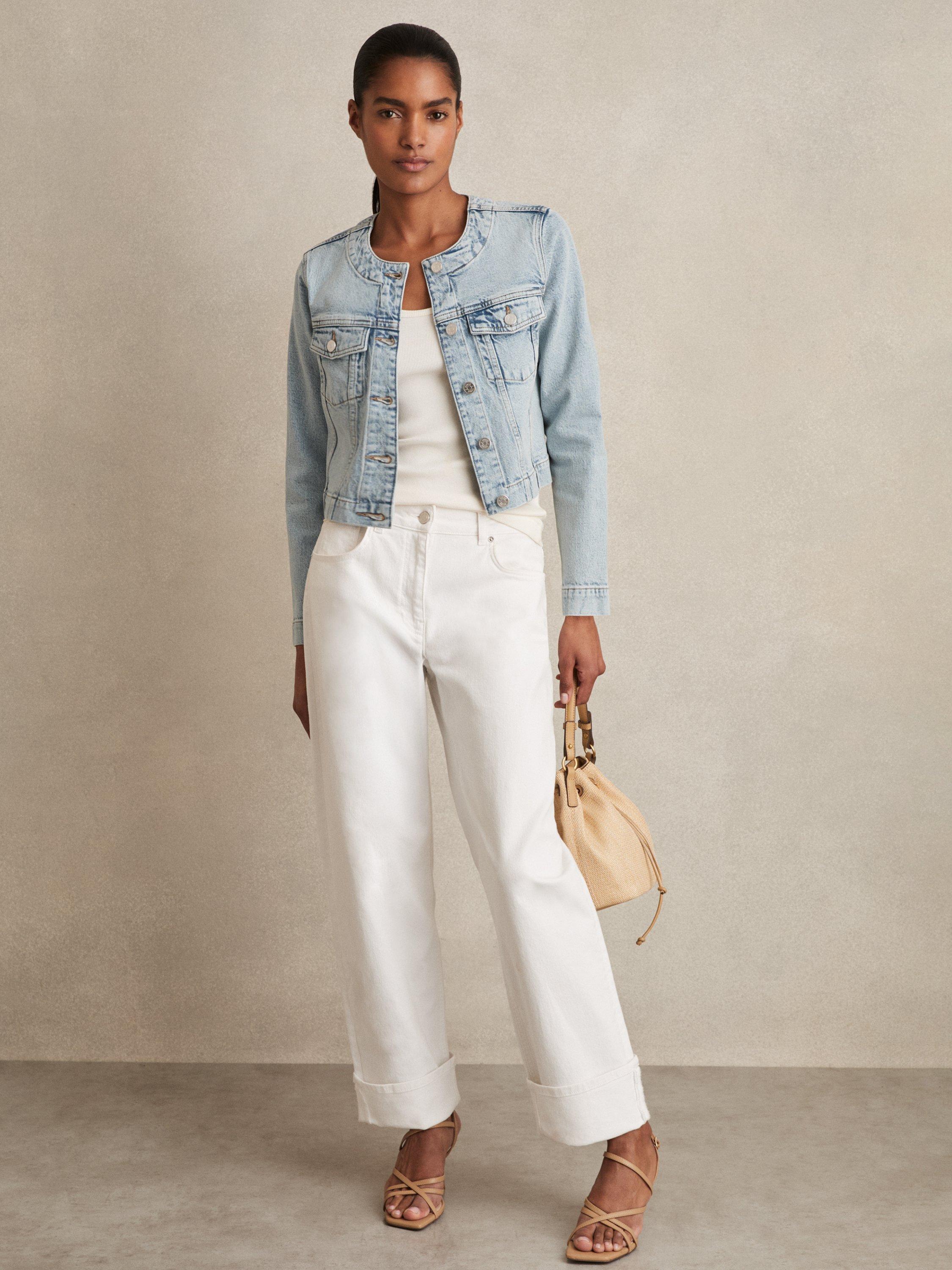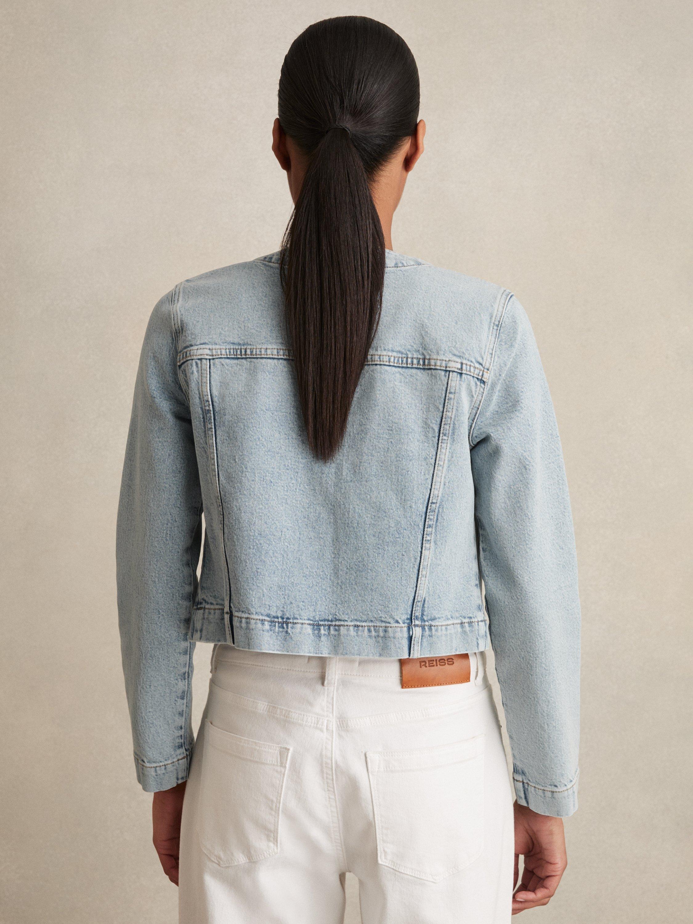 Easily layering over weekend attire, this collarless jacket by Reiss comes in a cropped cut and is made from a rich cotton blended denim for a soft and breathable fit.
