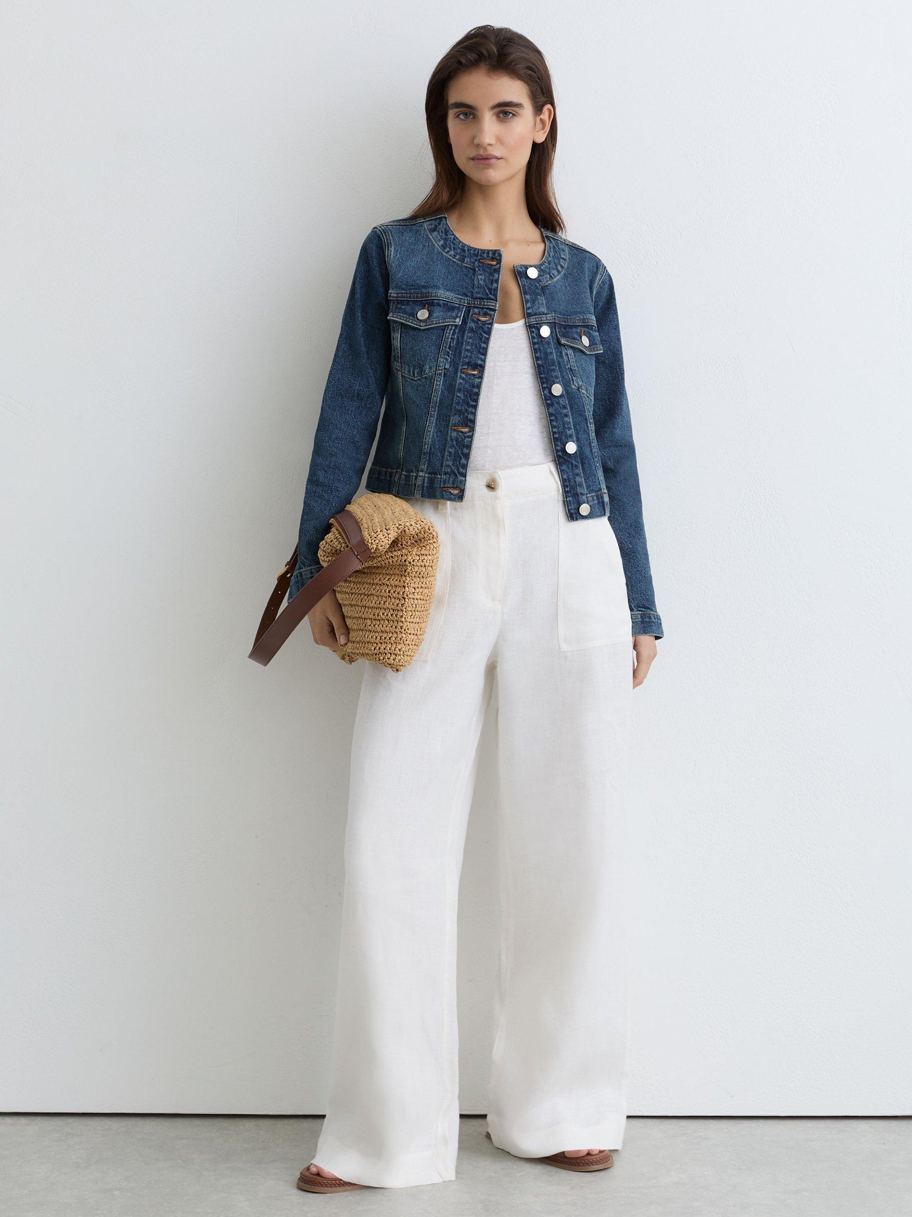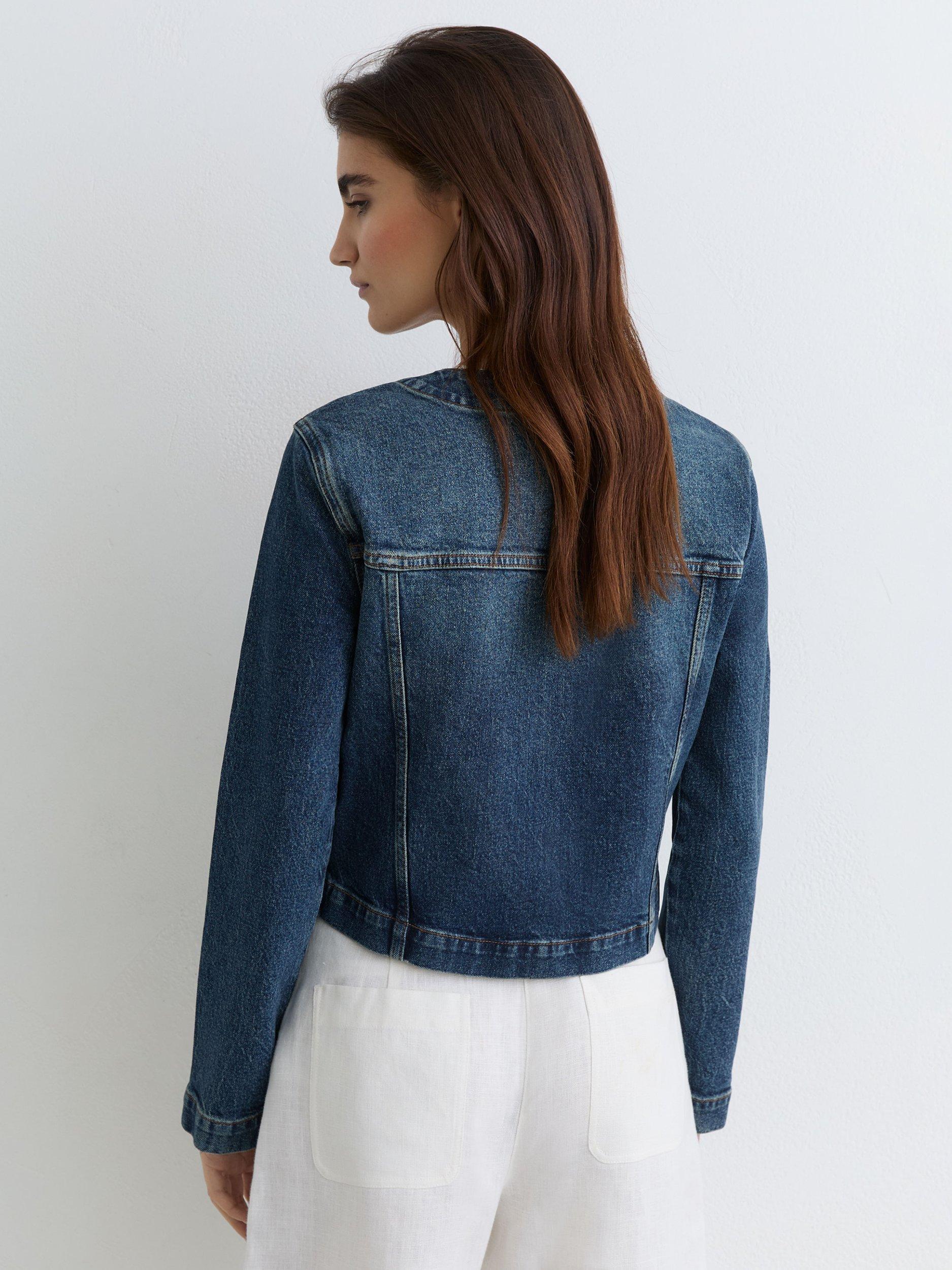 In a timeless style that goes with anything, this denim jacket by Reiss is cut from a cotton blend for breathable wear.