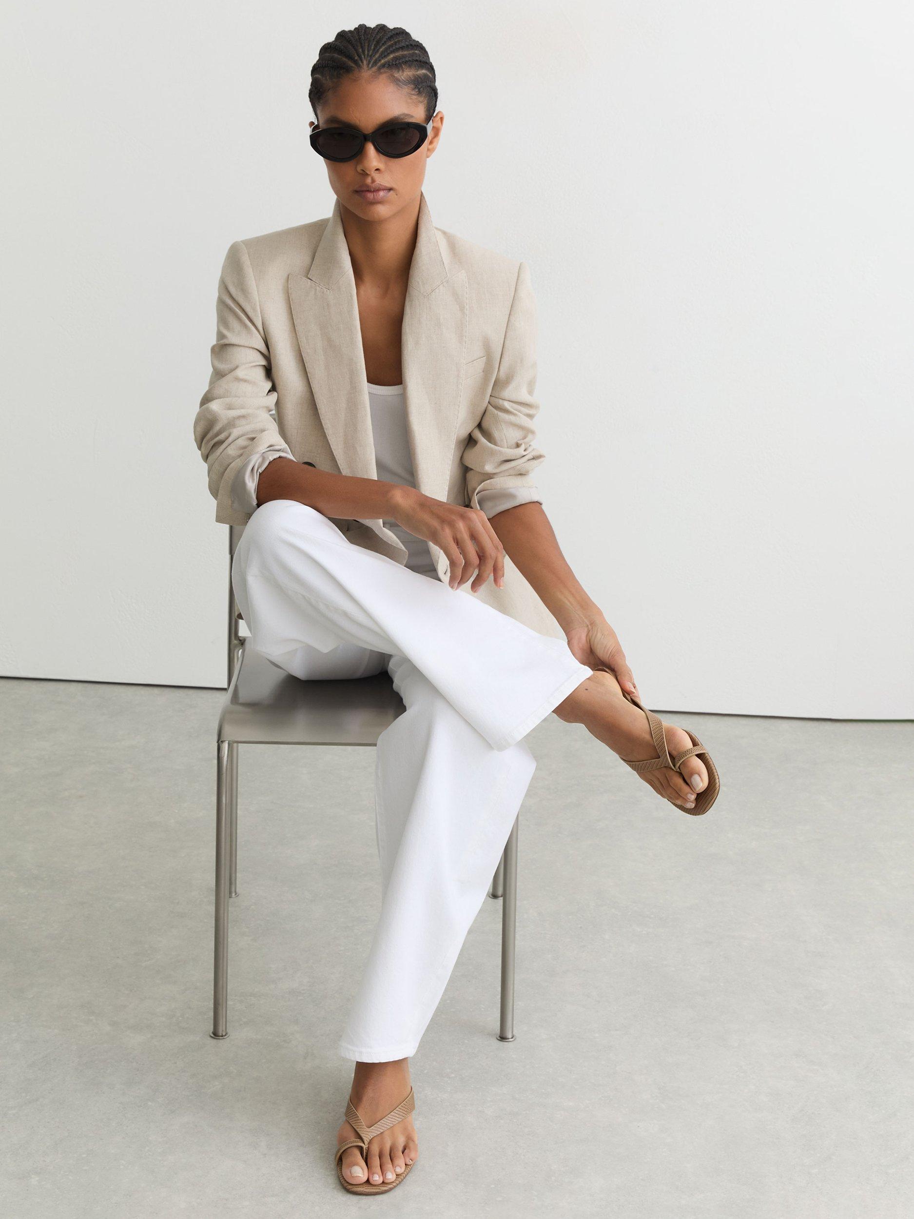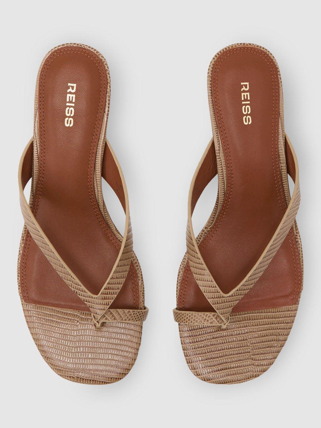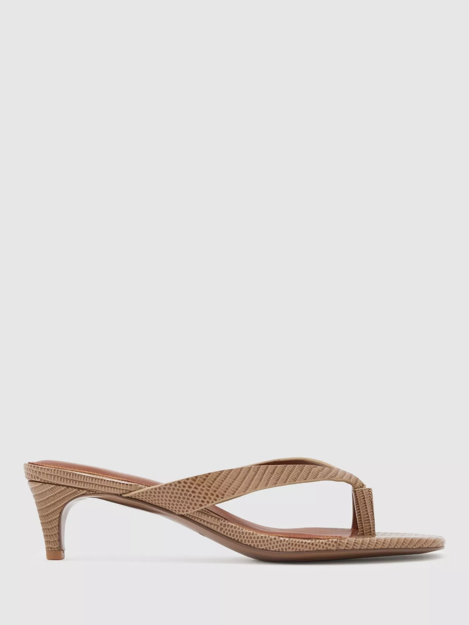 Heeled sandals by Reiss, crafted from supple cow leather with a square toe and a refined 4.5cm kitten heel. Designed for smart occasions in warmer months, they offer confident poise and comfort for anyone who values understated structure.