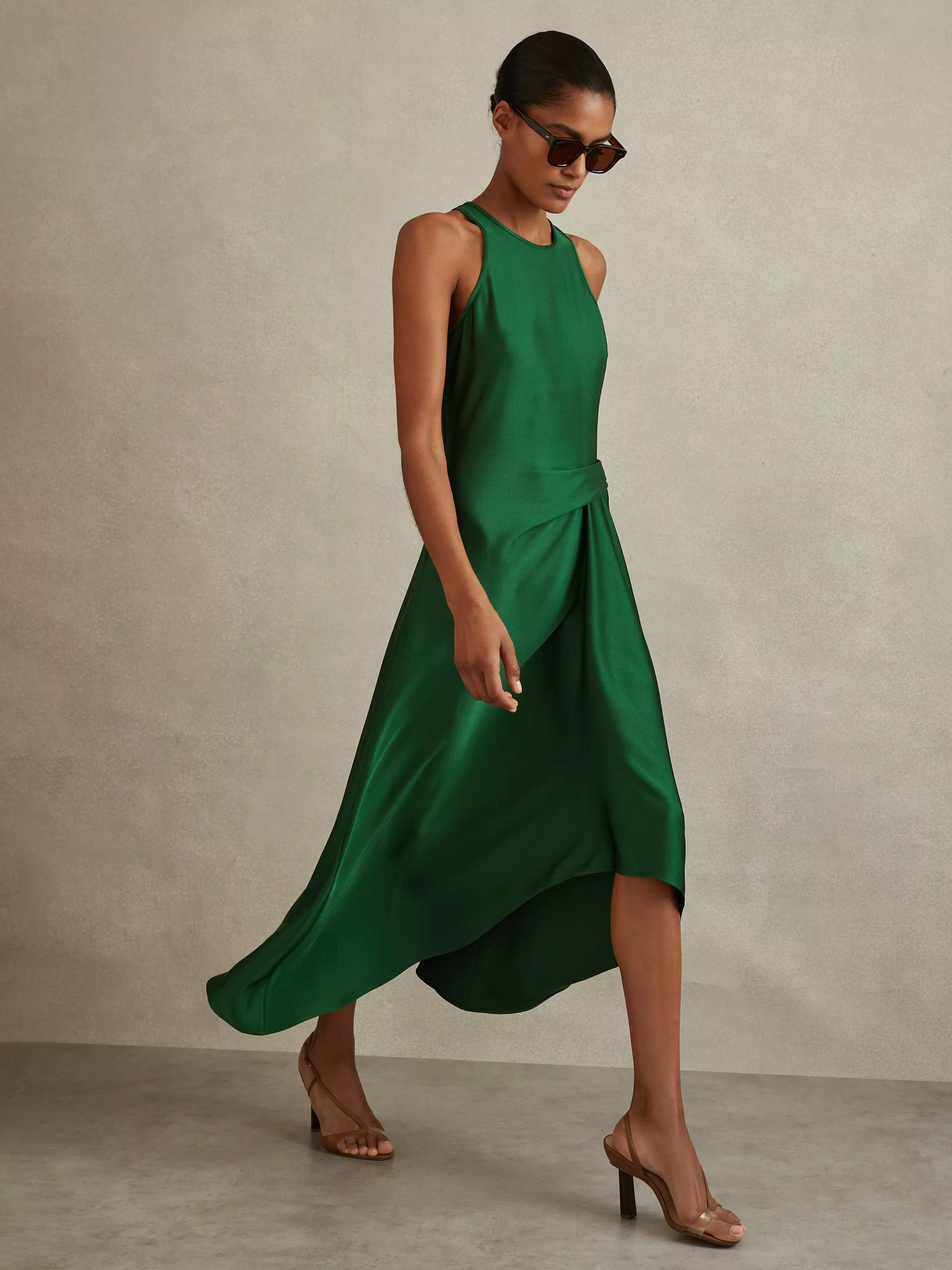 Giving a stylish flare with its one-sided design, this midi dress from Reiss is made using a blend of fabrics. With a simple round neck, this style is bound to become a key addition to your line-up.