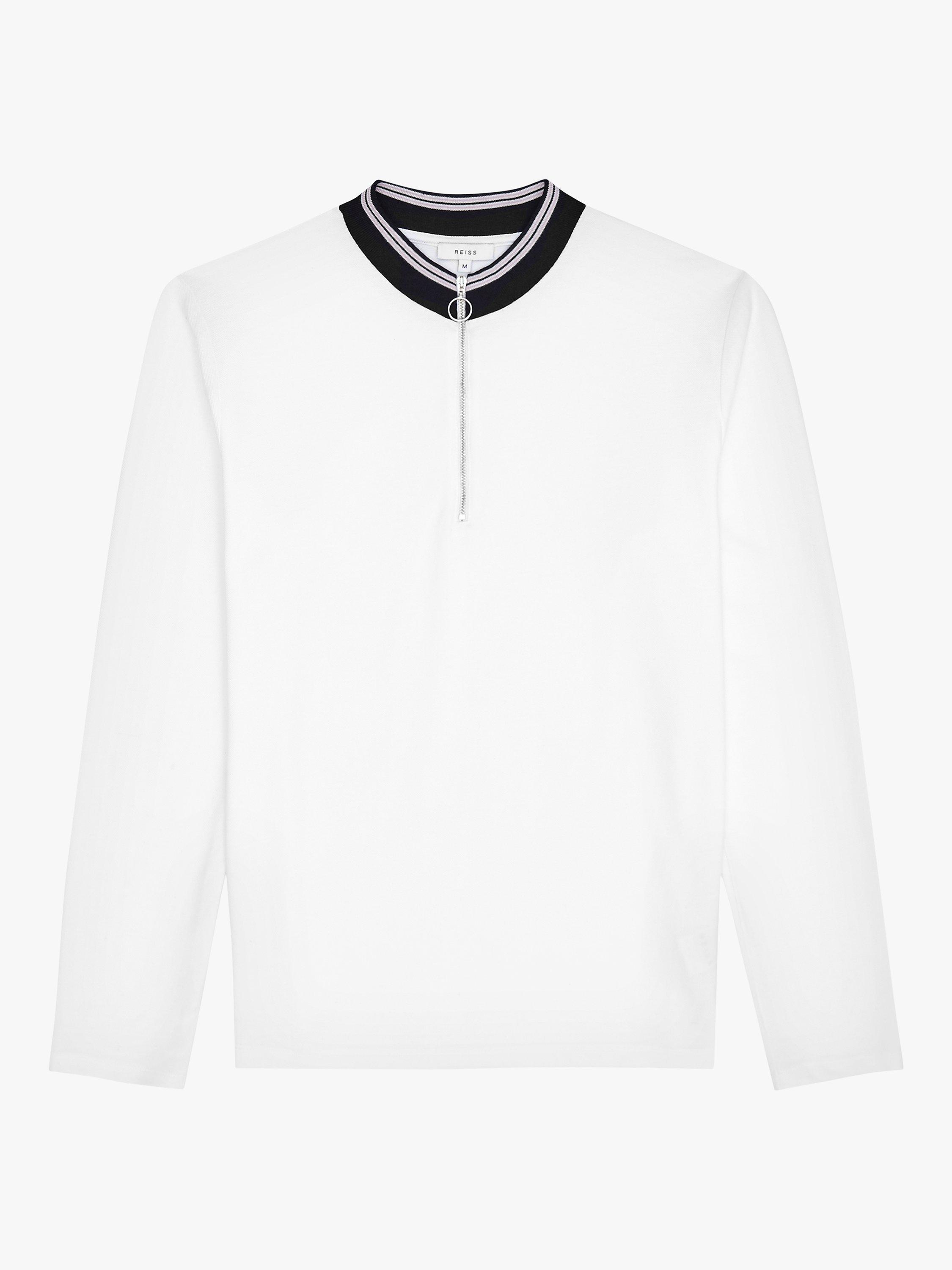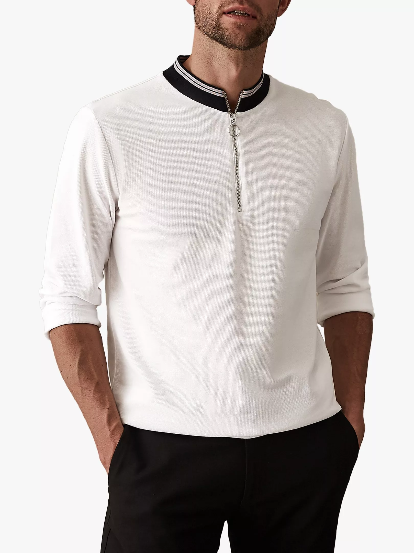 Contemporary and cool, this Reiss Monty top offers a sleek weekend layer. Designed from comfortable cotton, the ringer neck is accompanied by a half zip neckline with circle pull. Pair with anything from off-duty denim to tailored trousers.
