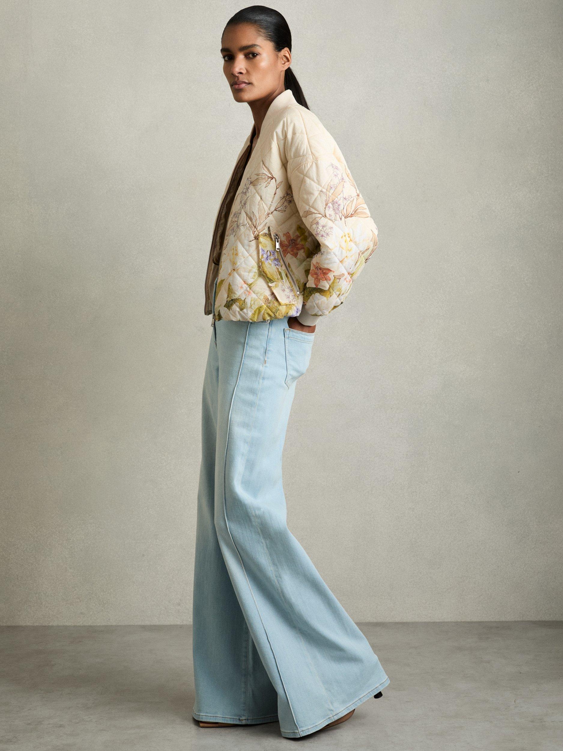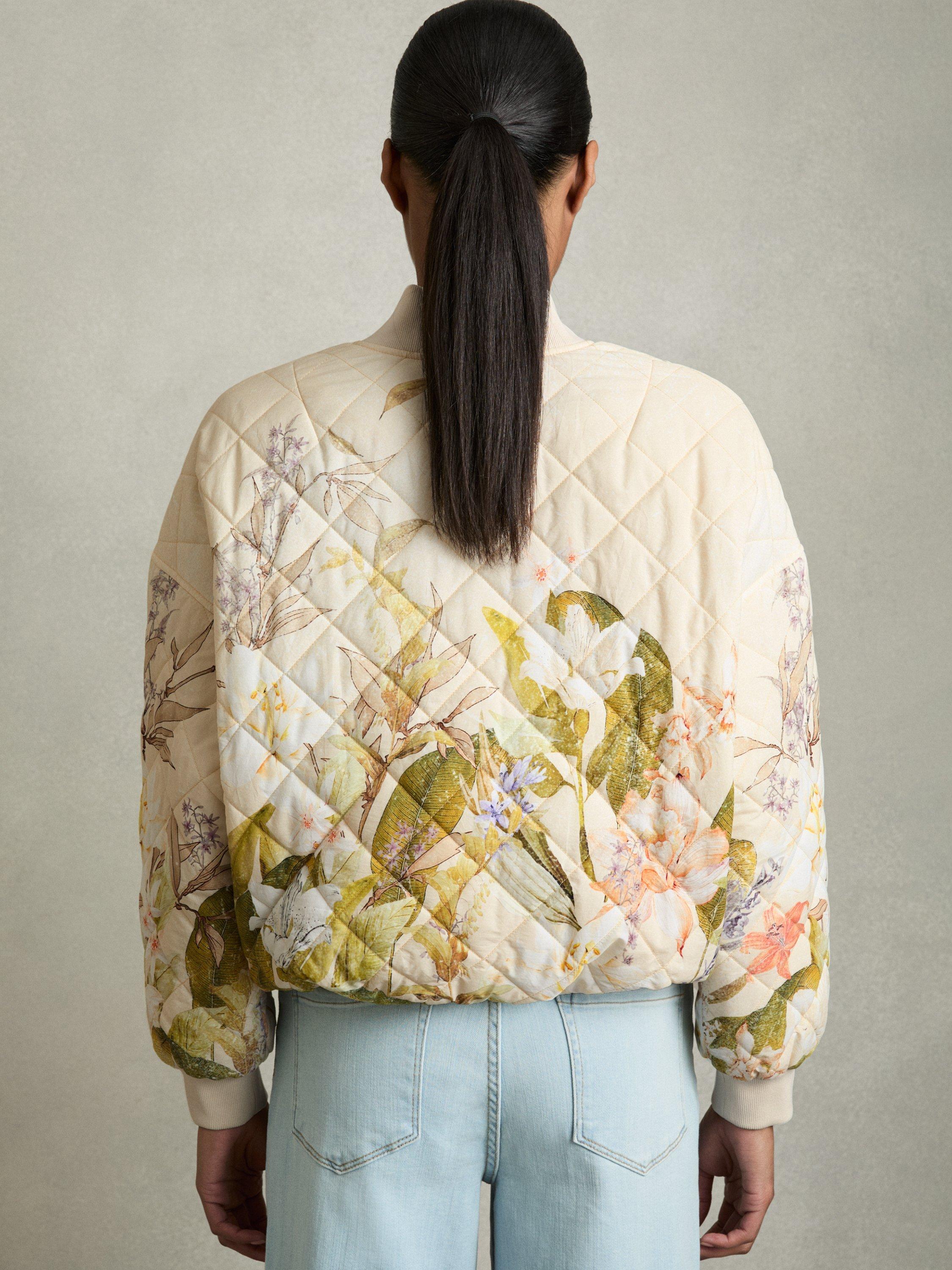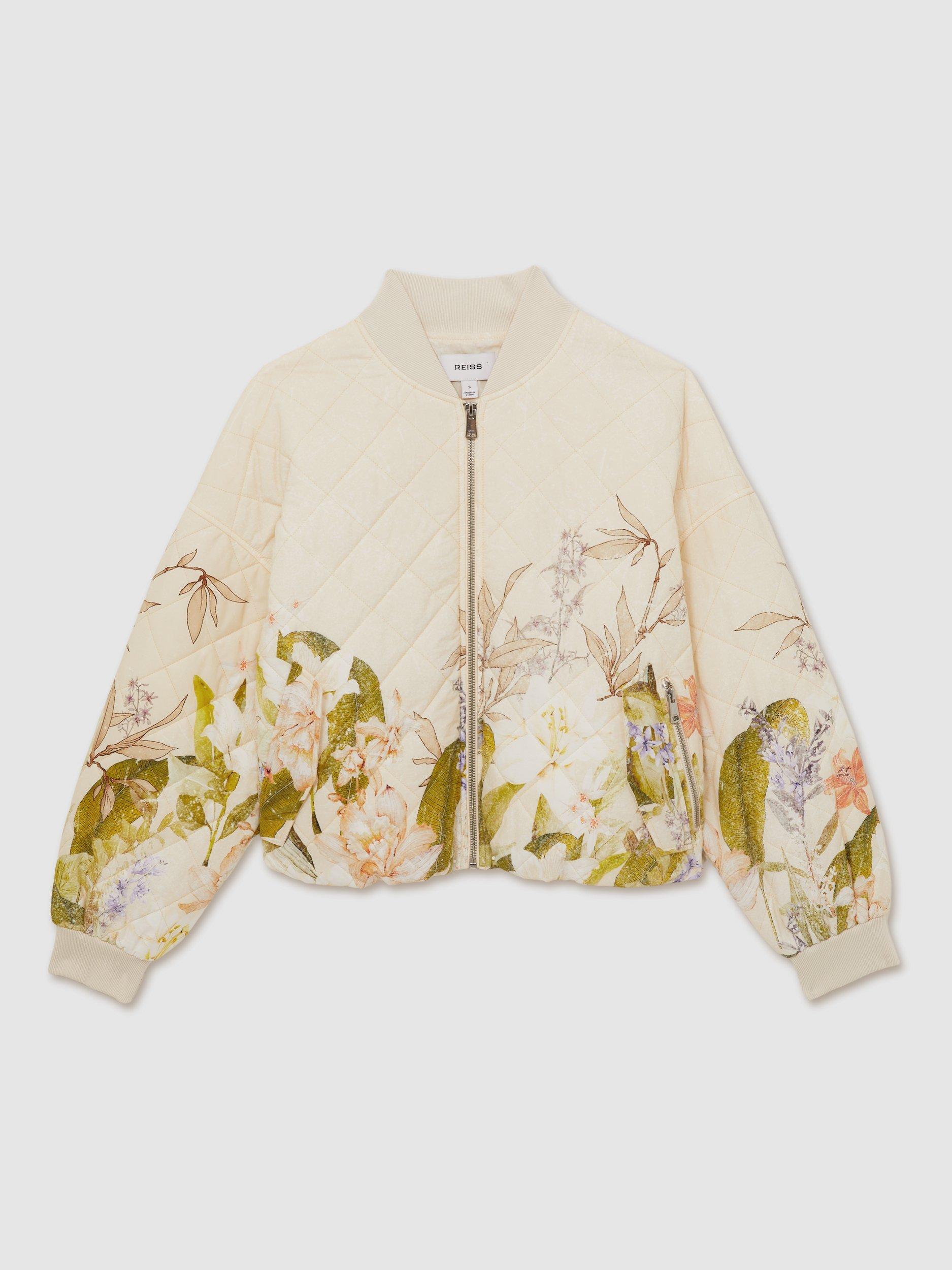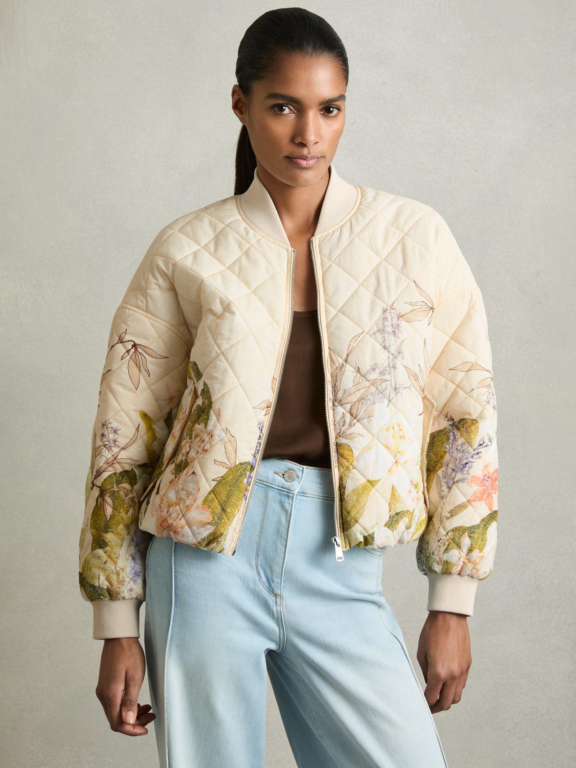 With a graduated floral print, this bomber jacket by Reiss features stretchy ribbed trims and is quilted for warmth.