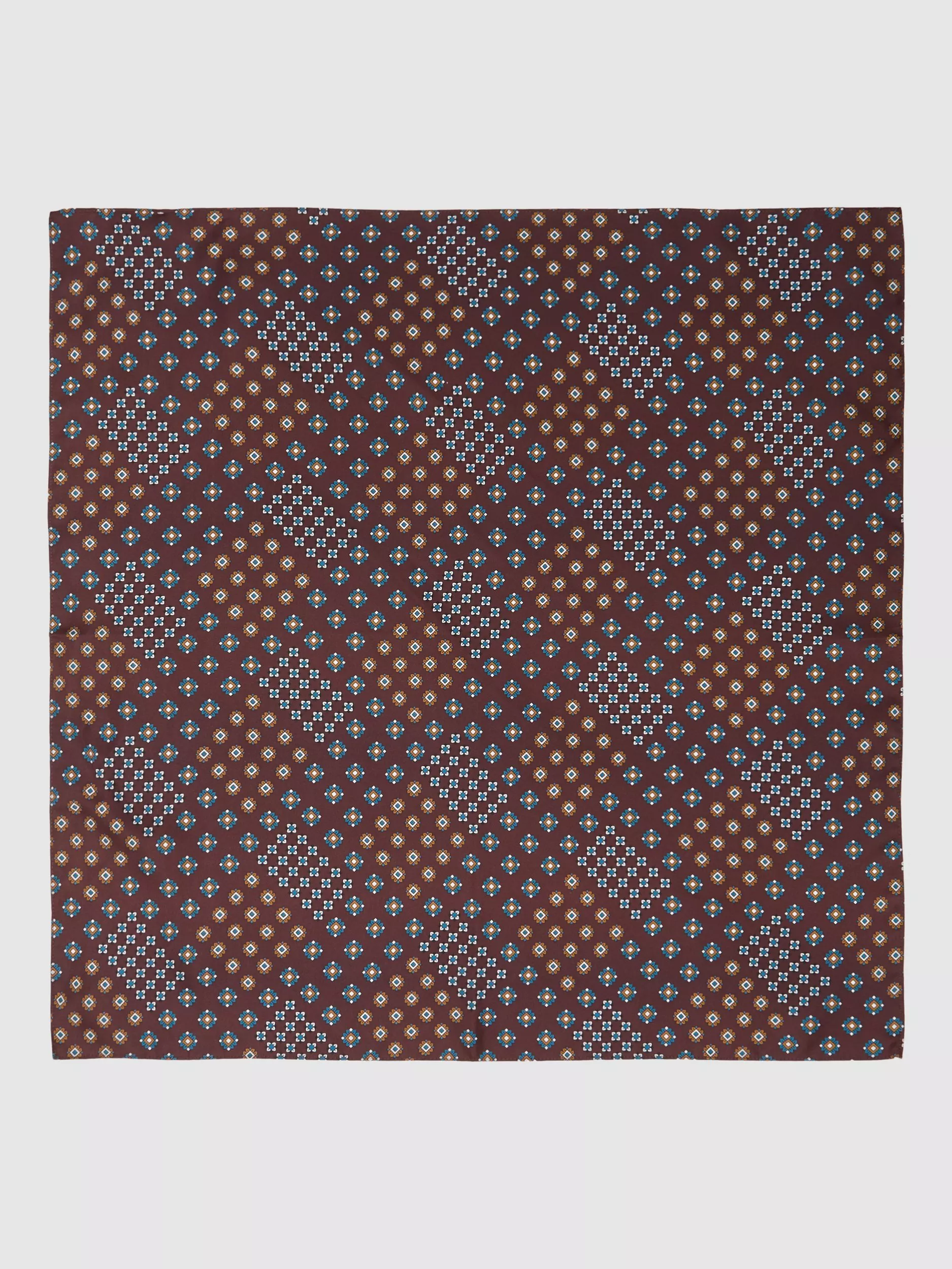 A geometric silk scarf from Reiss adding a clever twist to your favourite looks.