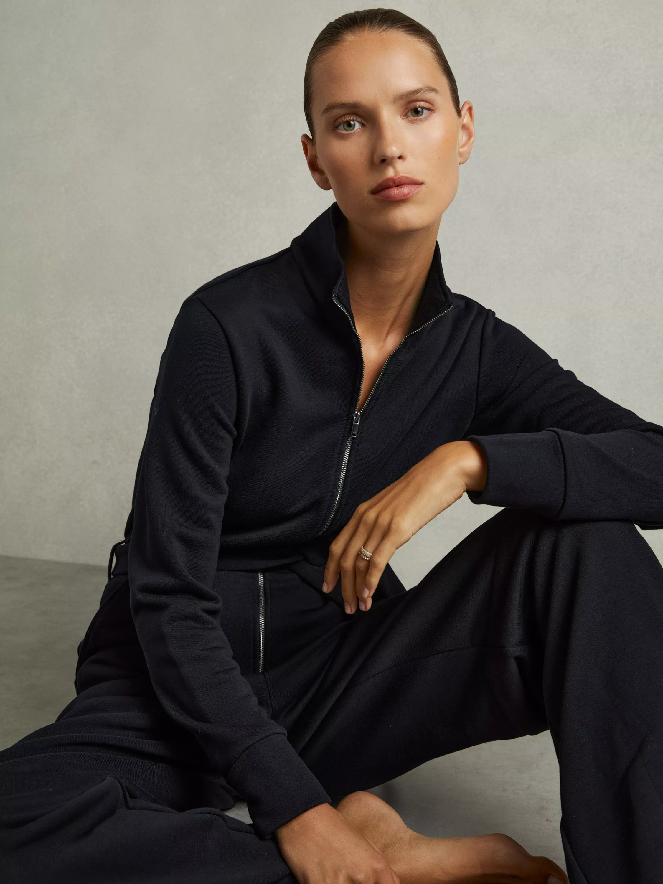 A utility-inspired jumpsuit from Reiss. Made from a soft cotton blend with a zipped bodice, straight legs and a belted waist detail.
