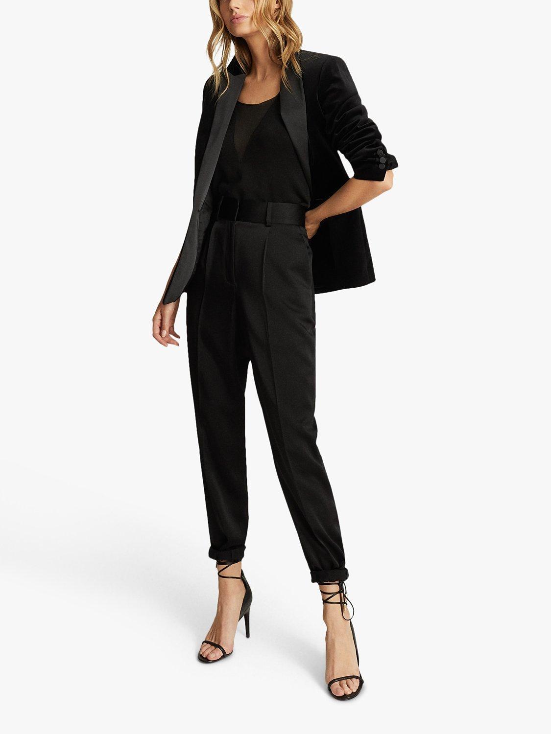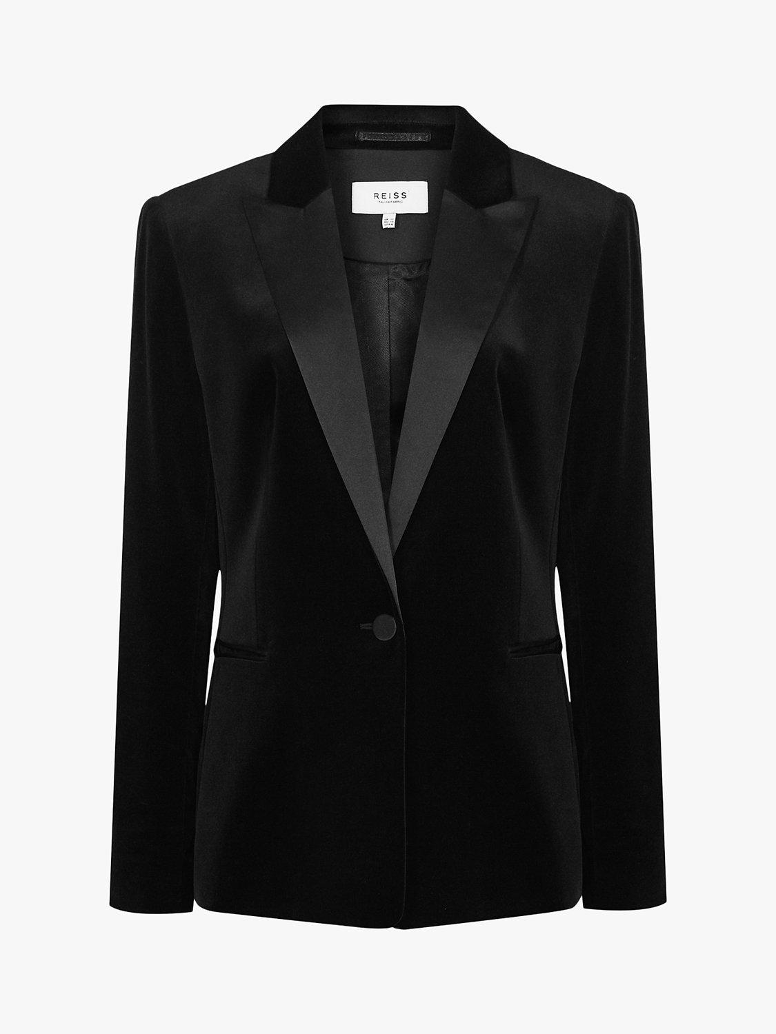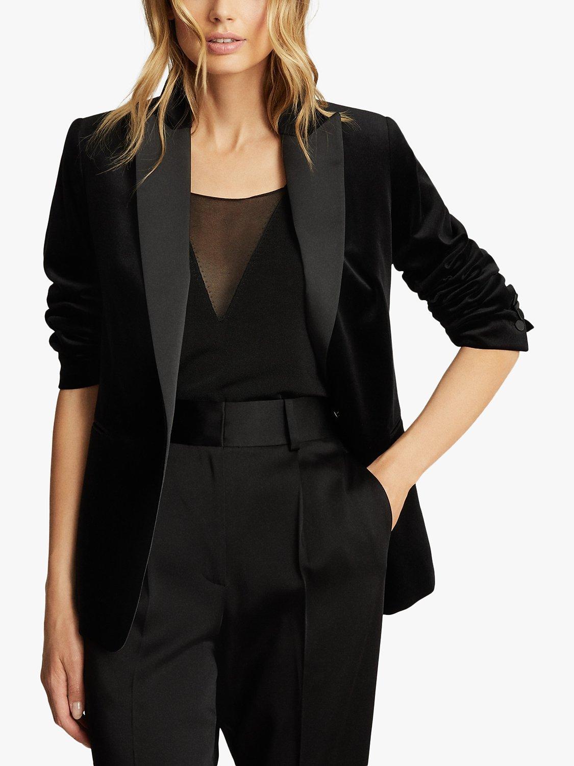 An elegant layering piece for smart events, this blazer by Reiss sits at the hip for versatile coverage.