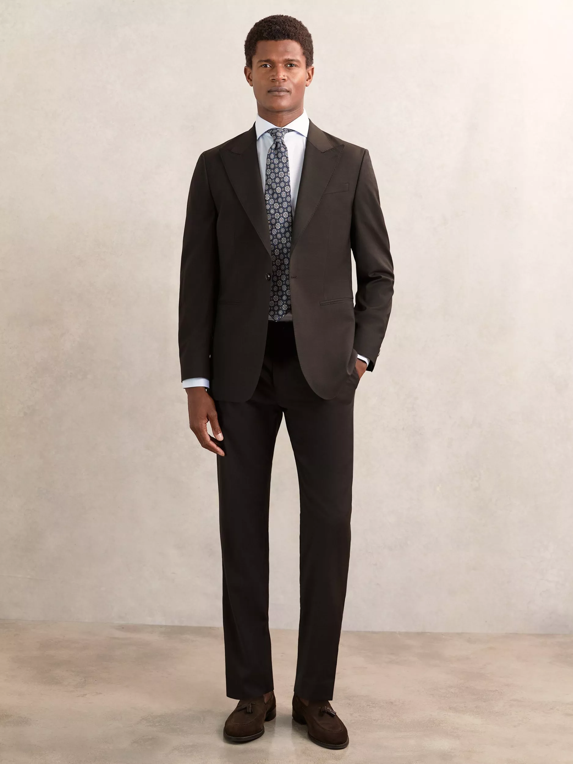 - Menswear Model is 6ft 2” and is wearing a size 38/M/32