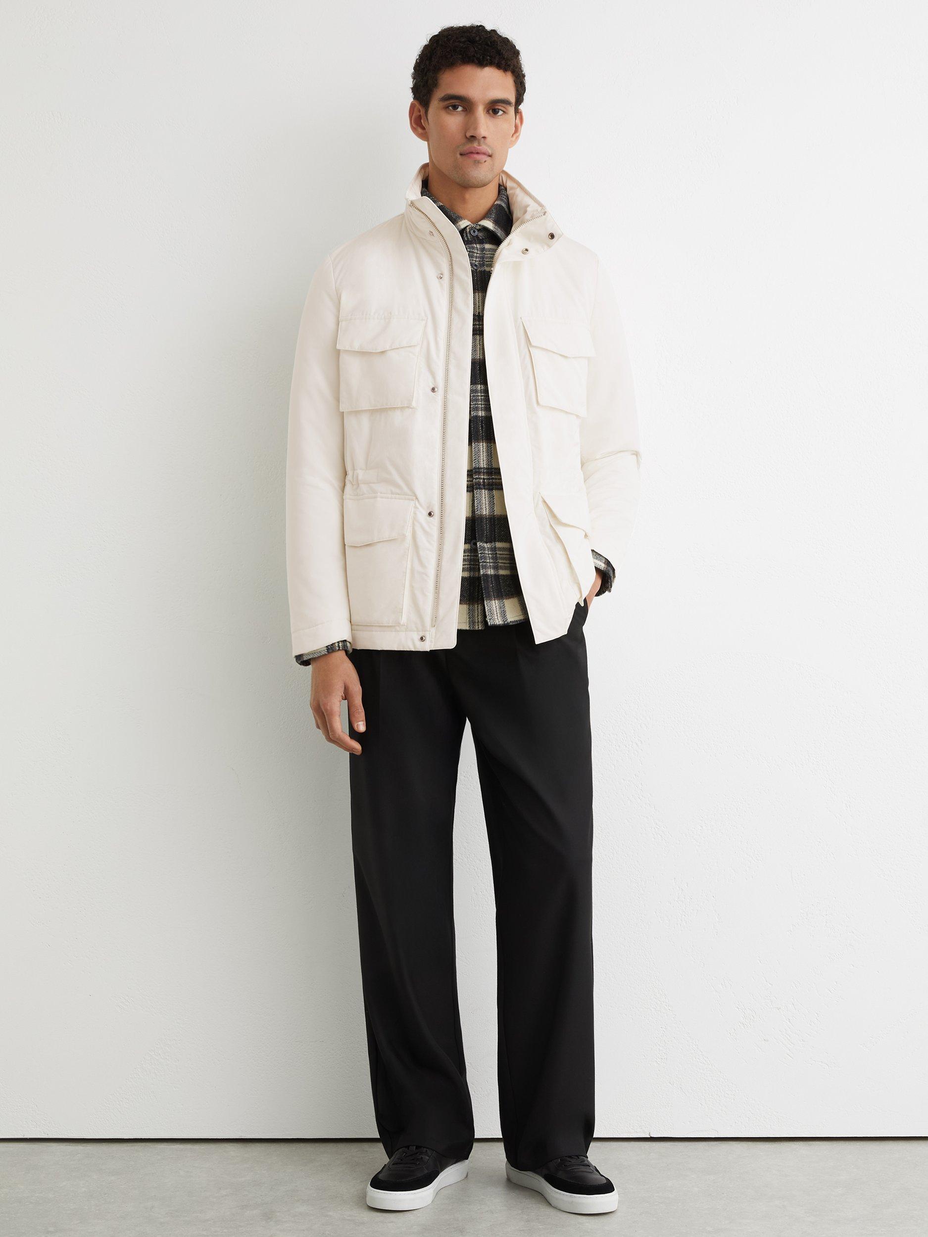 A practical utility coat from Reiss. Clever pockets keep essentials close, while the regular fit ensures comfort. Ideal for layering, its utility-inspired details remain at the forefront.