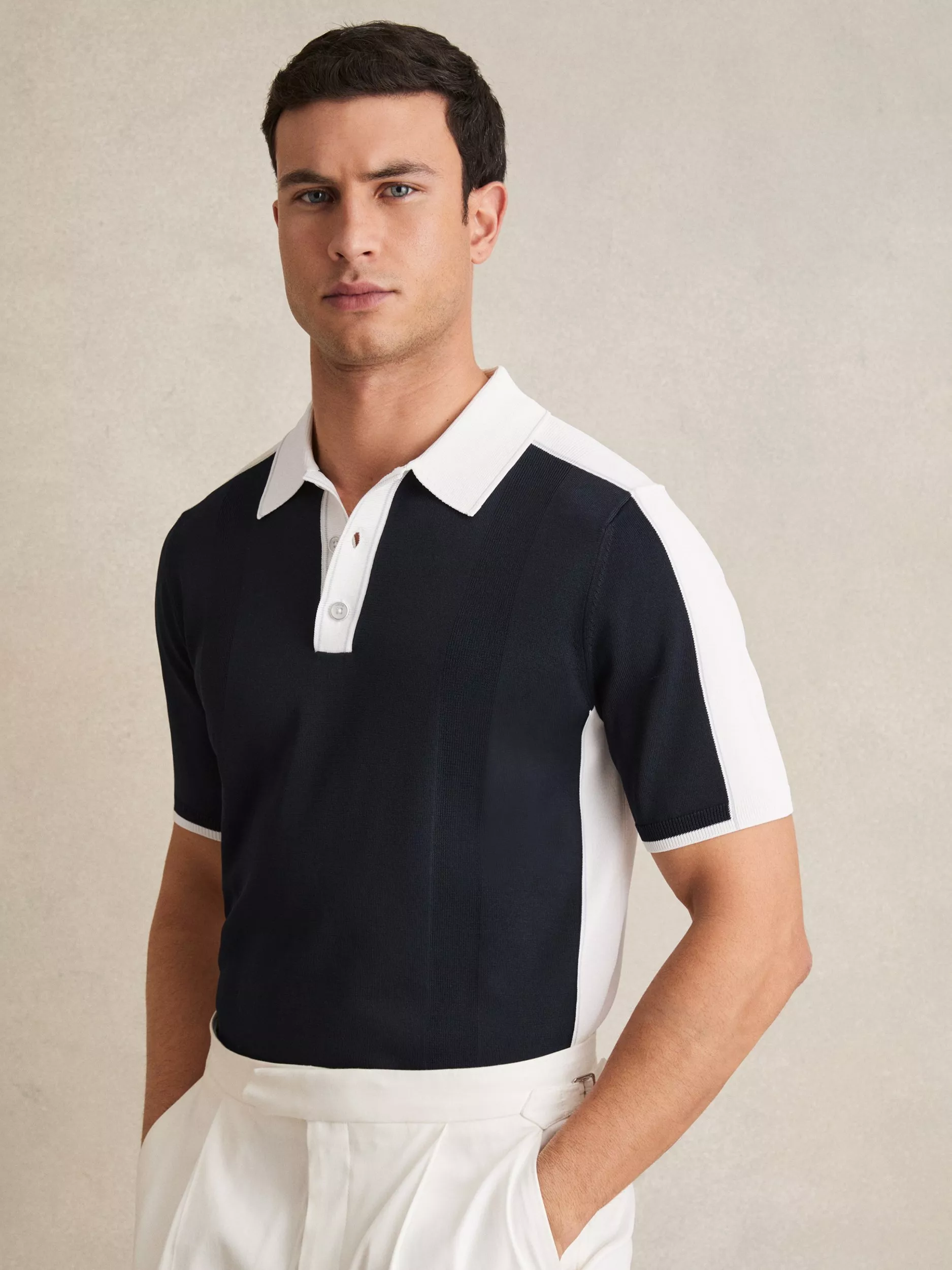 The Pentel polo shirt blends a lightly textured knit with bold colour-blocking, accented by subtle tipping for a sporty, modern feel. Finished with ribbed trims and a classic button placket, it offers a polished take on casual style. Textured knit colour-blocking with tipping polo collar ribbed hem and cuffs front button placket