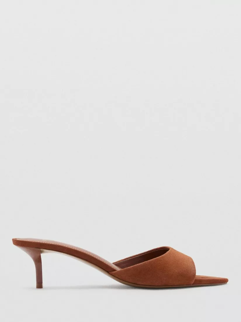 Sophisticated suede heeled sandals with a pointed open toe and easy slip-on design. The mid kitten heel offers comfort for your day, while the streamlined shape suits any casual outing.