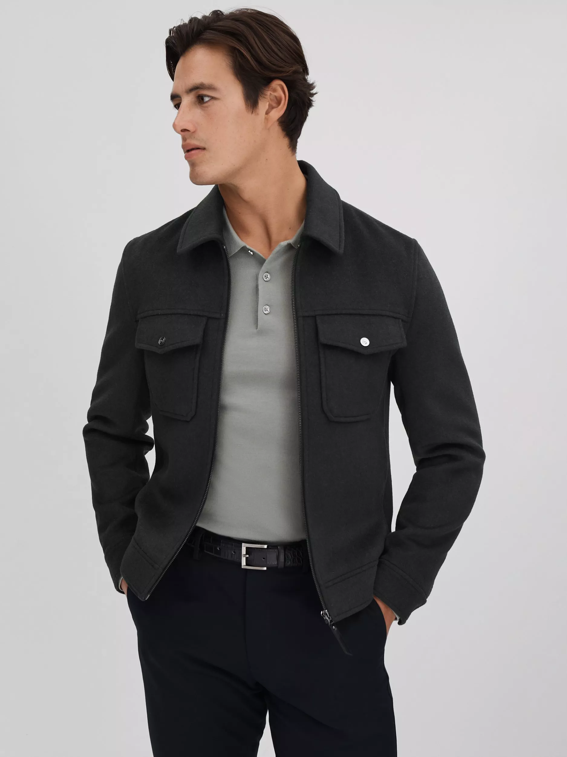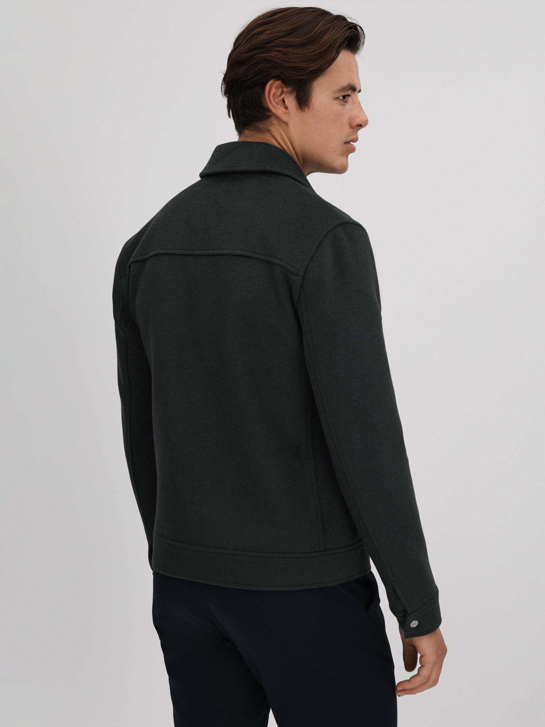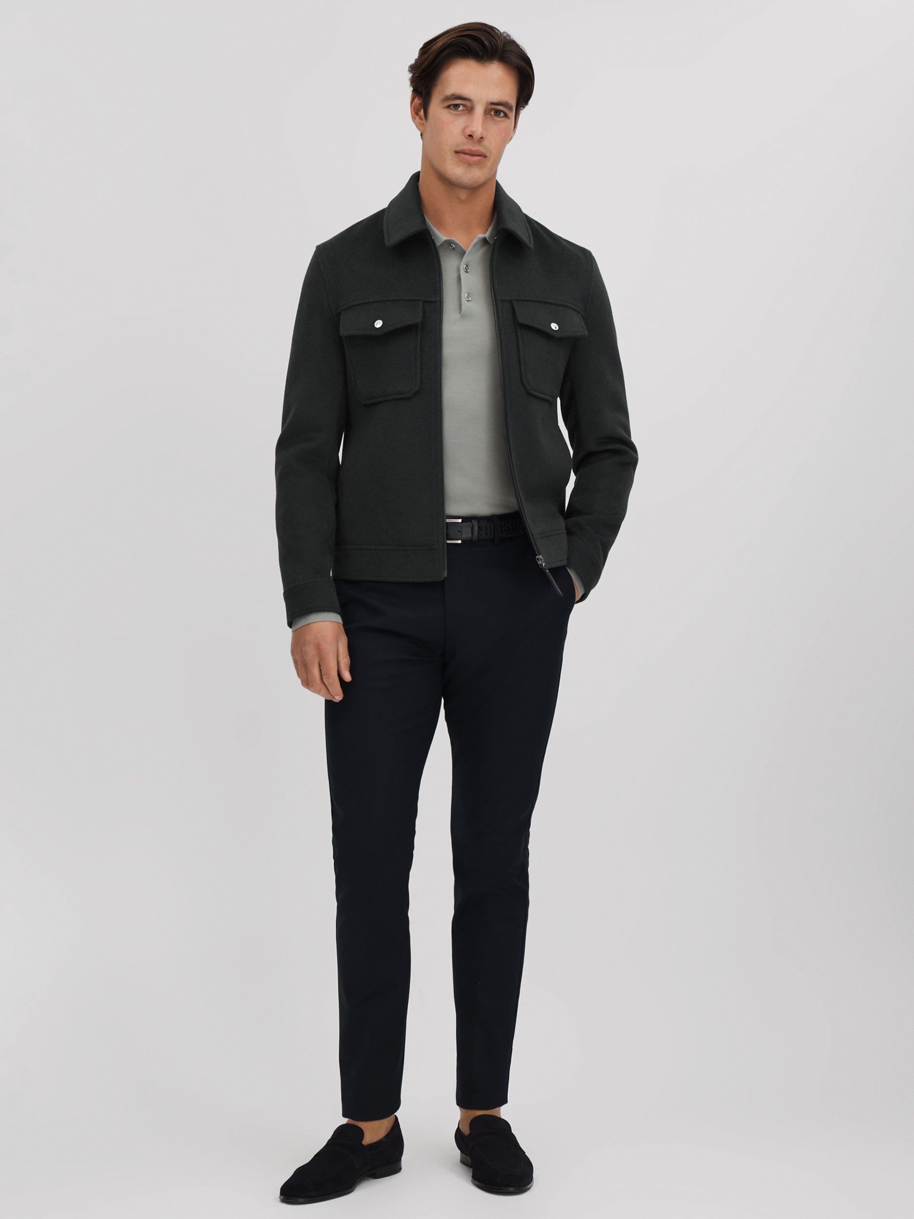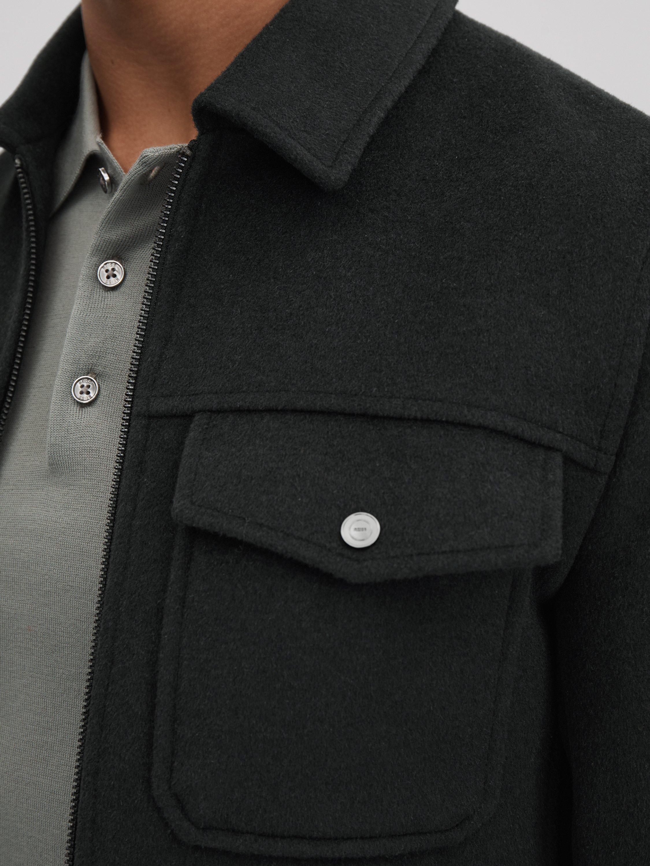 ReissPeridoe Zip Through Wool Blend Jacket, Dark Forest Green