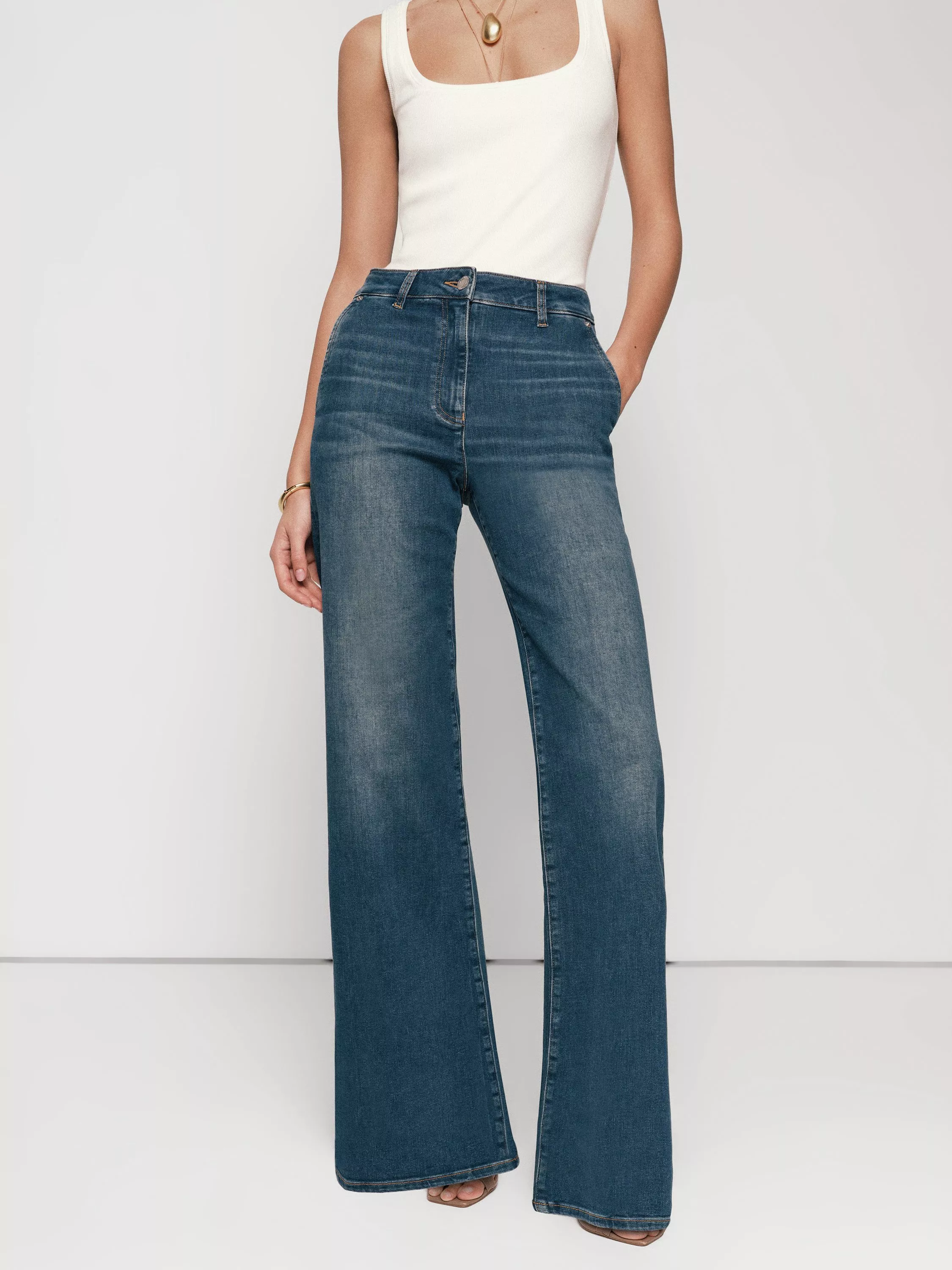 A pair of wide leg jeans, designed to lift your every look. The mid-rise fit moves with you, while the petite cute and classic denim finish ensure comfort and versatility.