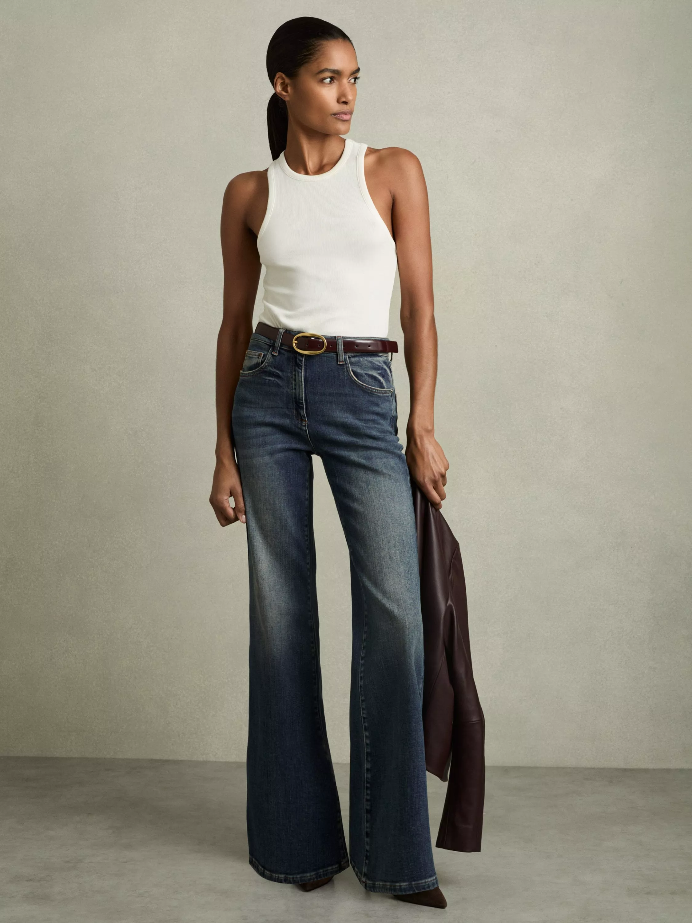 Designed with plenty of flair, these petite mid rise jeans from Reiss are made from classic denim and finish at a regular length.