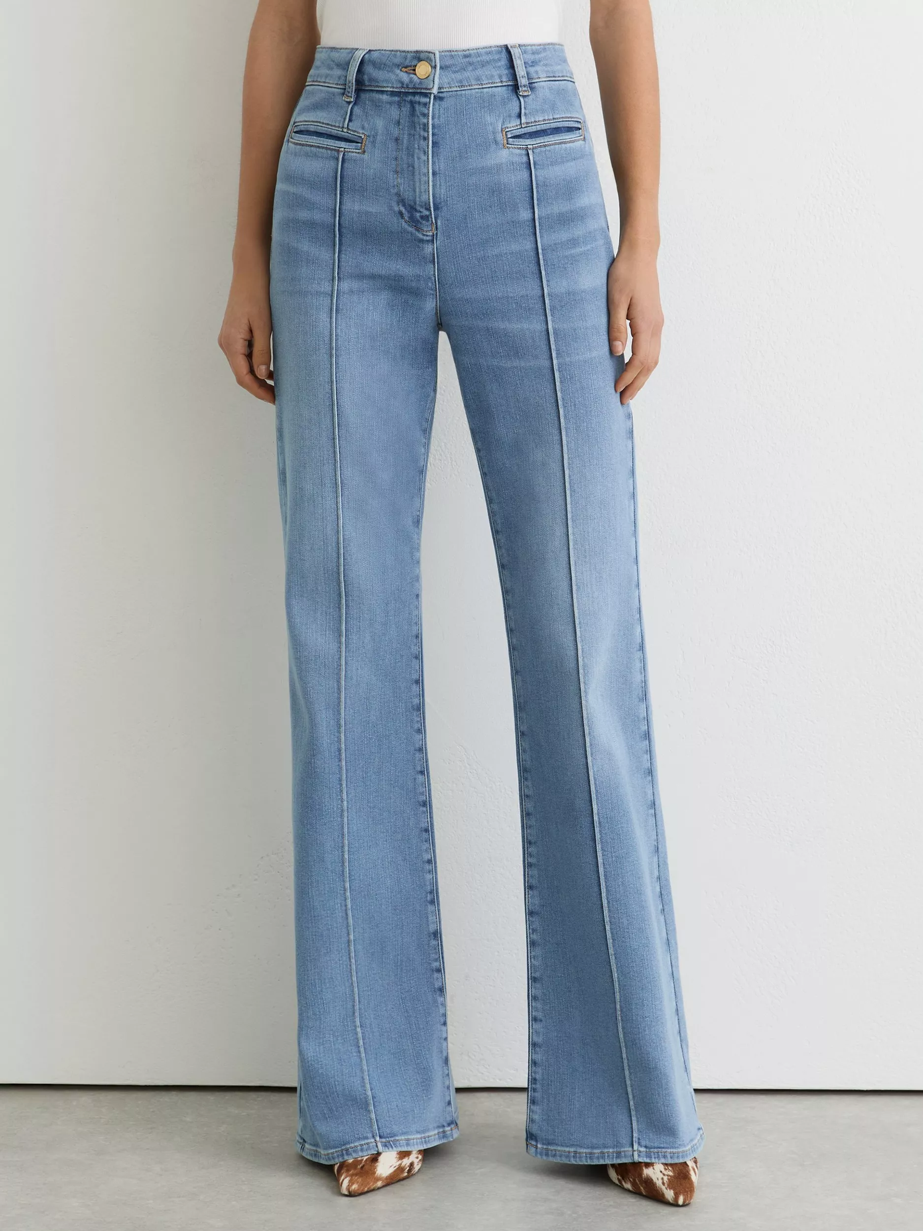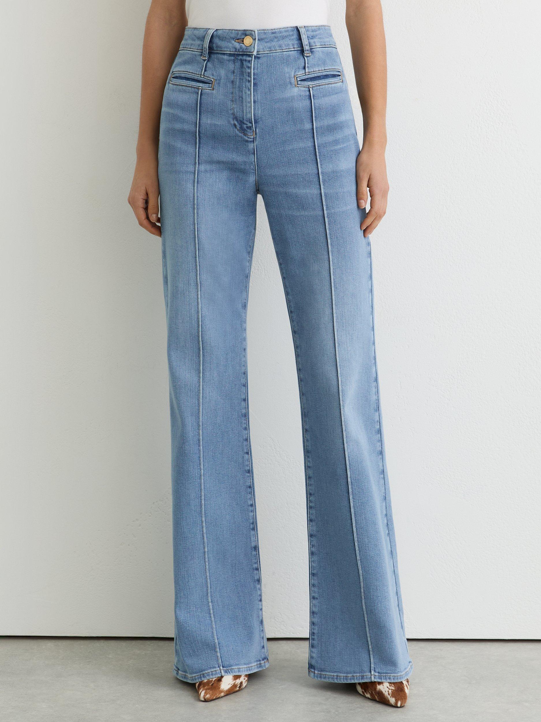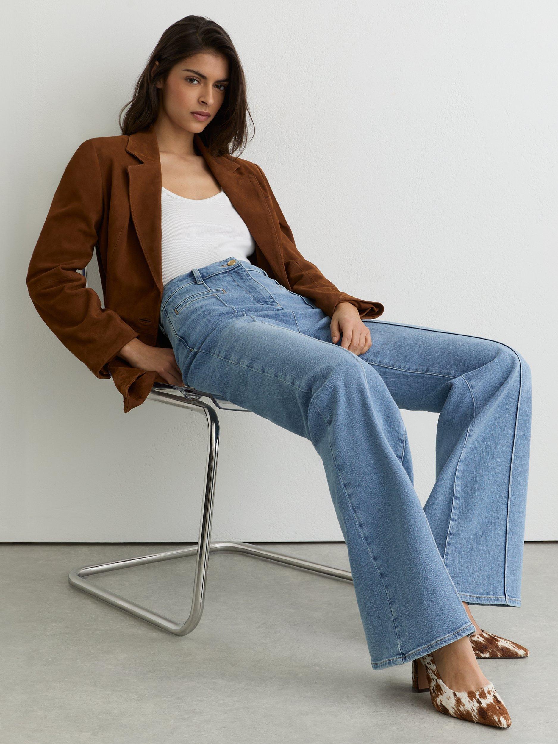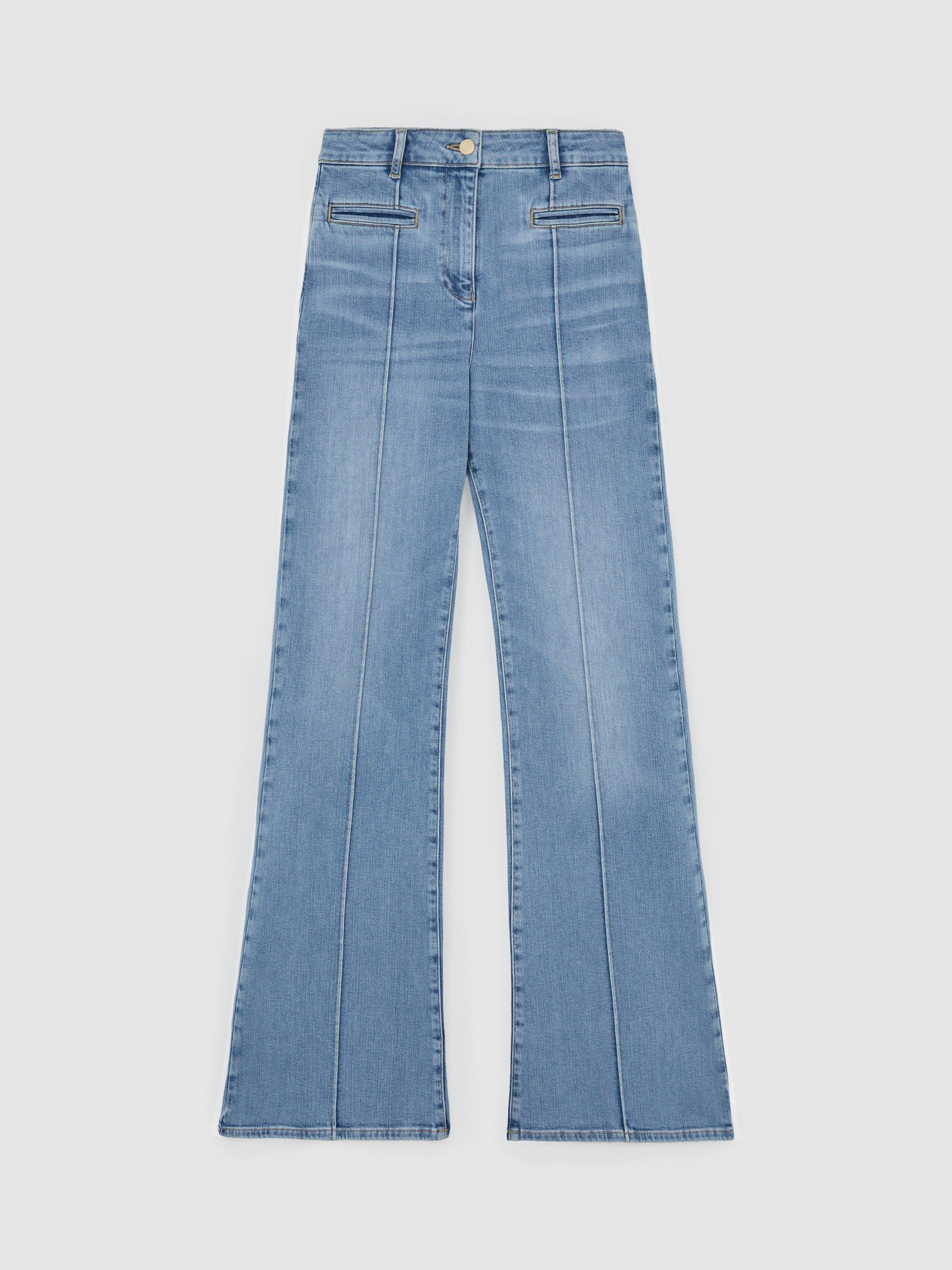 A nostalgic throwback pair of flared jeans from Reiss, cut to petite proportions. Made from a cotton blend with a comfortable mid rise and a button and zip fastening, they fall to a regular length.