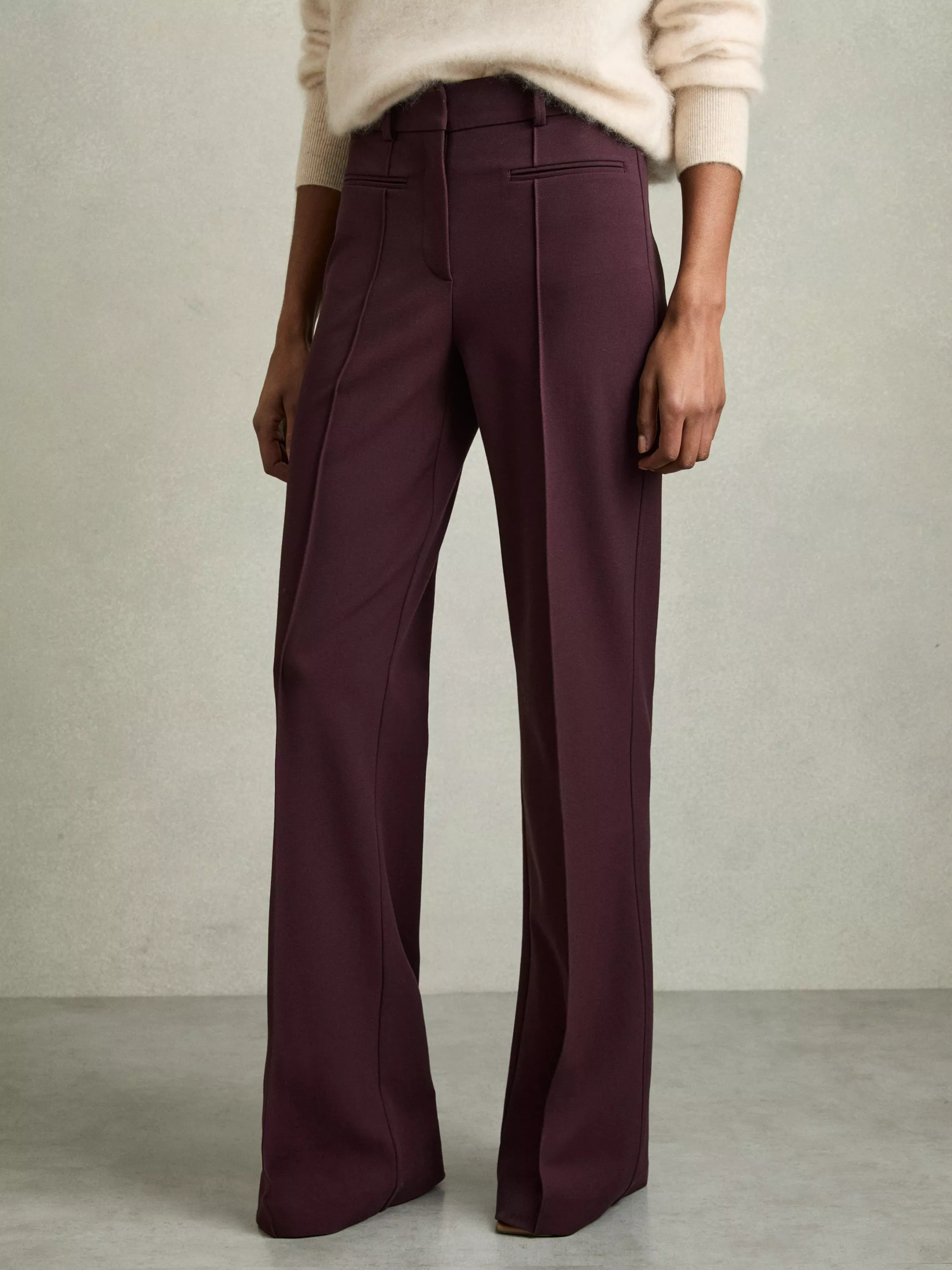 Perfectly tailored to a streamlined brief, this pair of petite trousers by Reiss sit naturally on the hips and come in a flared cut.