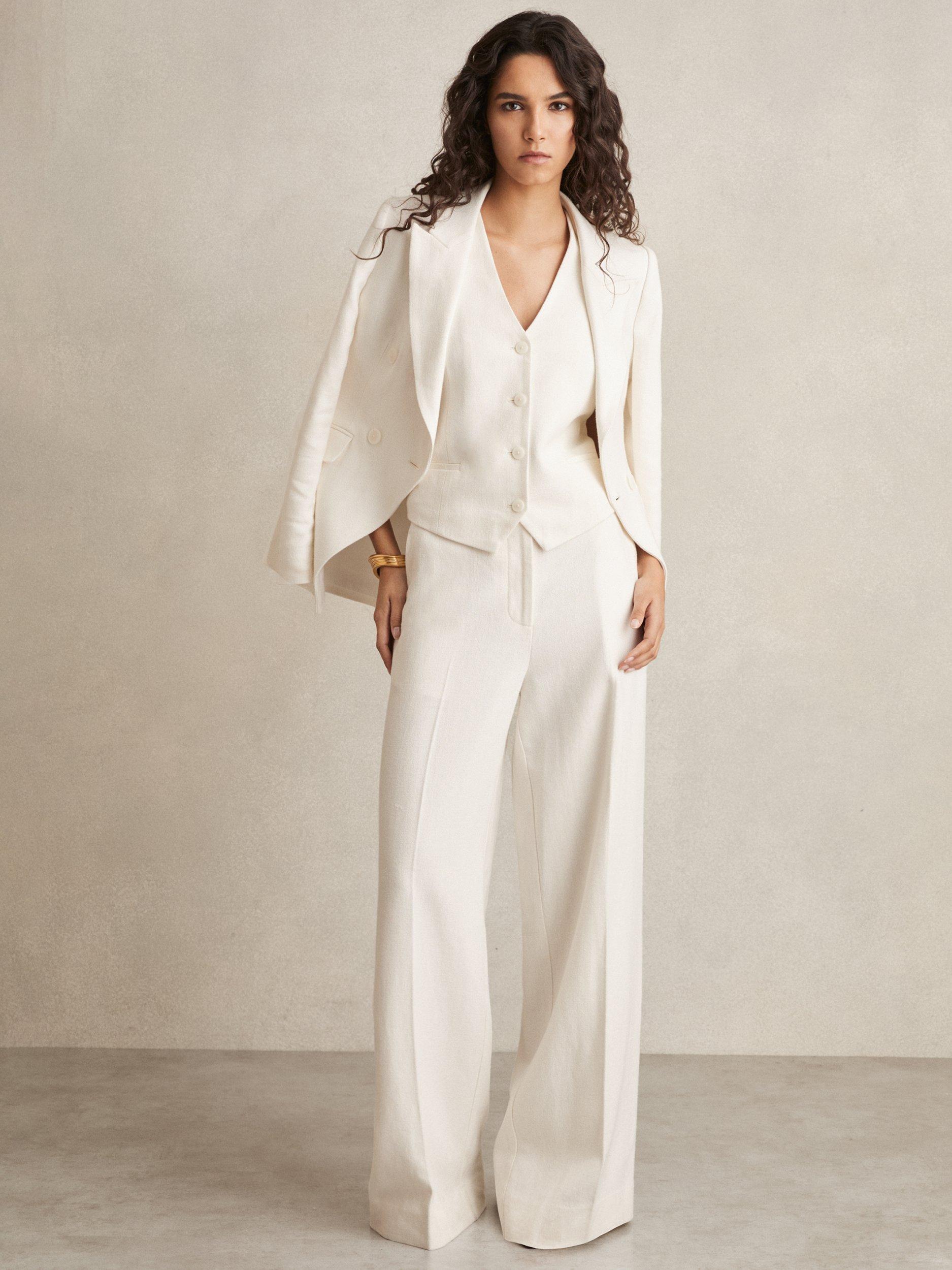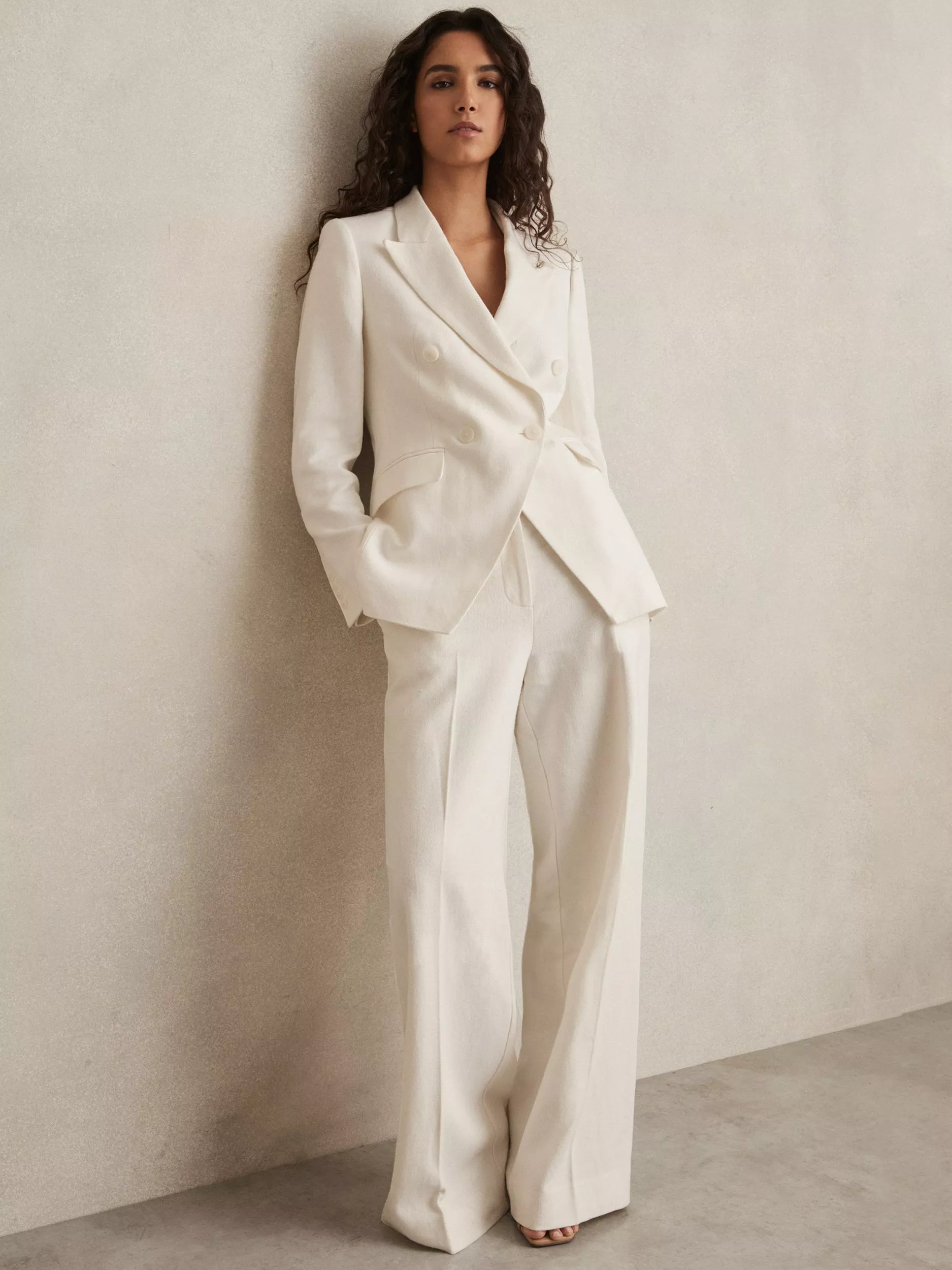 Neatly tailored to a double-breasted silhouette for a sharp finish, this petite blazer from Reiss makes for lightweight wear thanks to its blended linen fabrication.
