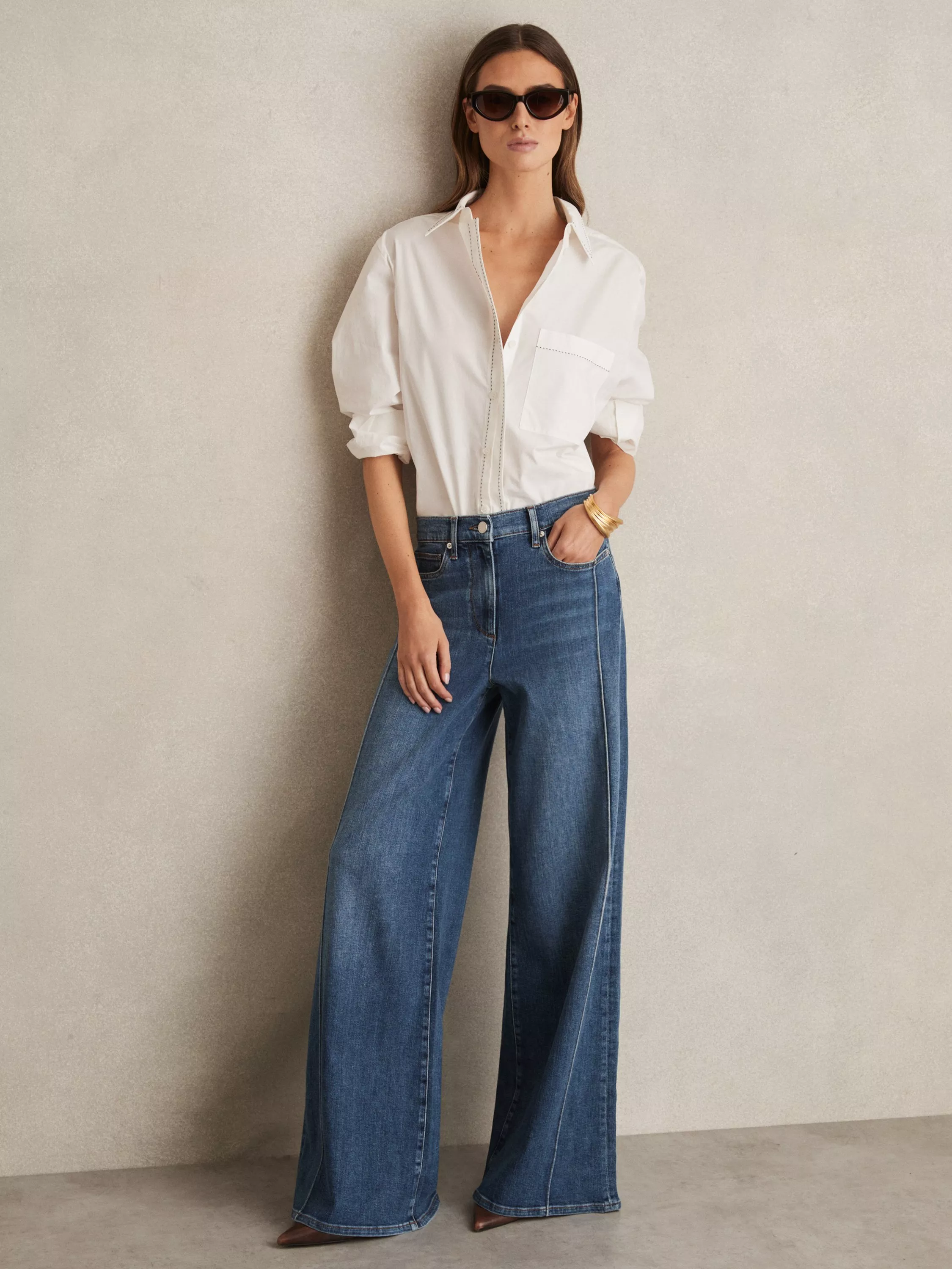 Cut to this season's much-loved wide leg, these mid rise jeans from Reiss are made from a cotton blend for breathable wear and finish at a regular length.