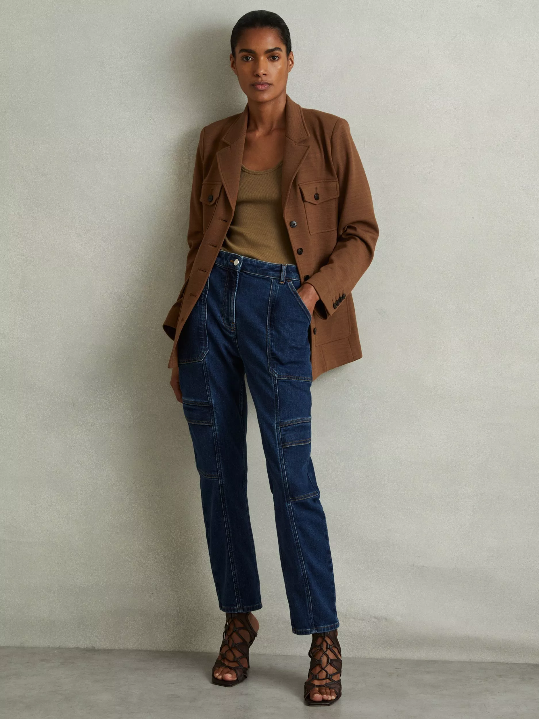 Shirt + Jacket = Shacket. An easy transitional piece, this military-inspired style from Reiss falls to a regular length and features plenty of patch pockets, a collar neck and buttons.