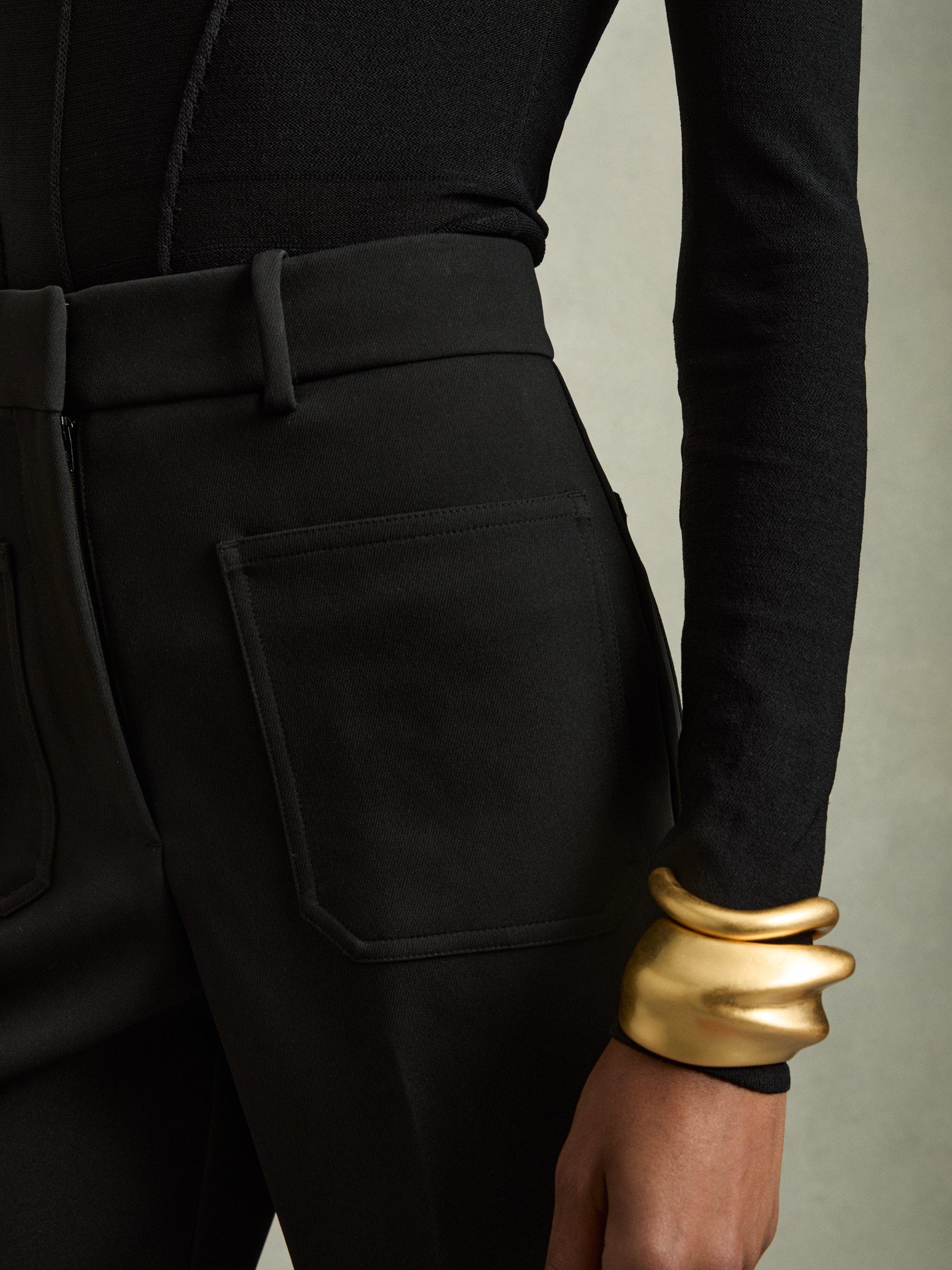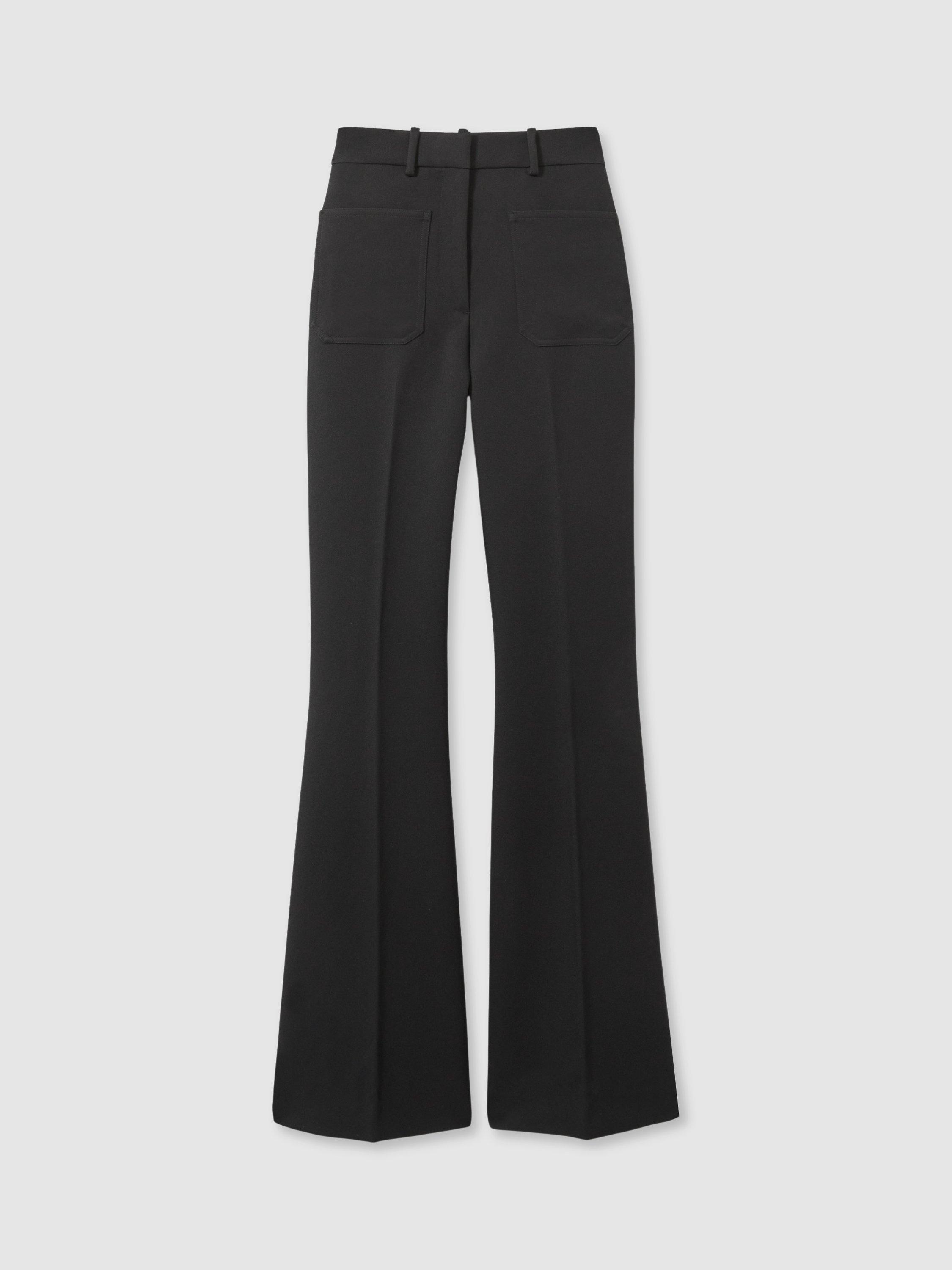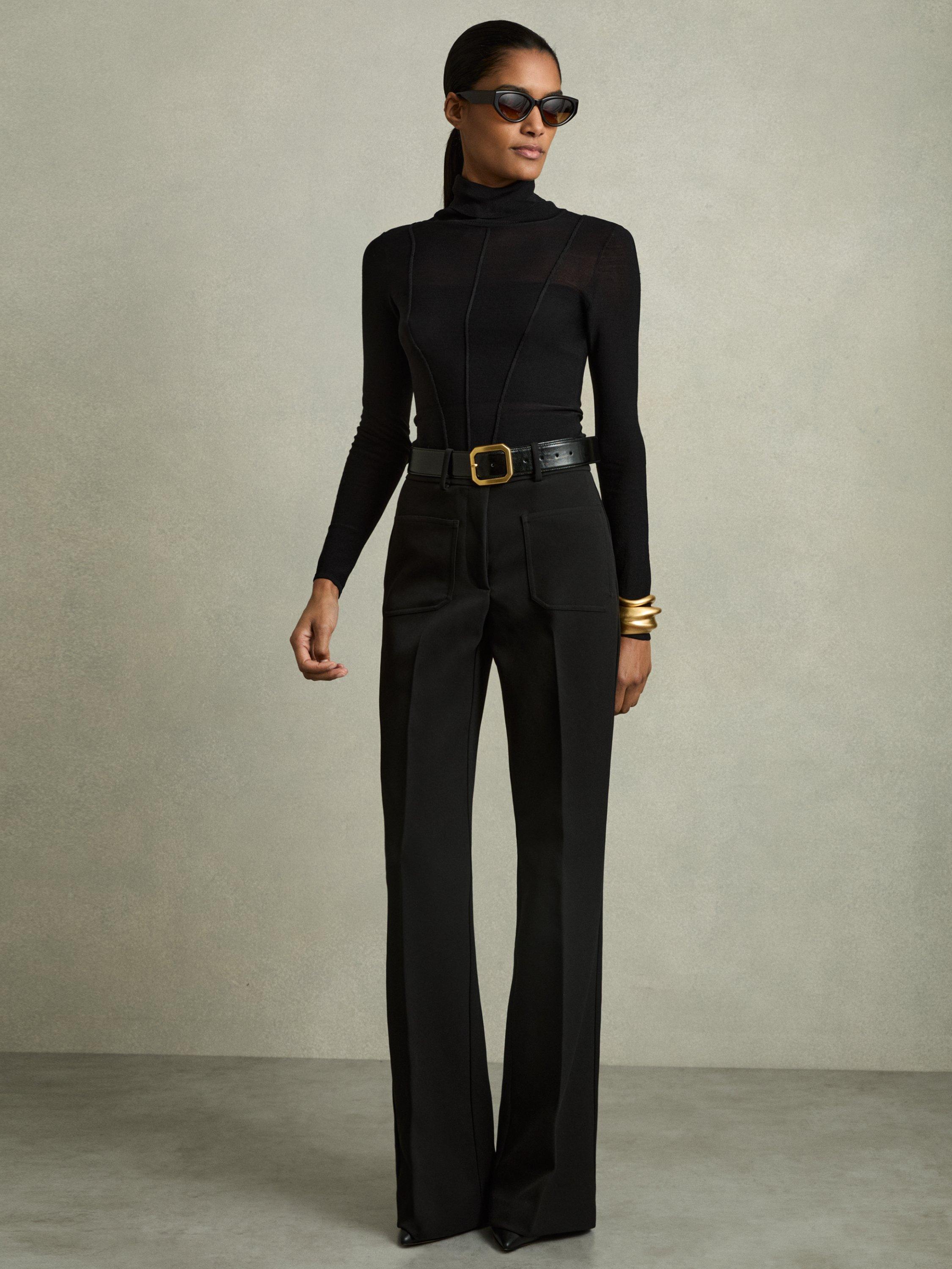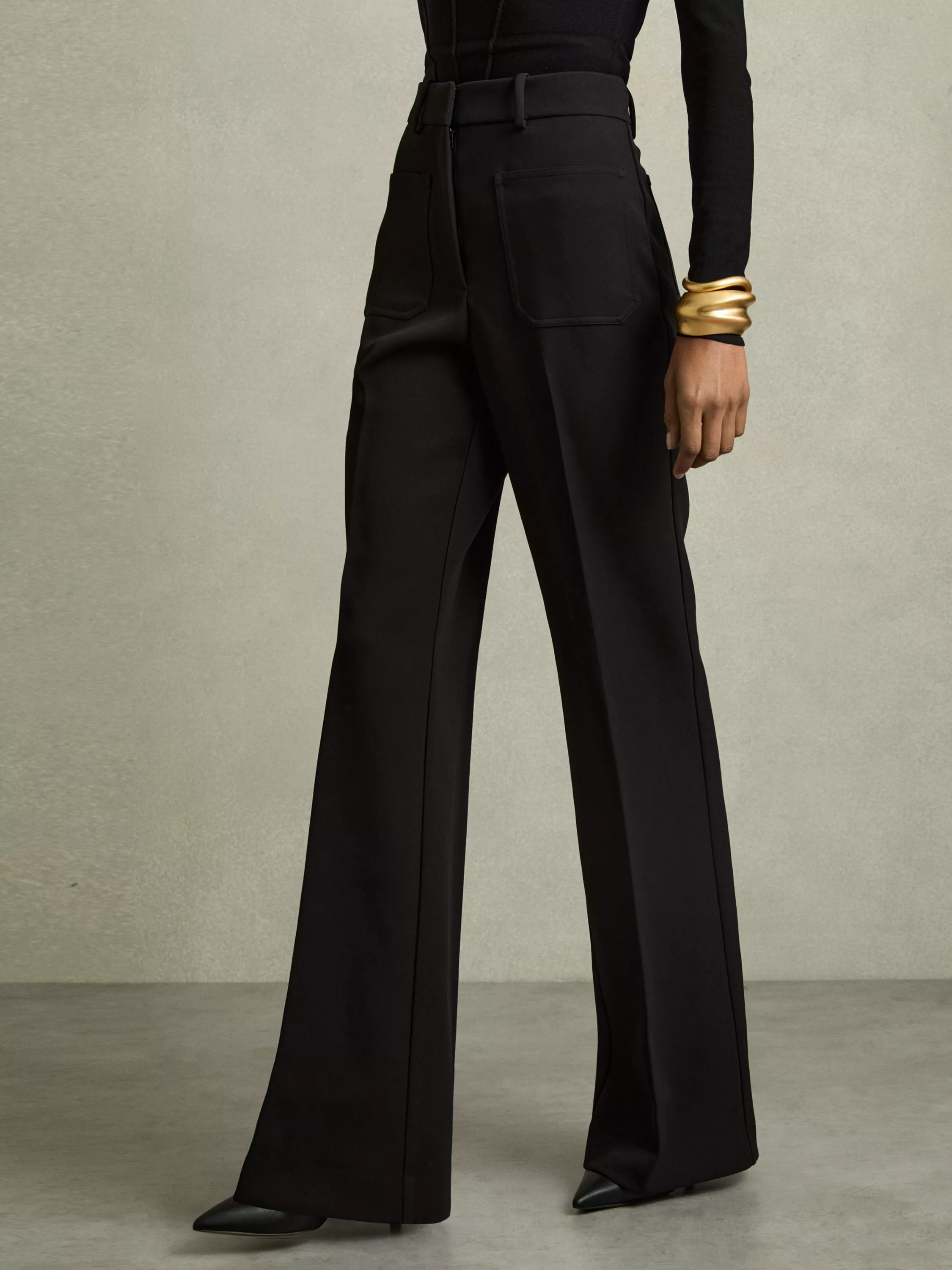 Sleek flared trousers by Reiss. They sit mid rise with a zip fly and a regular length.