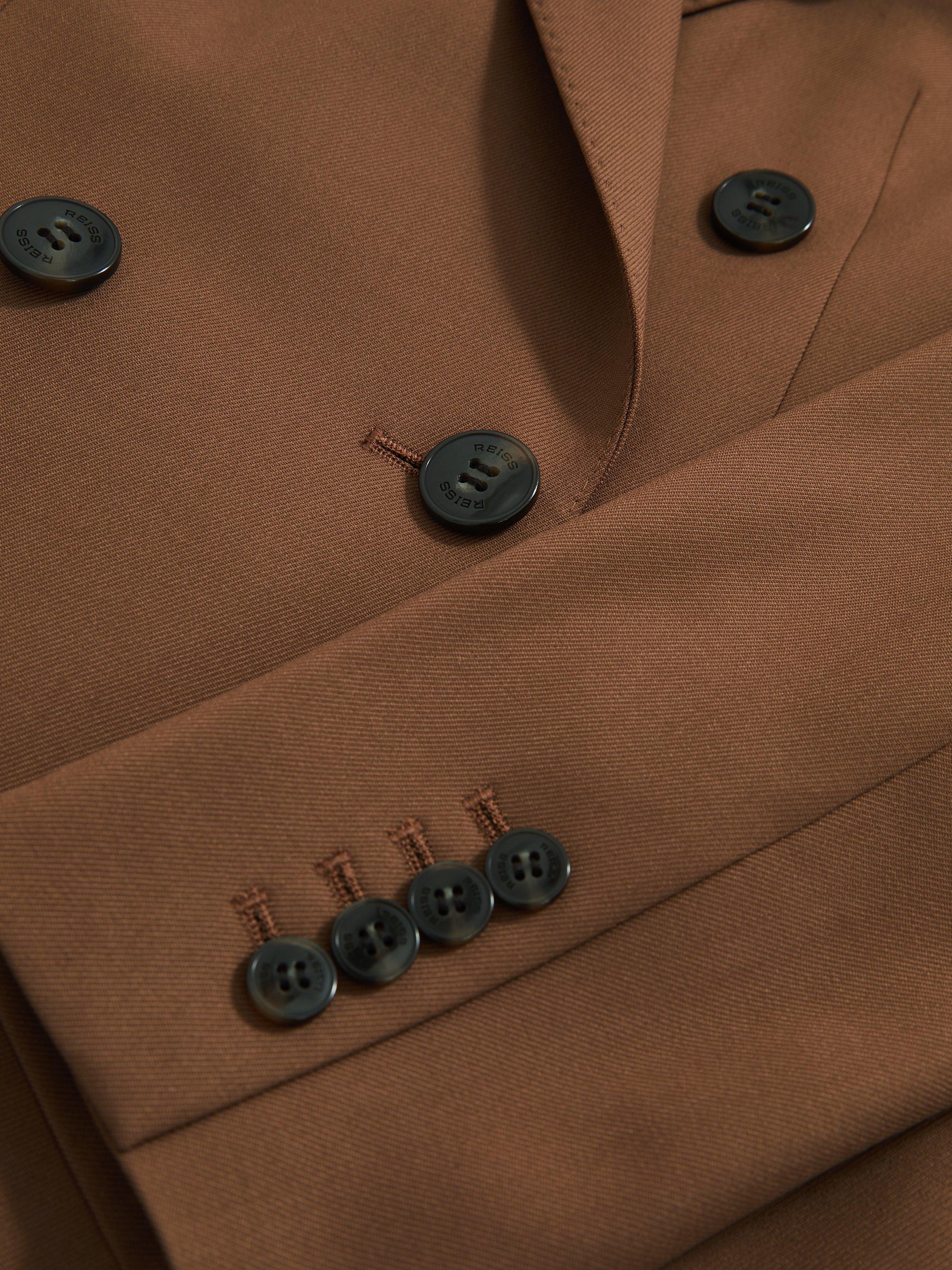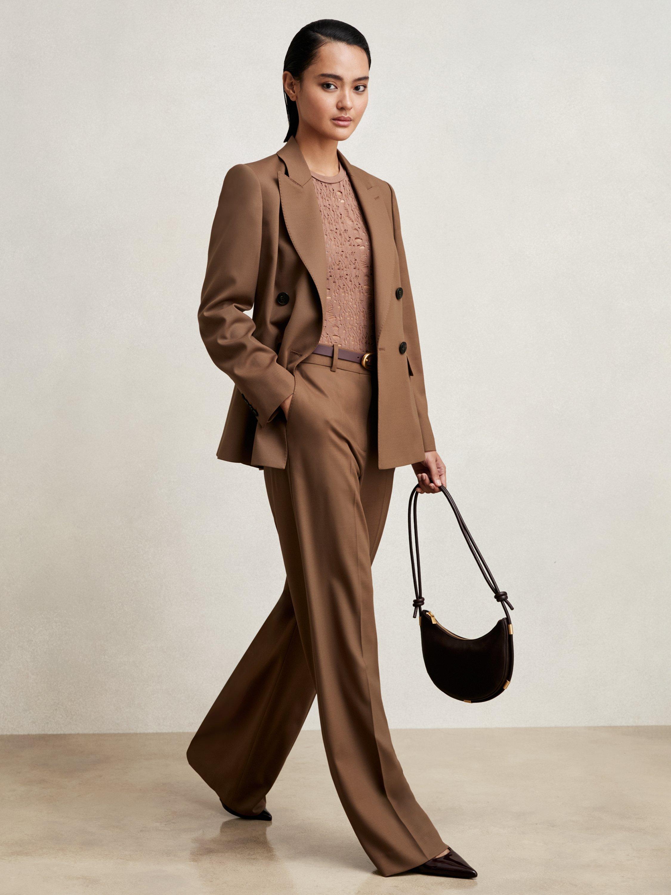The double-breasted blazer keeps you sharp and comfortable from meetings to after-work plans. Tailored for a petite fit, it moves with you, offering an effortless edge to your workwear rotation while keeping things smart and practical.