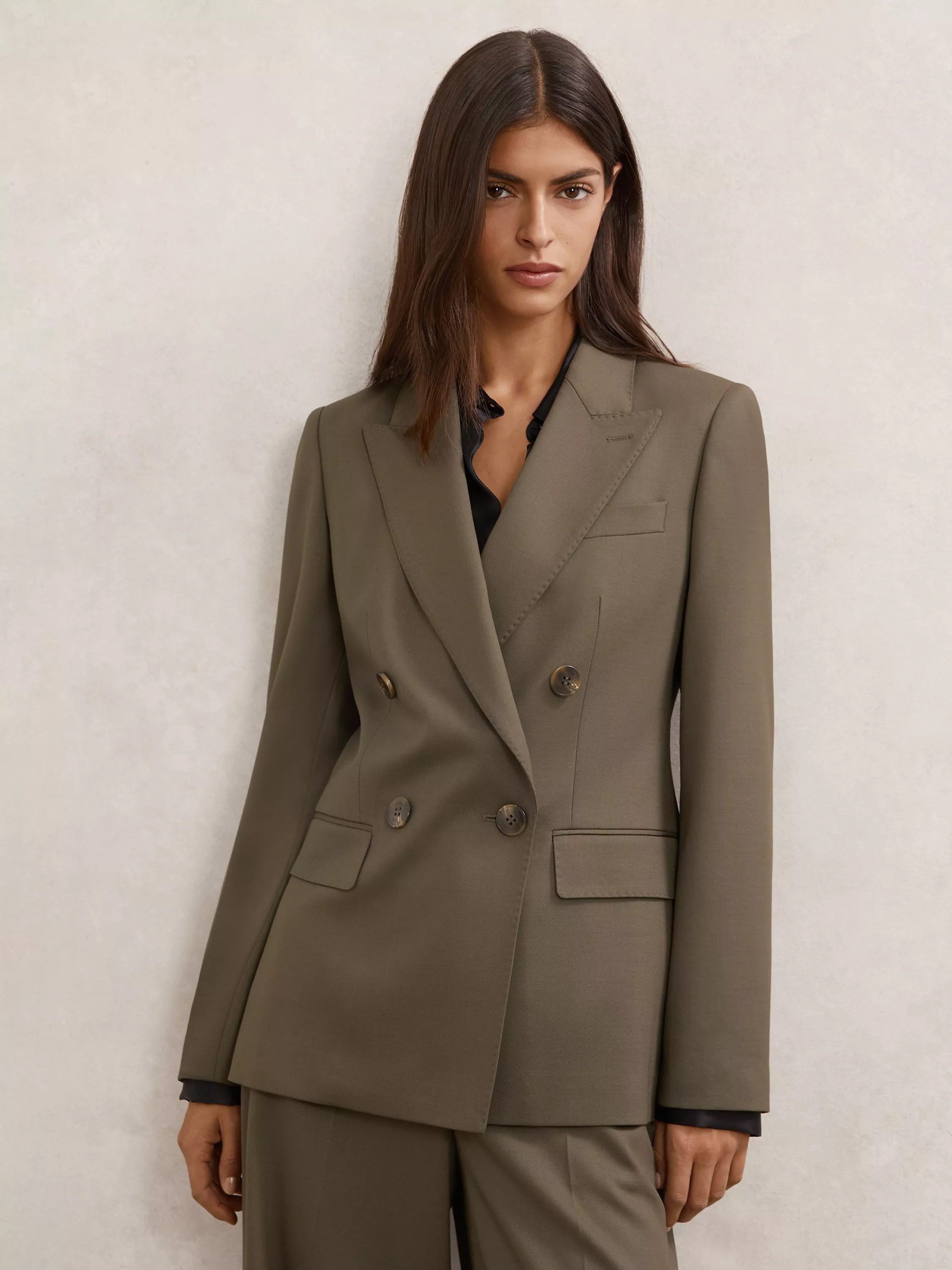 This petite double-breasted blazer sharpens your look in an instant. The wool blend fabric keeps you comfortable all day, while the long sleeves and button fastening lets you adapt your look with ease.