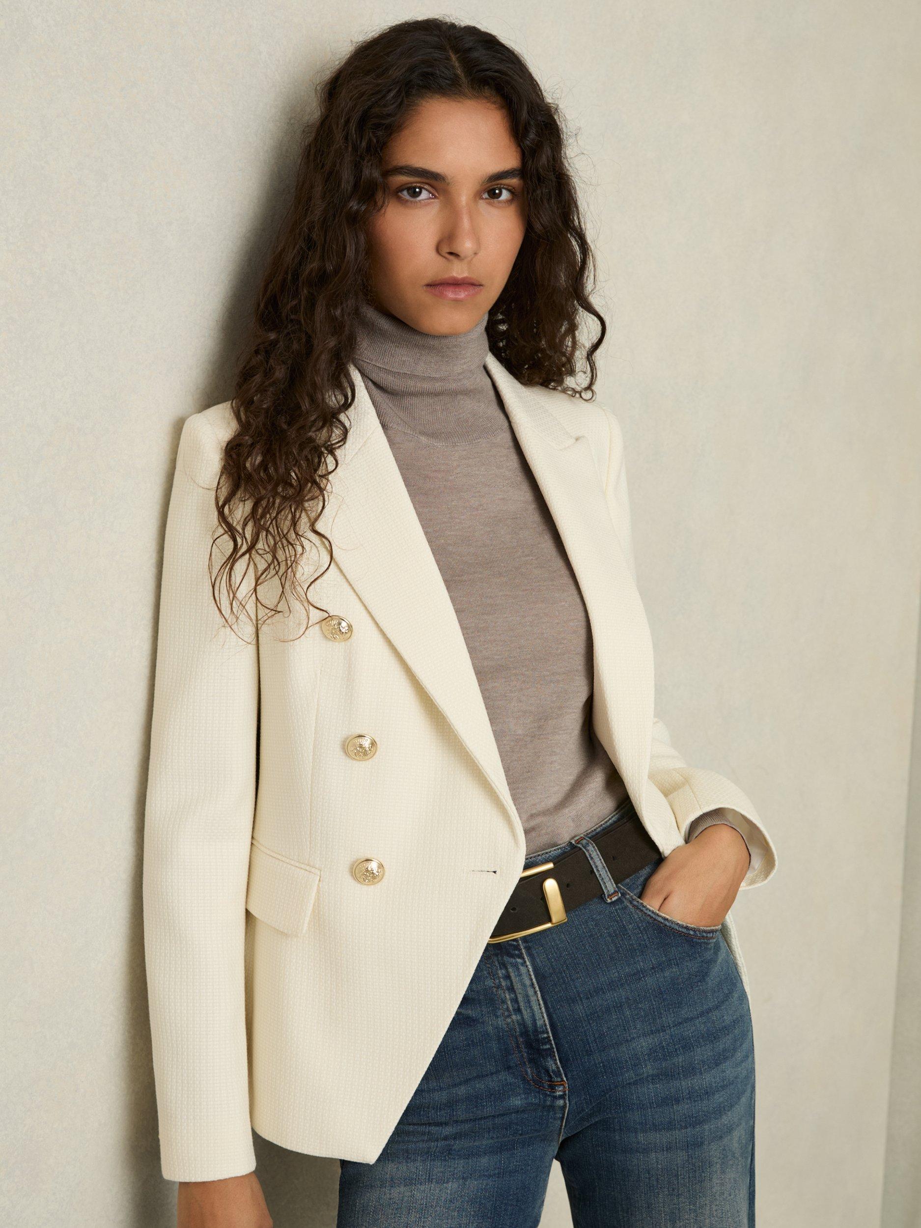Carefully sketched to a sharp silhouette, this petite blazer from Reiss sits at the hip for versatile coverage. Designed with a double breasted front, it is made from a luxury wool blend for warmth and quality.