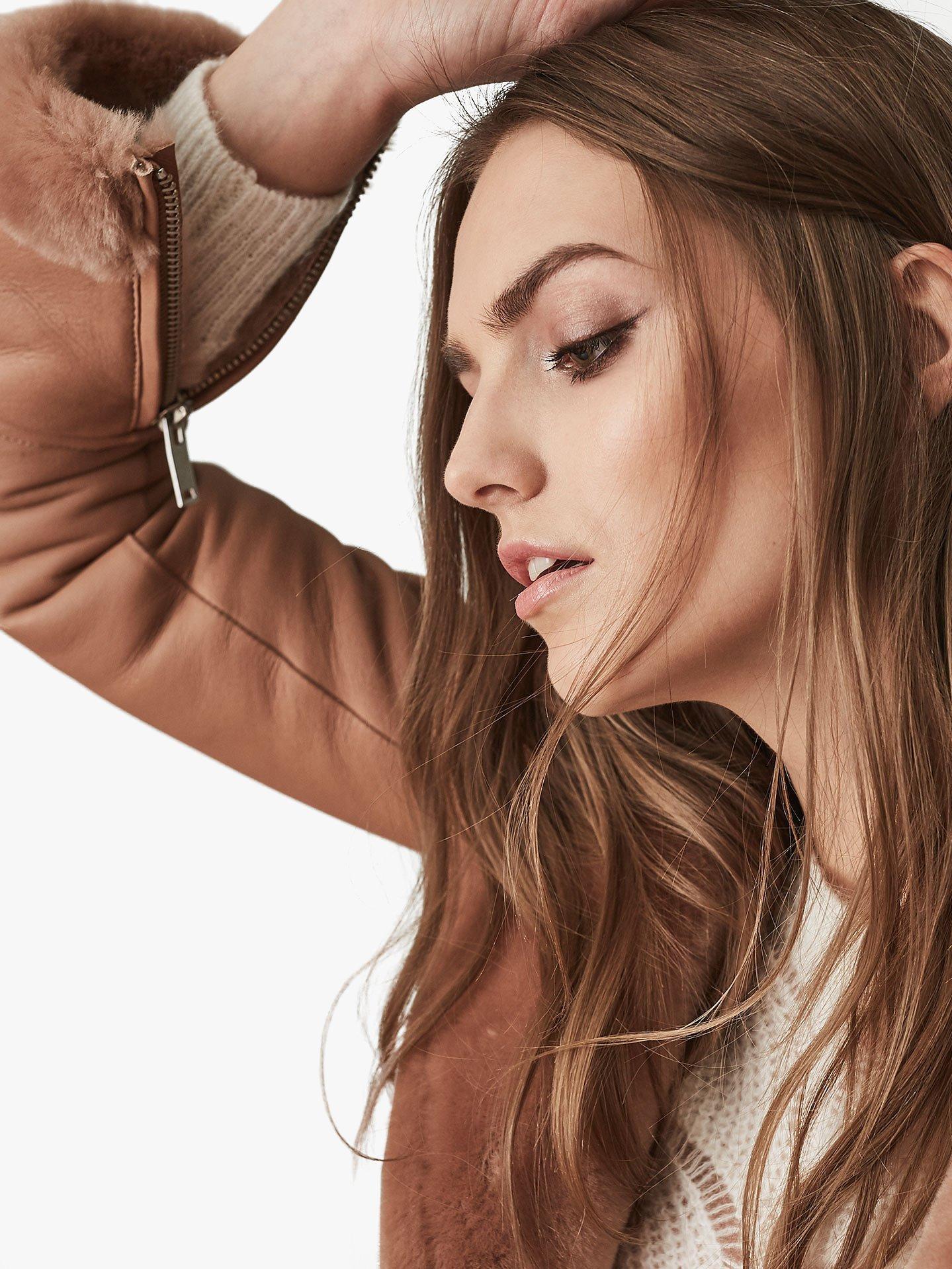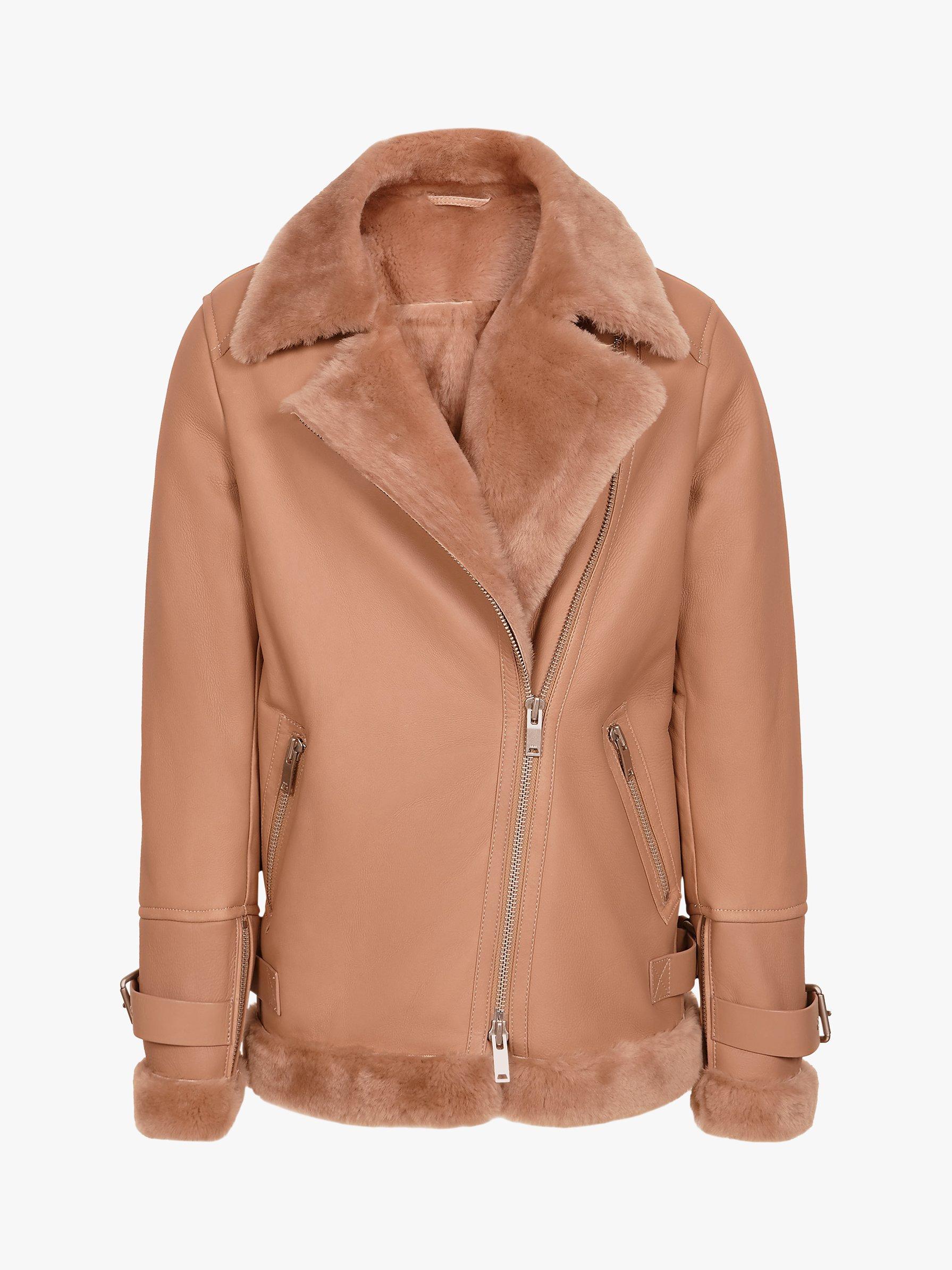 In a cosy shearling fabrication, this jacket features a warm furry lining for ultimate comfort and a soft leather on the outside.