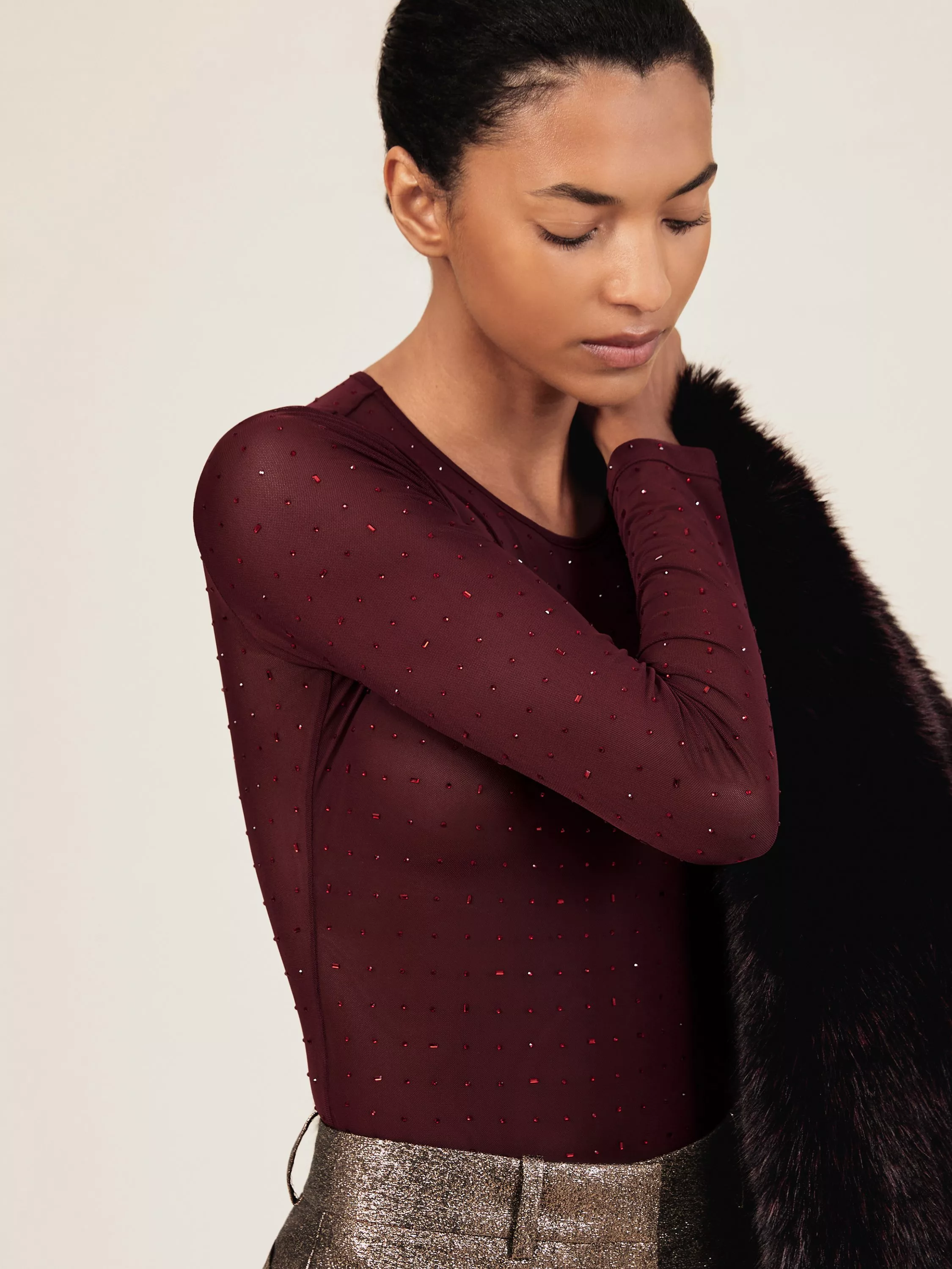 A bodysuit from Reiss. Featuring a round neck and long sleeves, is enlivened with a shimmery embellishment. Your go-to for unforgettable party looks.