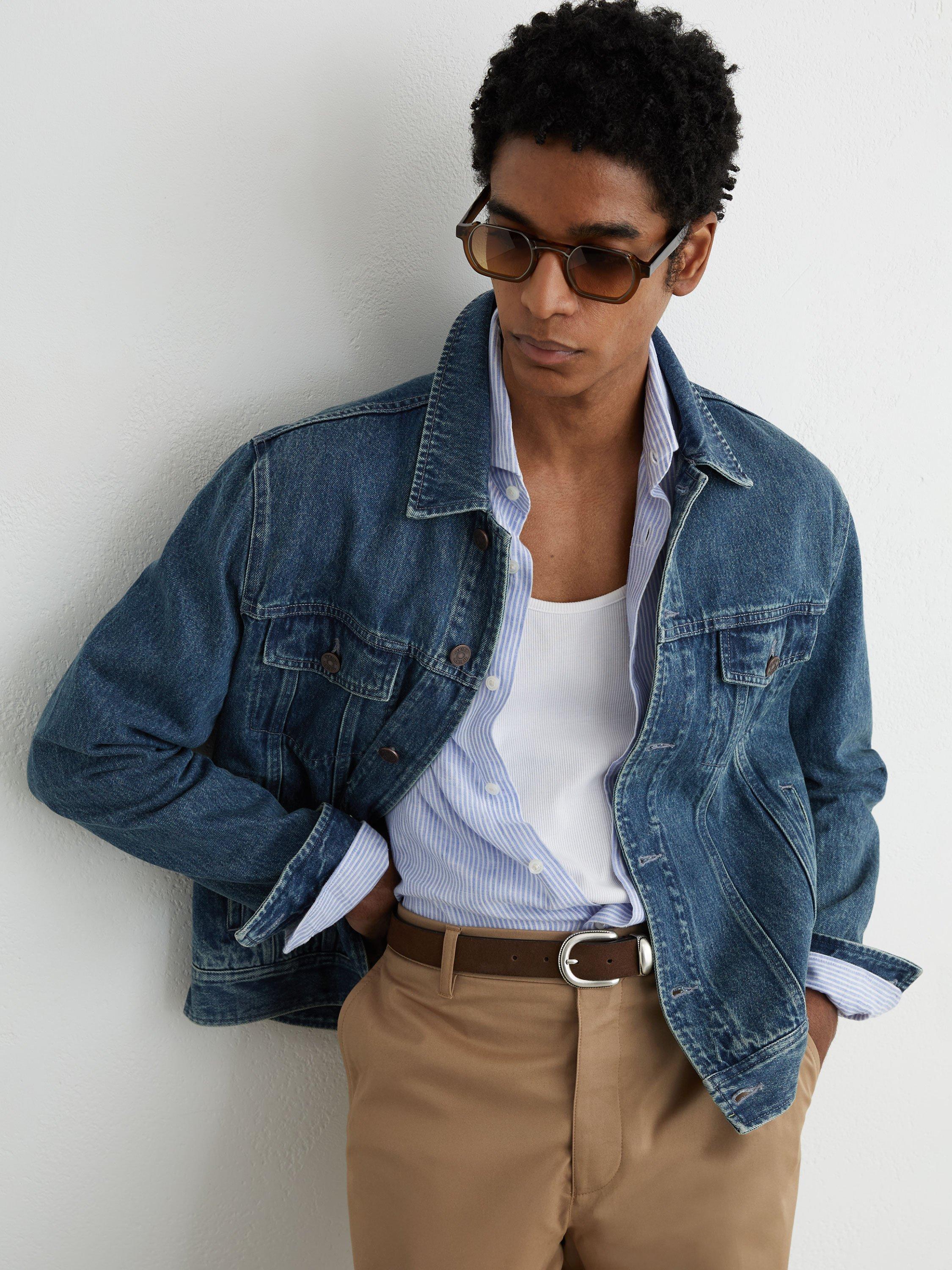 - Menswear Model is 6ft 2” and is wearing a size 38/M/32