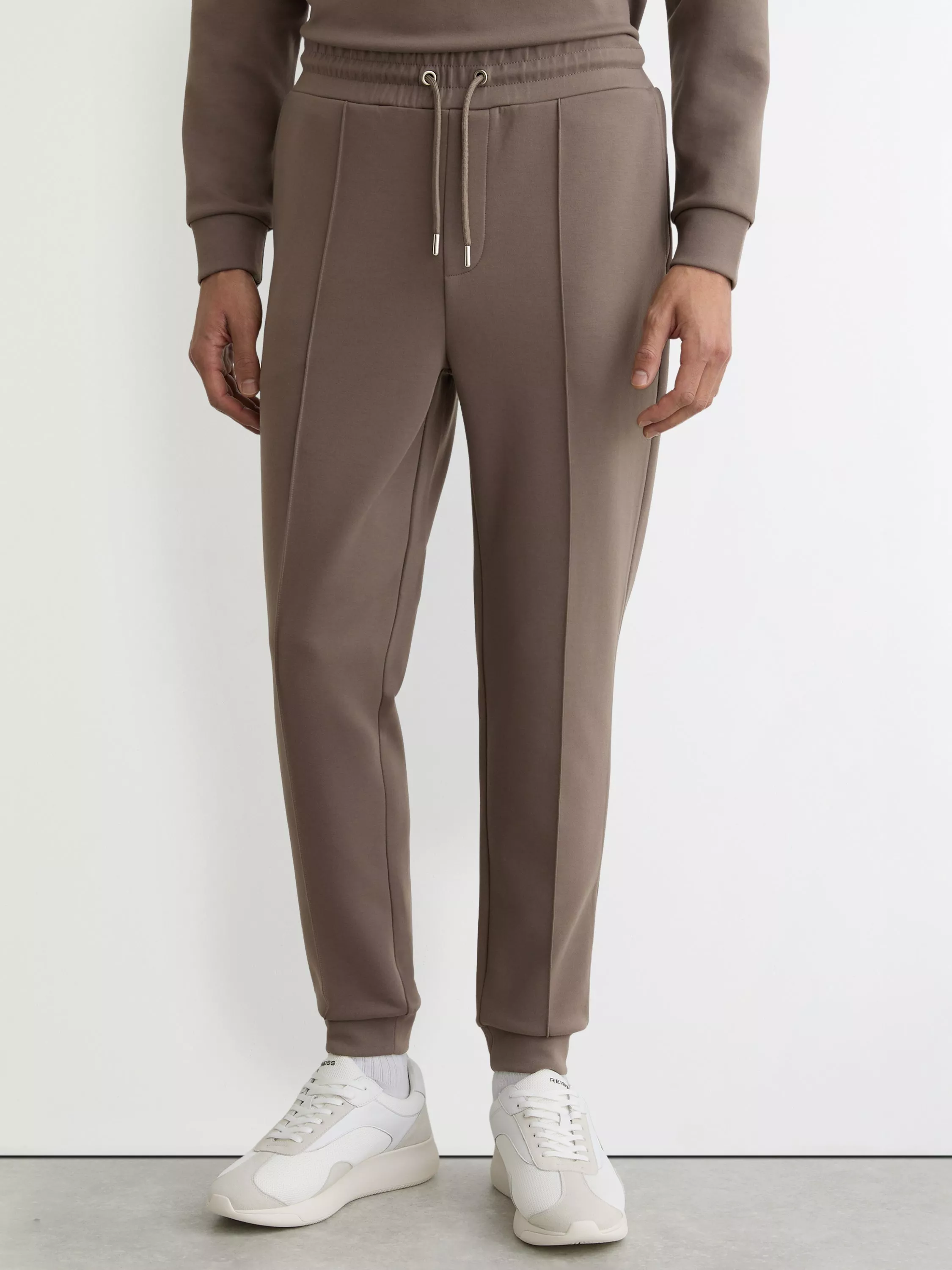 These Premier joggers are crafted from premium mid-weight interlock jersey, prized for its smooth, double-knit structure that offers a clean drape and refined comfort. Finished with front pintucks, side slip pockets, fitted cuffs, an elasticated drawstring waist and fitted cuffs.