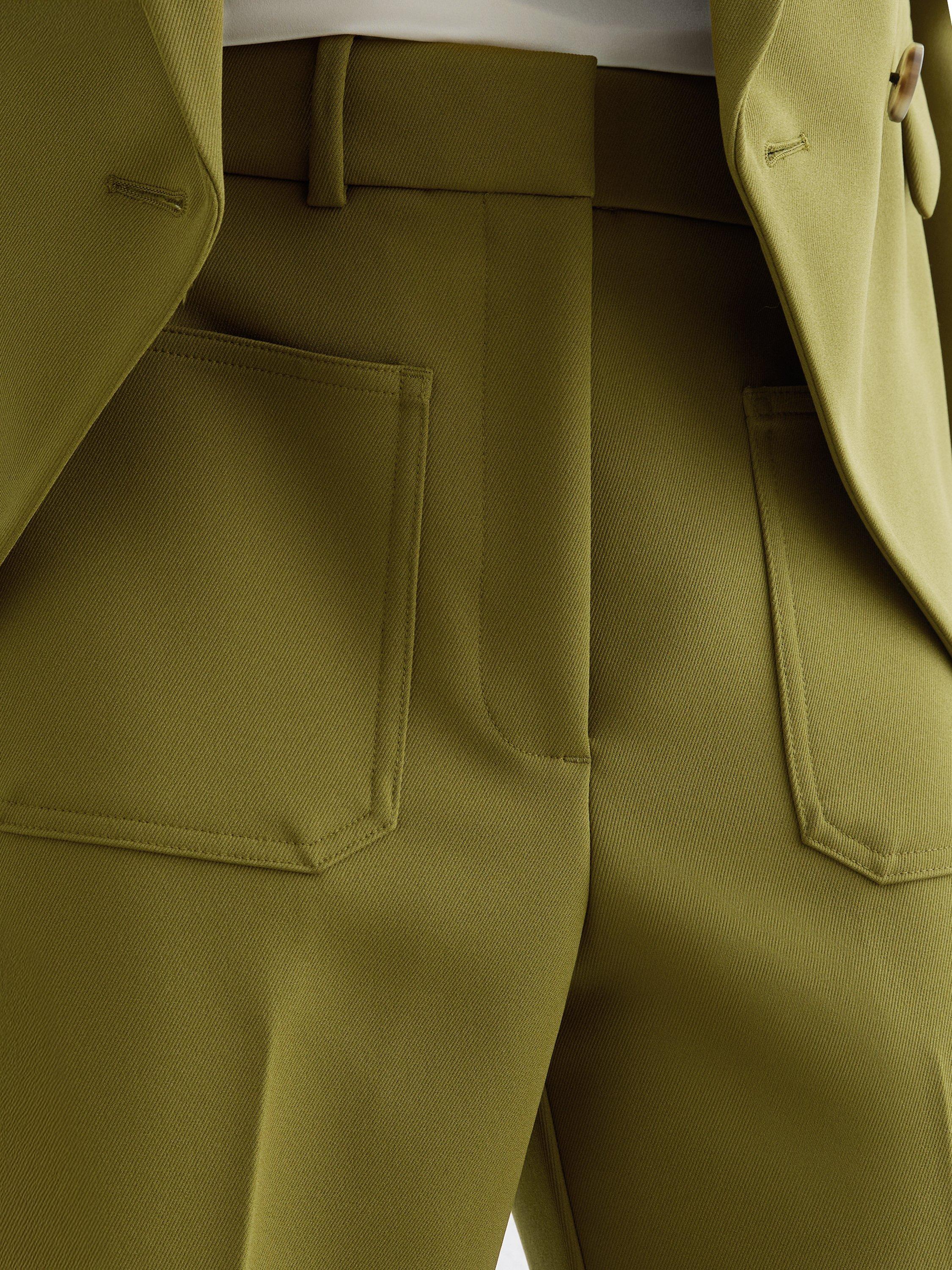 Flared leg trousers from Reiss. They are designed to sit mid rise with a zip fastening and hems that fall to a regular length.