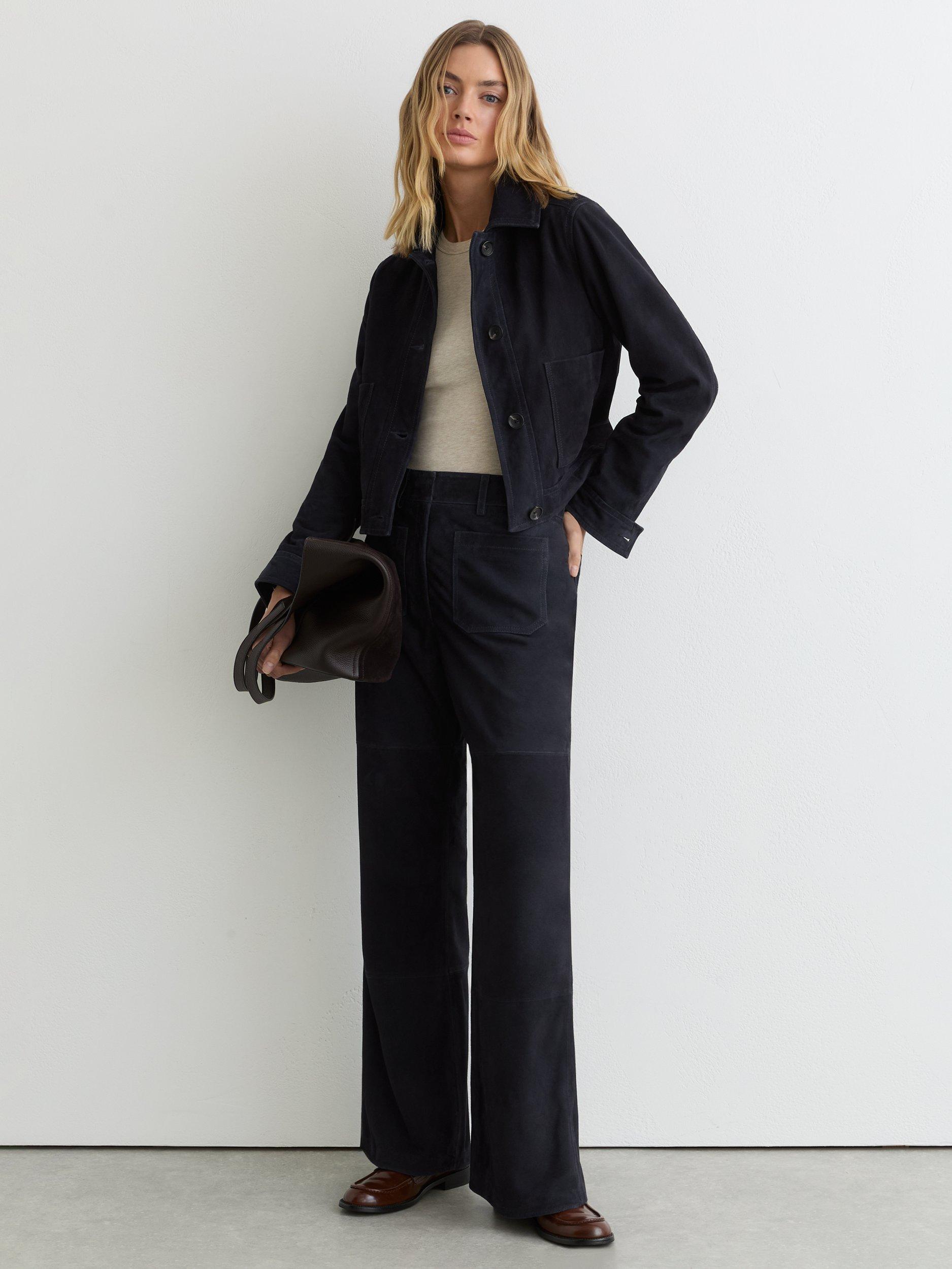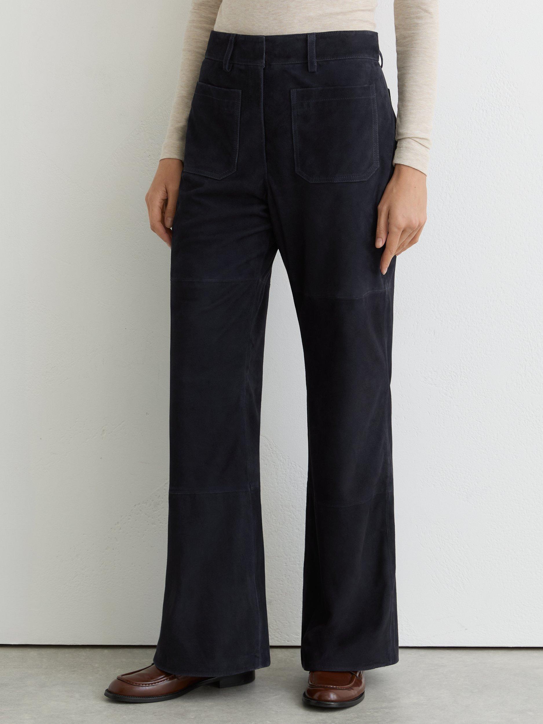 A pair of tailored flared trousers by Reiss. The mid-rise cut flatters your shape while soft suede creates a standout look. A zip fastening keeps things easy, so you stay comfortable and confident wherever you go.