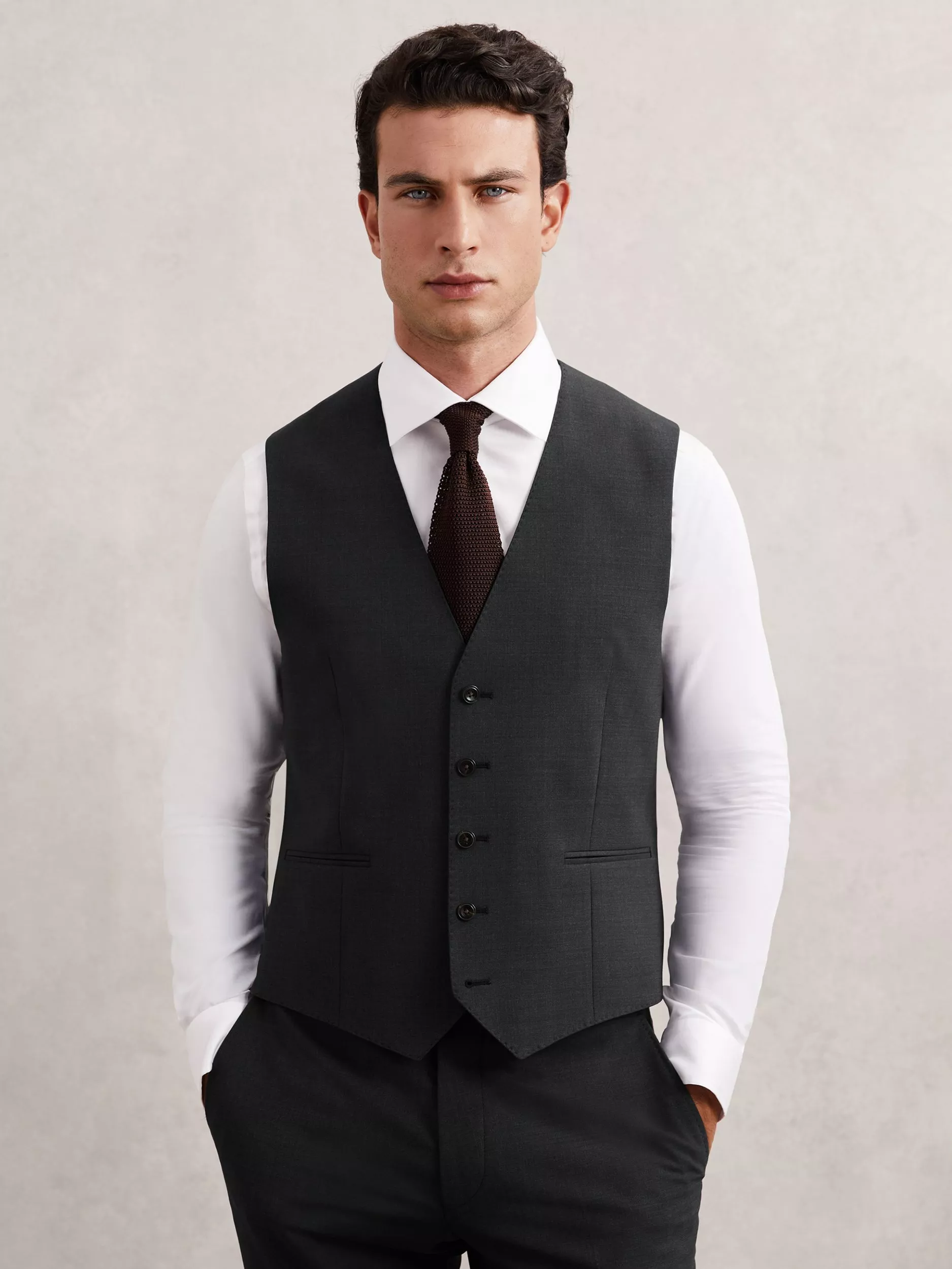Add instant finesse to your tailored look with this plain, wool-blend waistcoat.