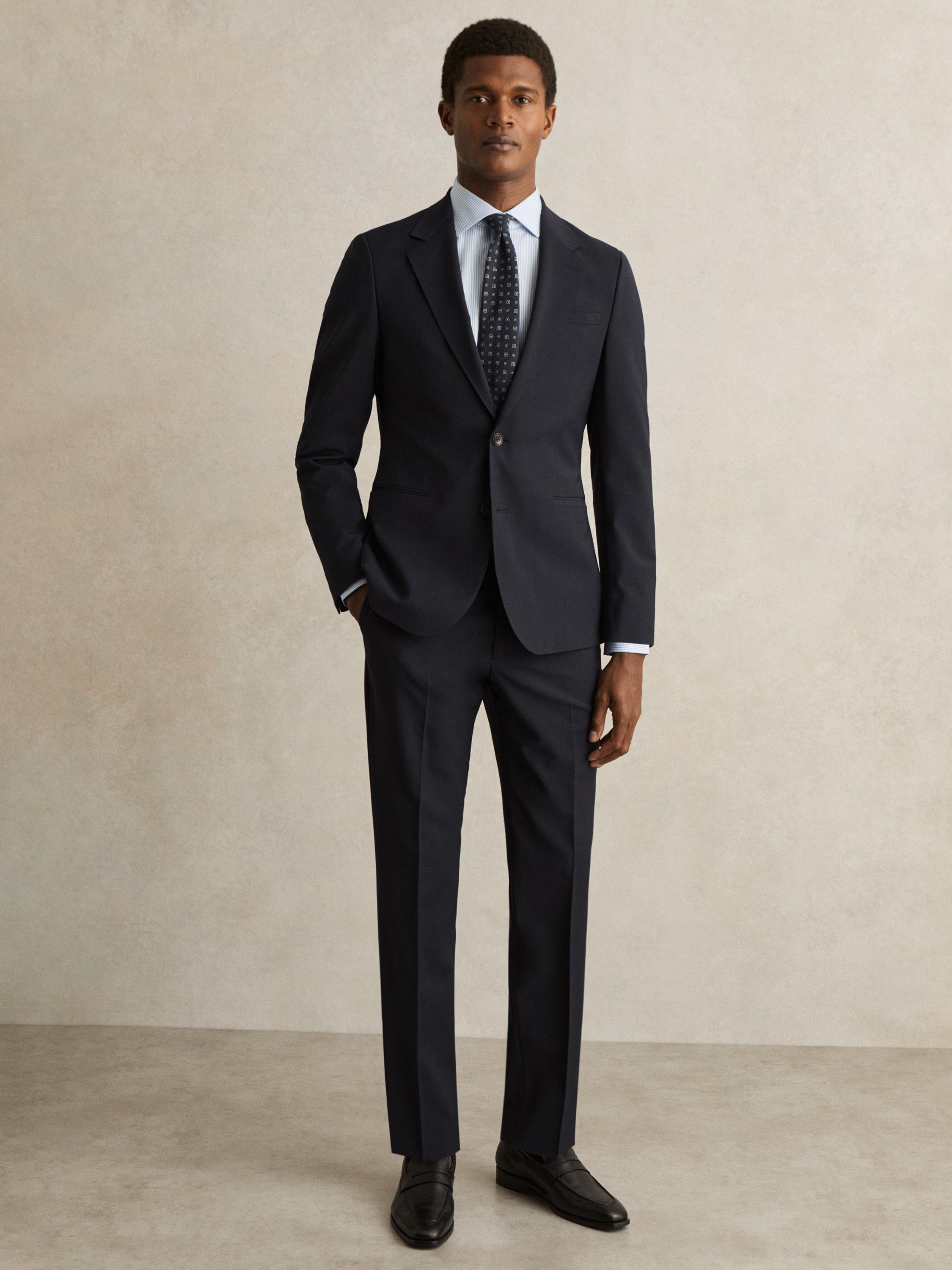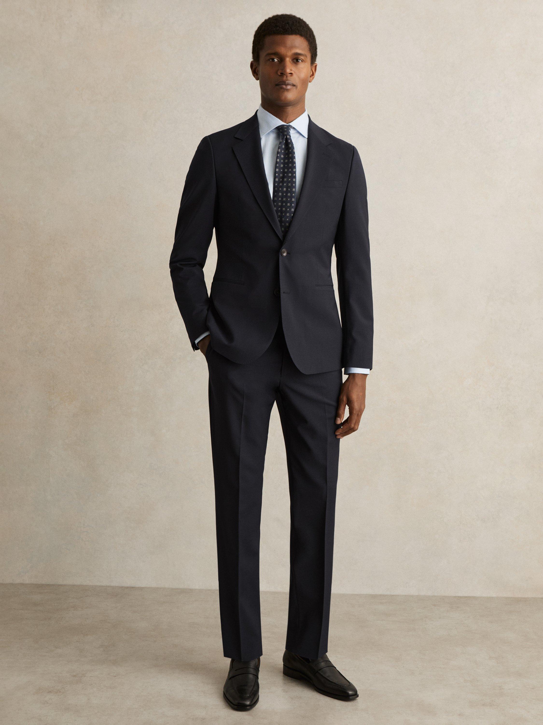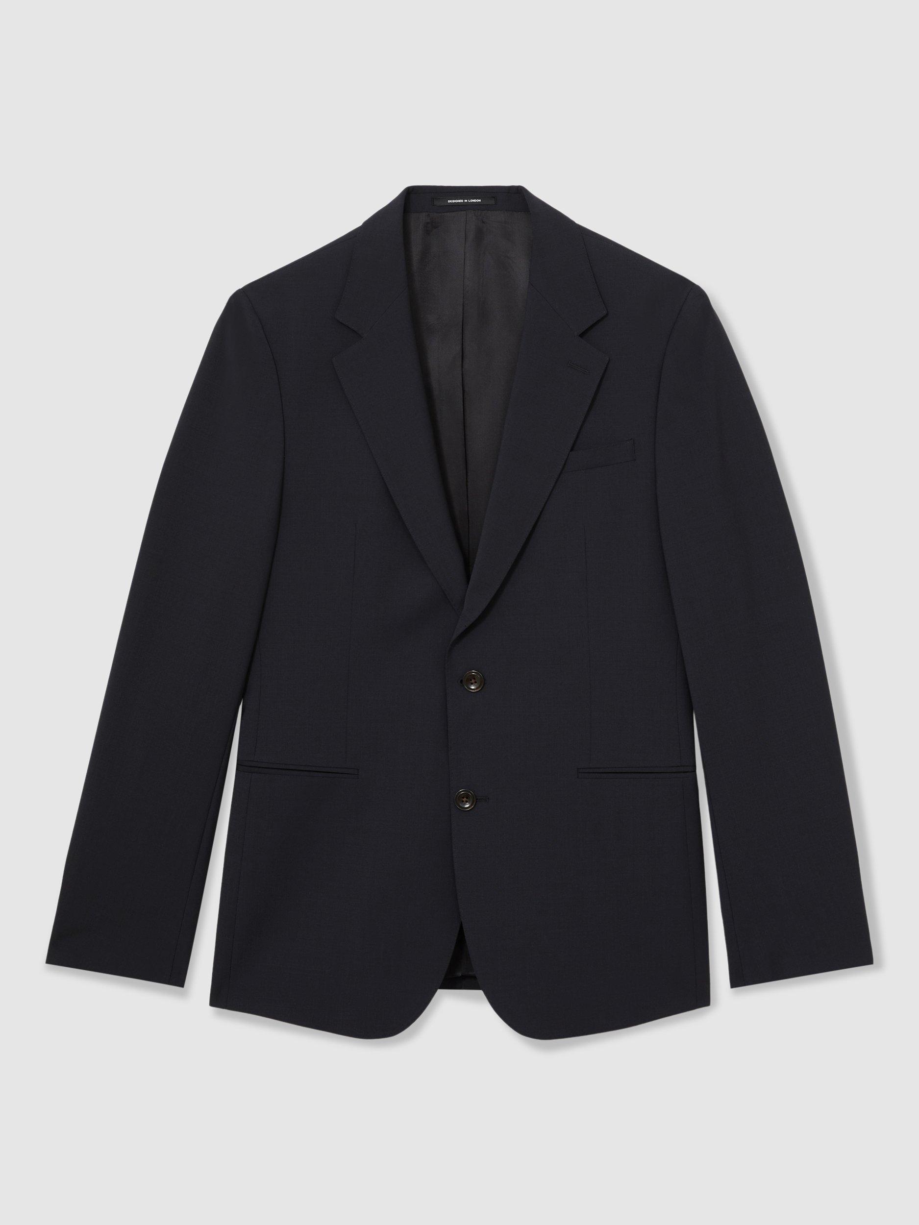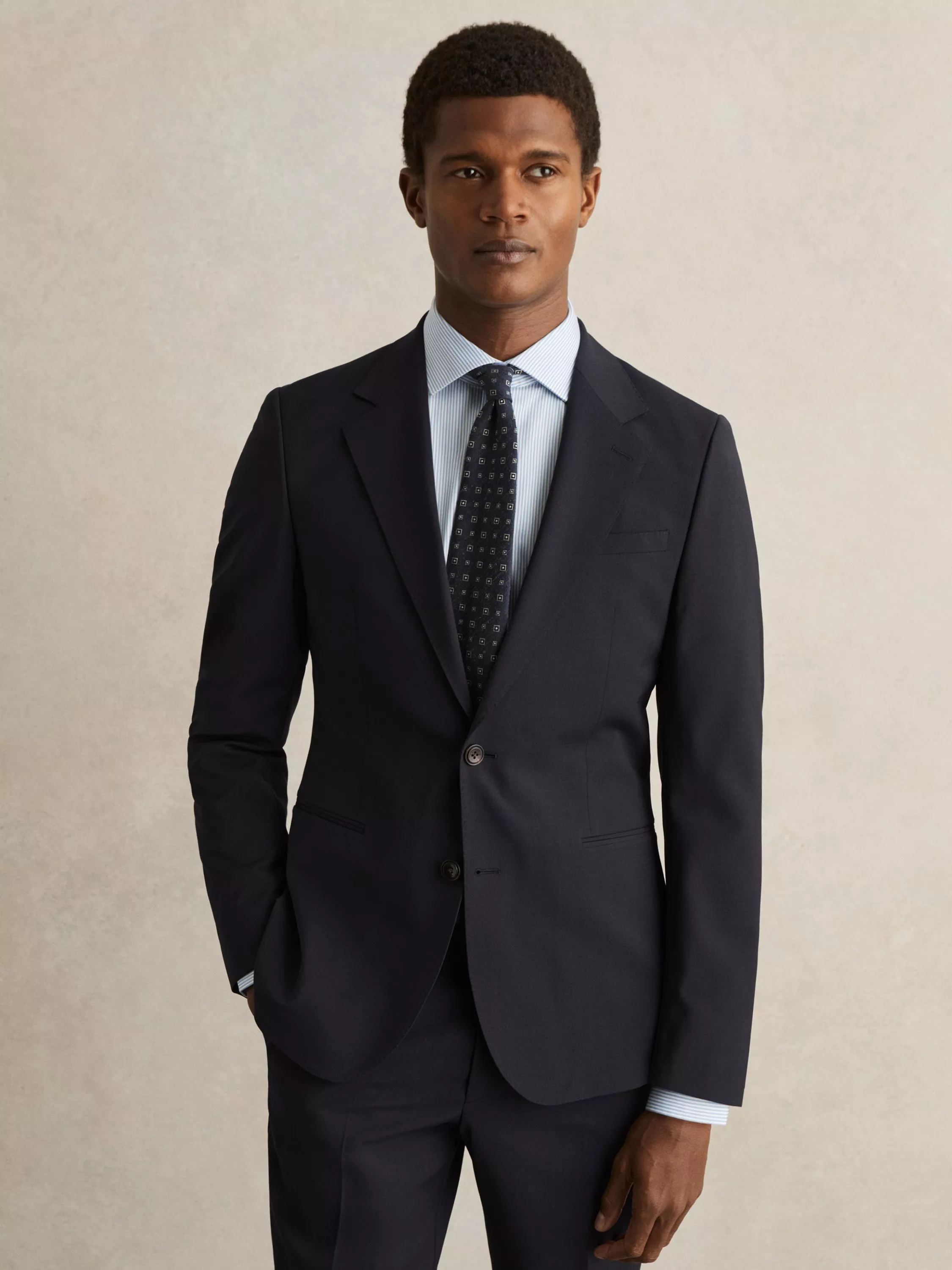 The Promise blazer from Reiss is crafted from a refined wool-blend in a plain weave, offering a sleek, slim fit. The single-breasted design, complemented by notch lapels and delicate pick stitching, creates a sharp, tailored look, while the double vent enhances movement.